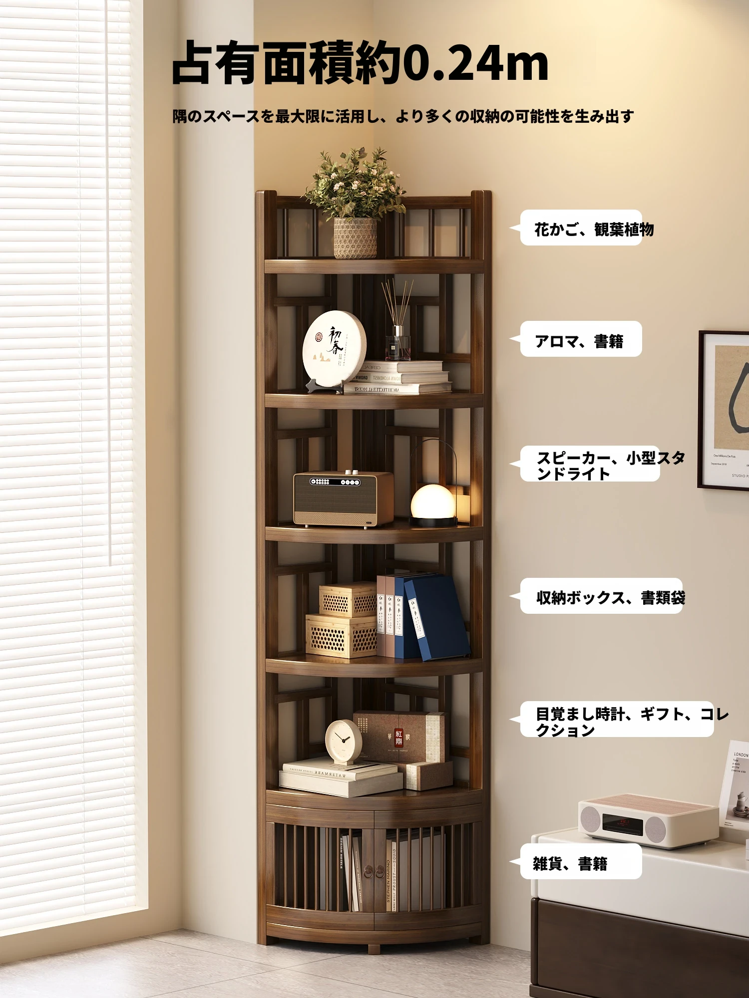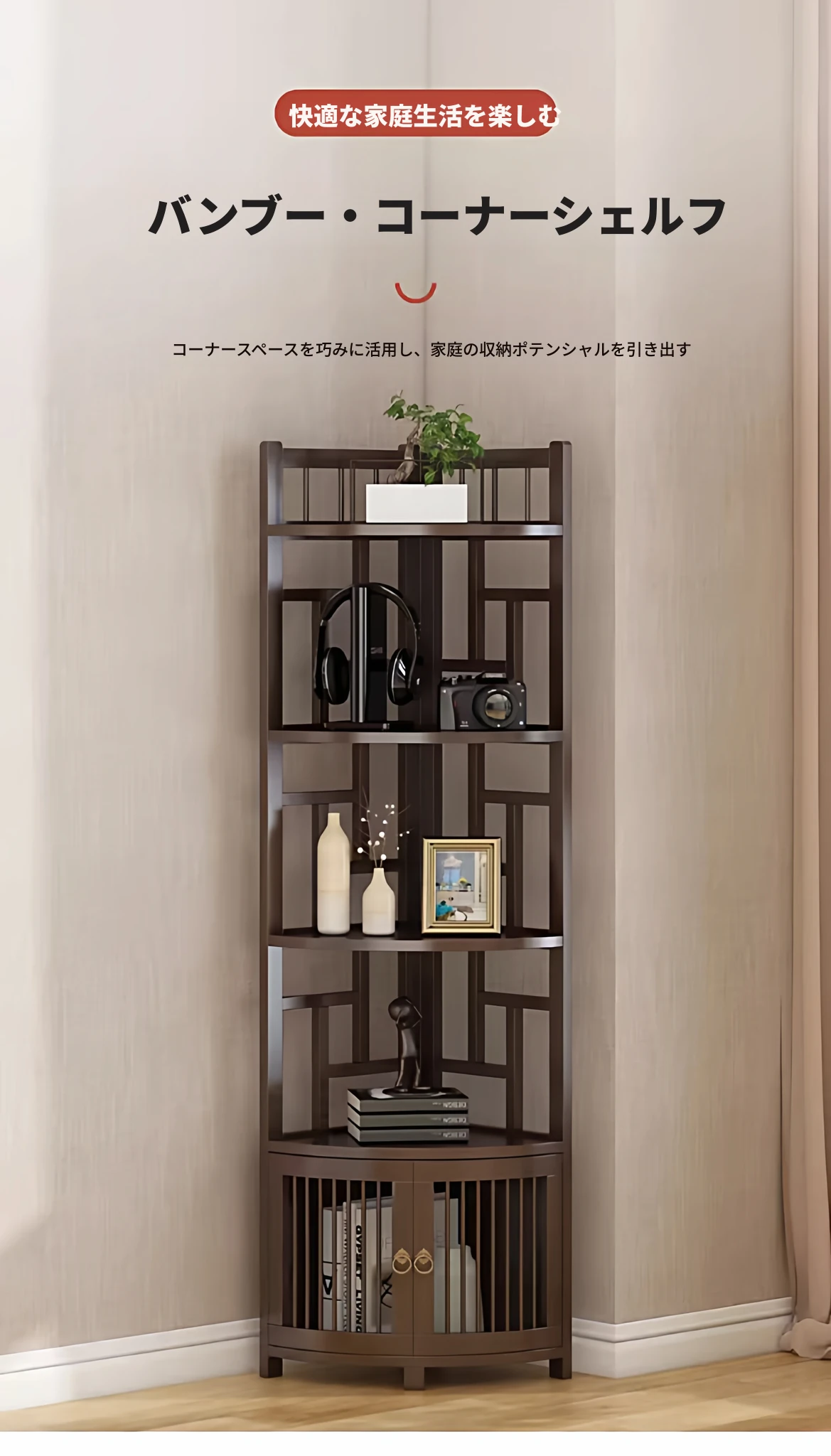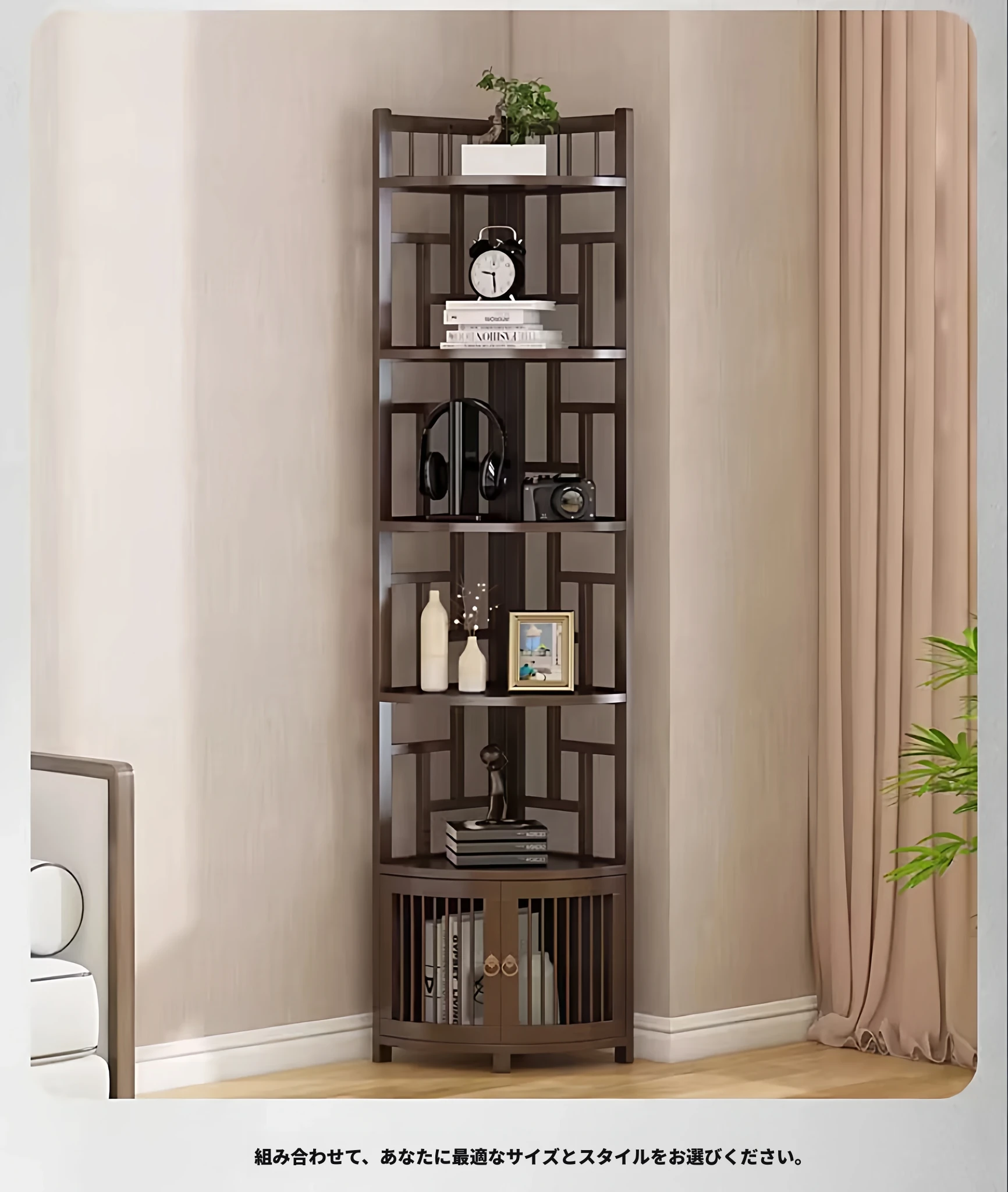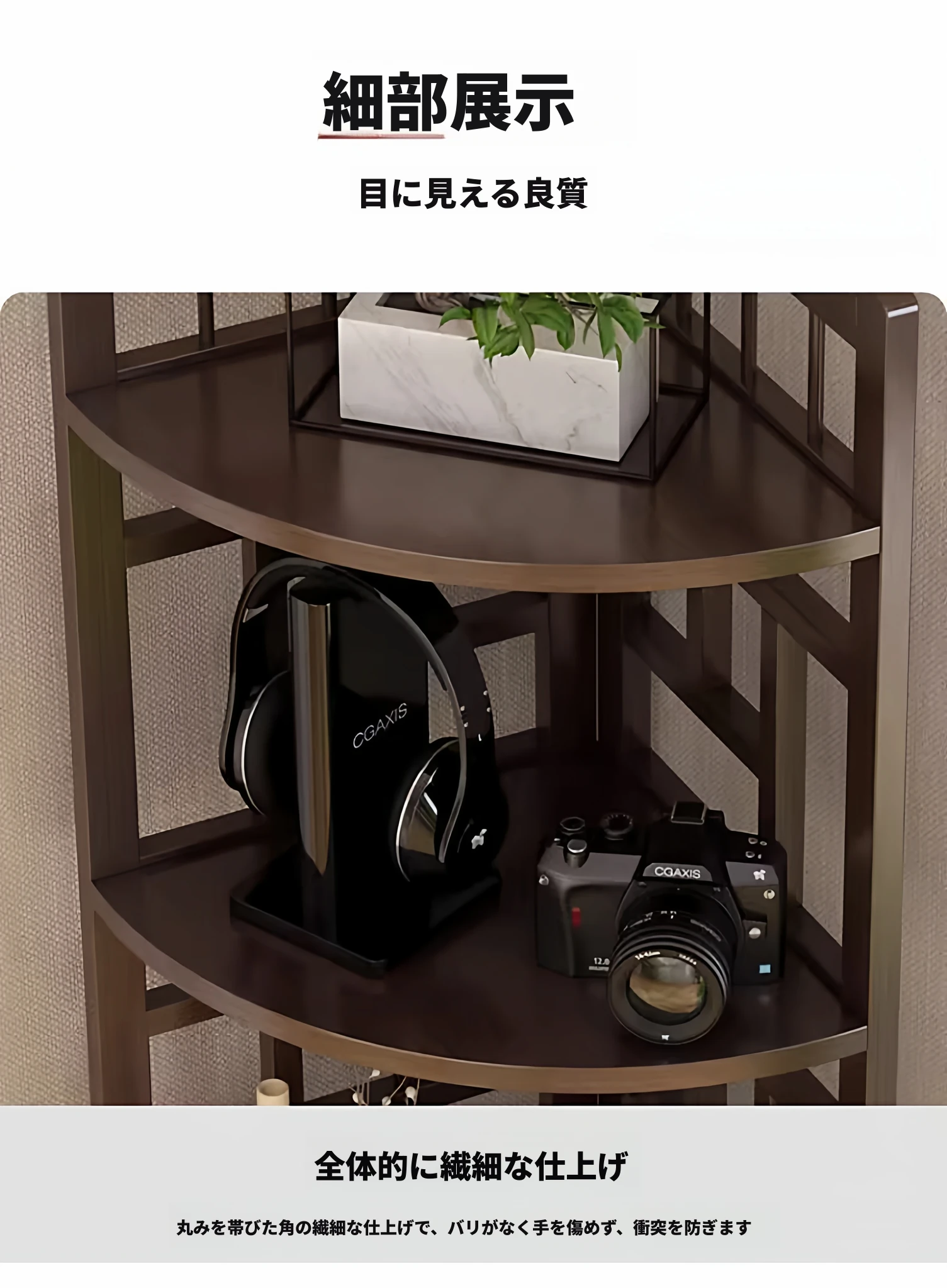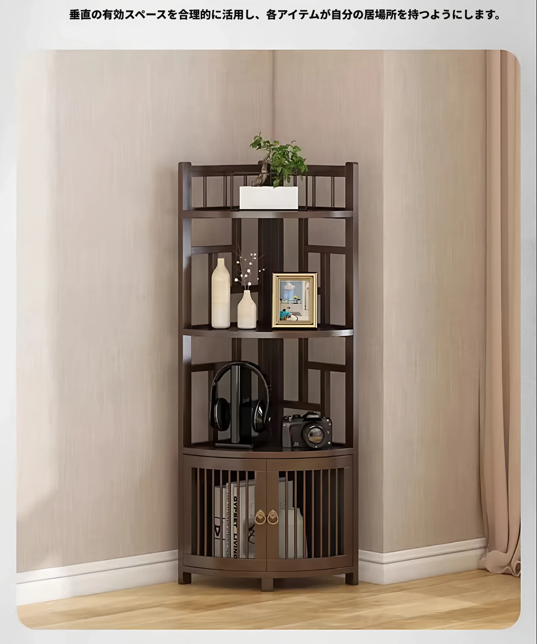 コーナー収納ラック - おしゃれな三角形デザインで、リビングの隅やソファの横にぴったり!省スペースで収納力抜群の壁掛けコーナーキャビネットです。整理整頓に最適なアイテム!