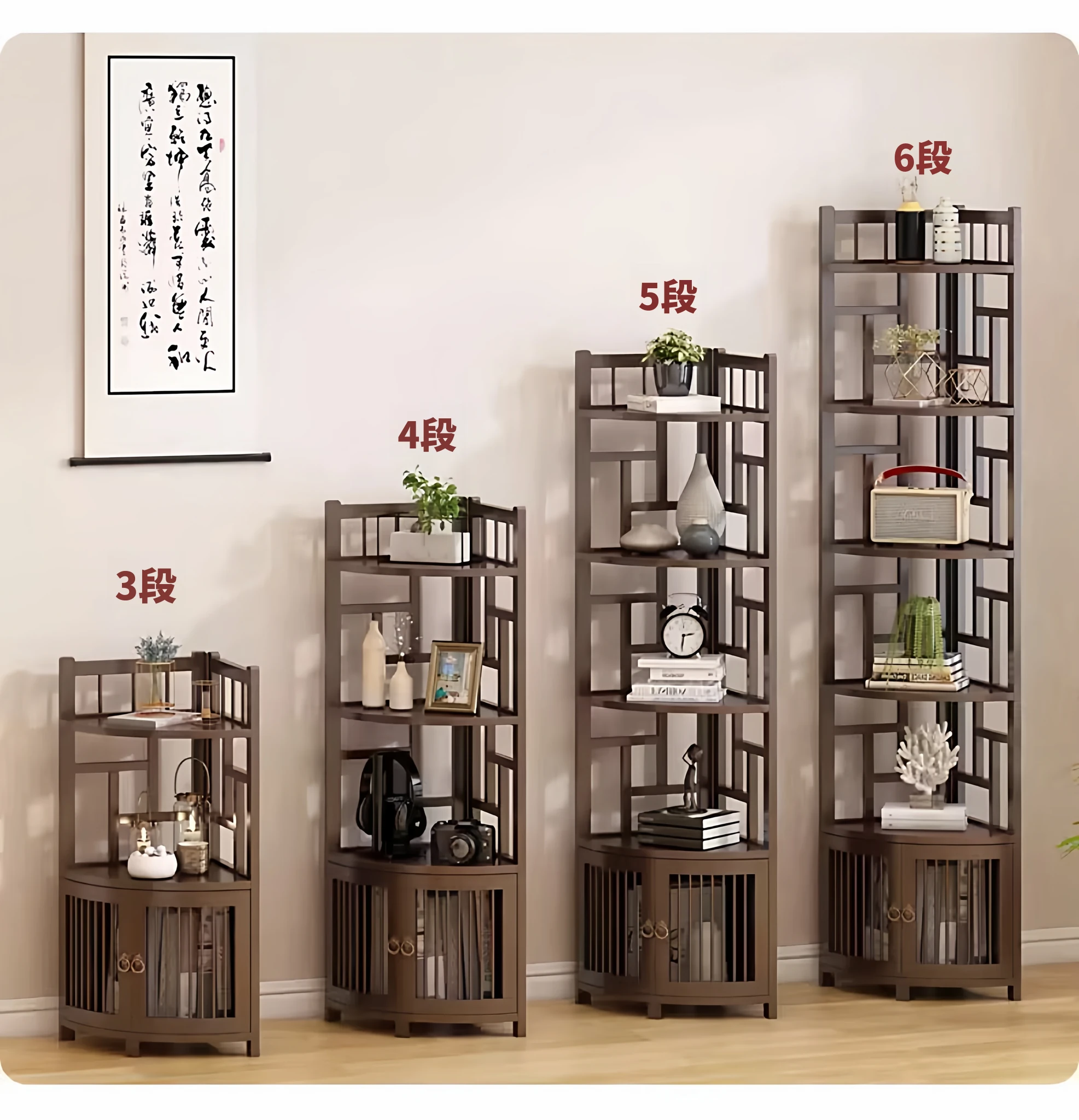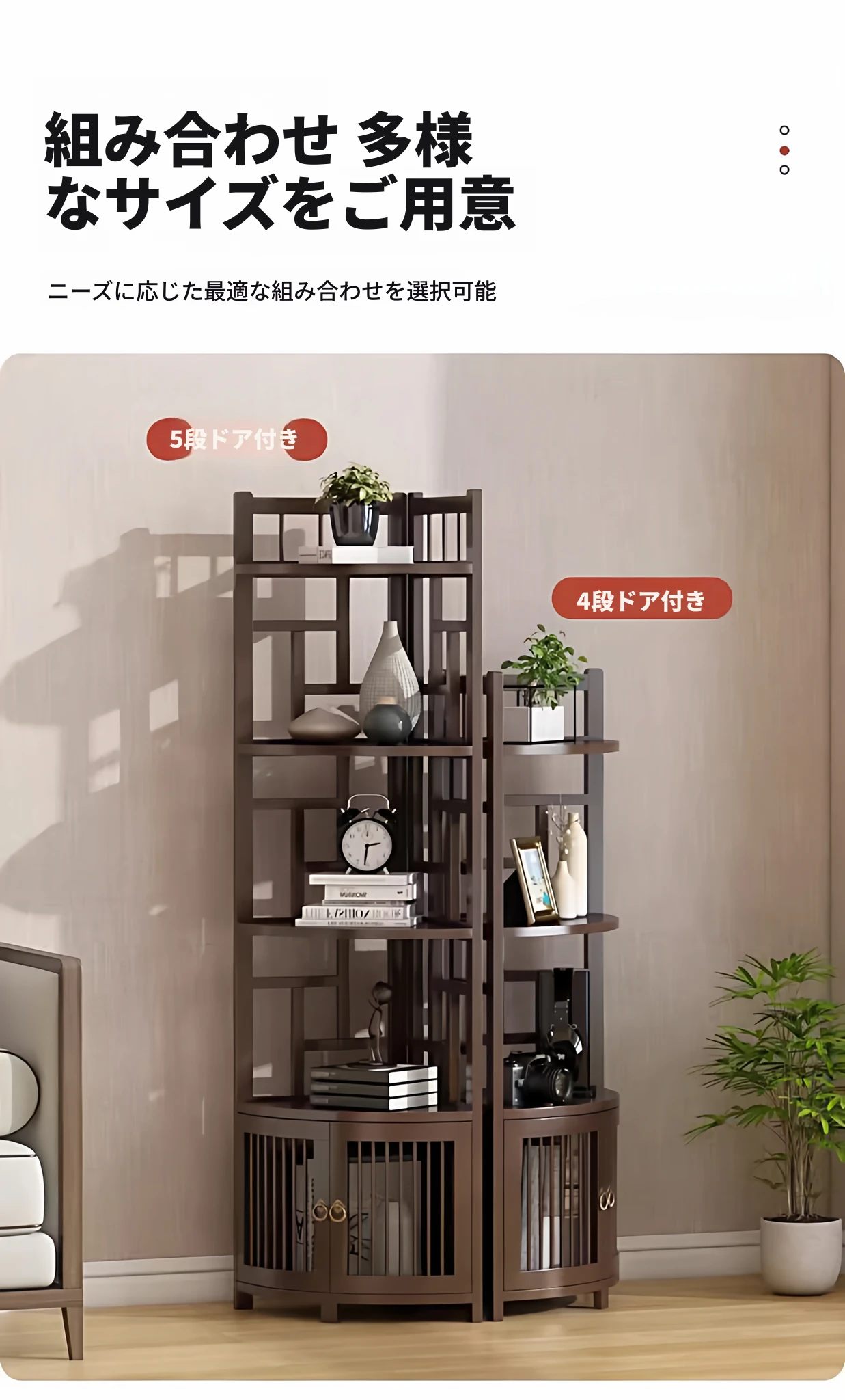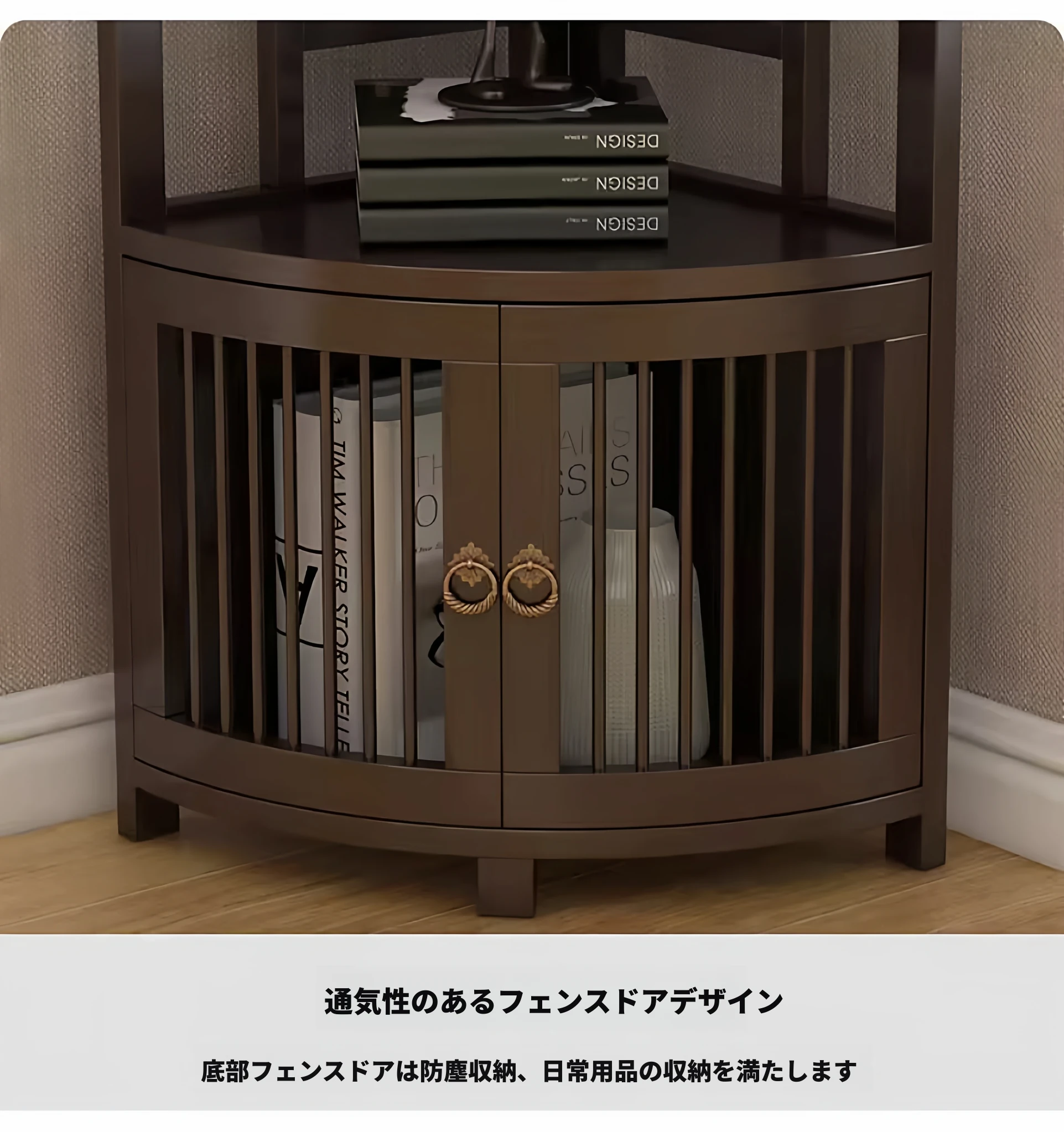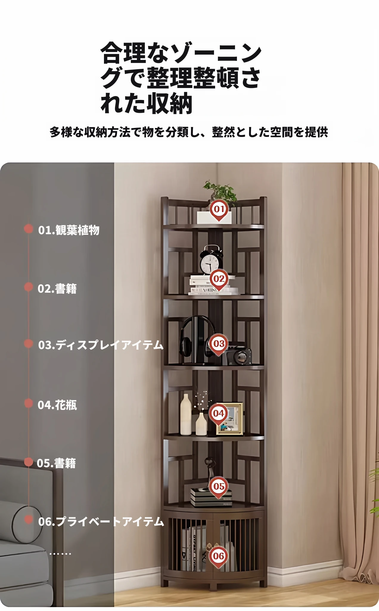 コーナー収納ラック - おしゃれな三角形デザインで、リビングの隅やソファの横にぴったり!省スペースで収納力抜群の壁掛けコーナーキャビネットです。整理整頓に最適なアイテム!