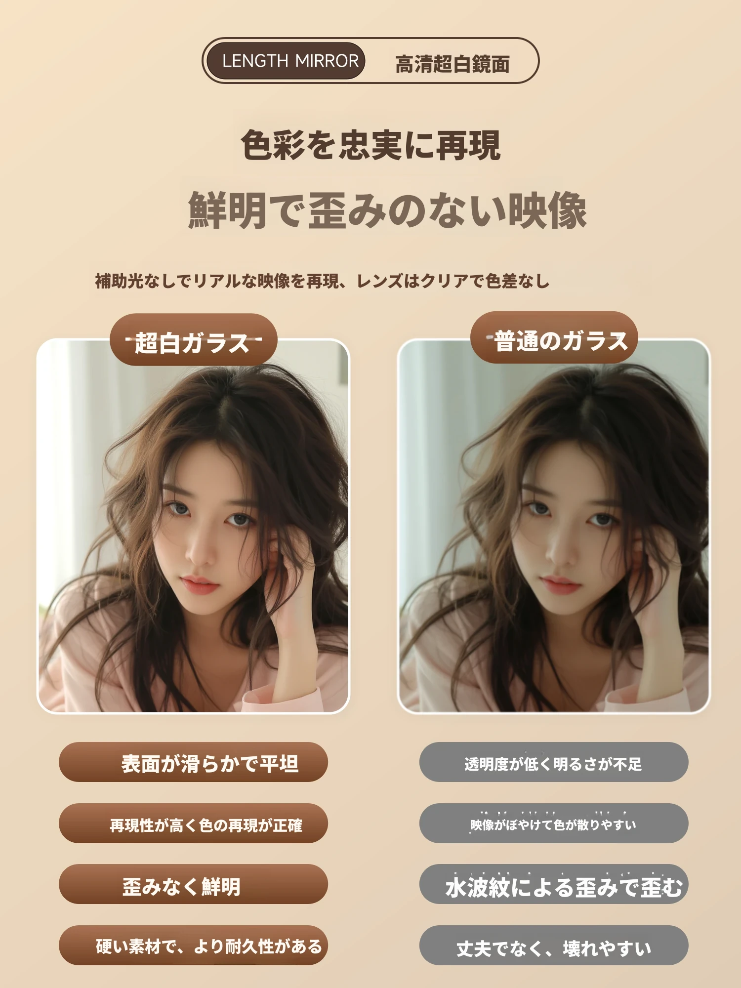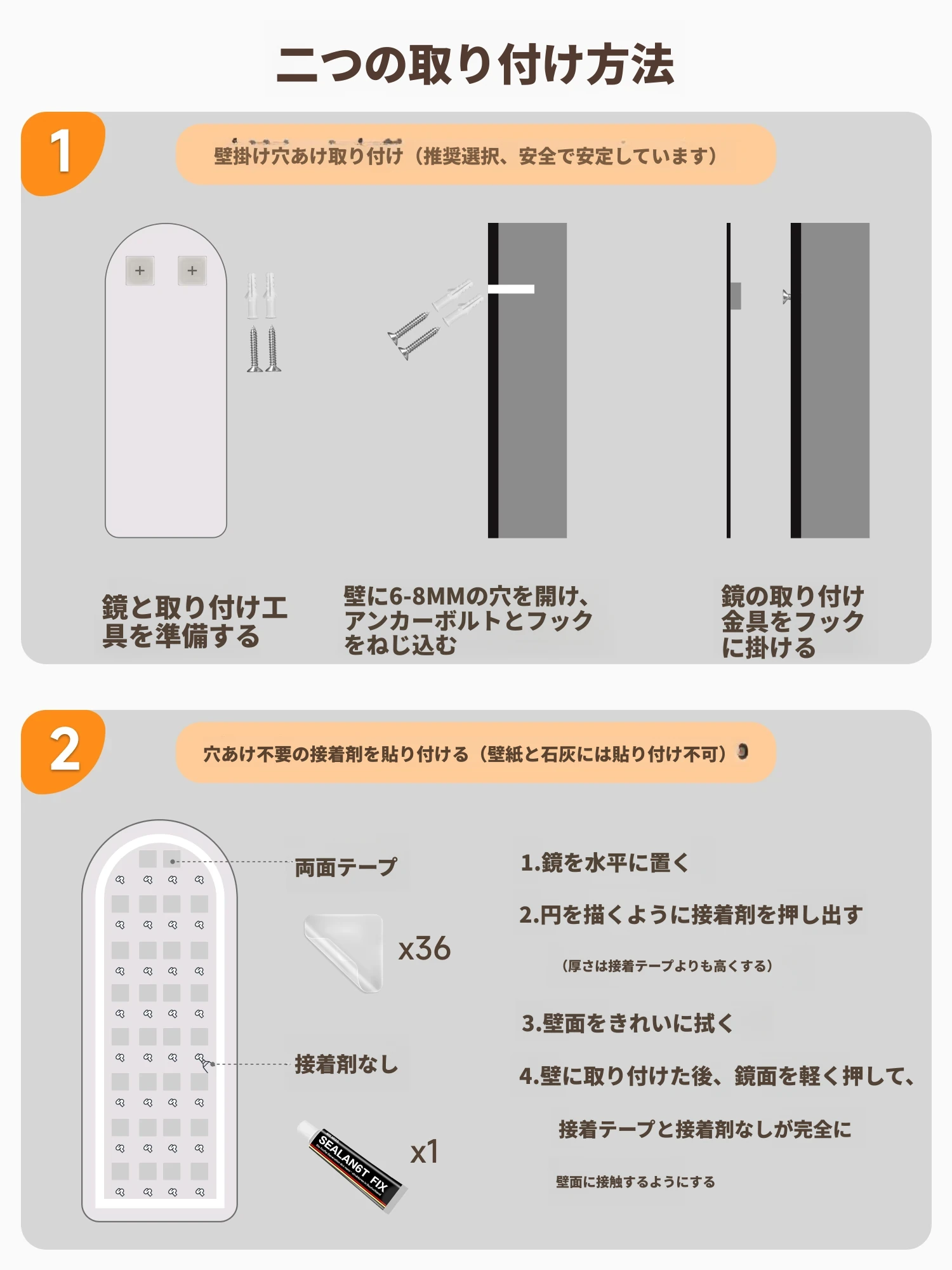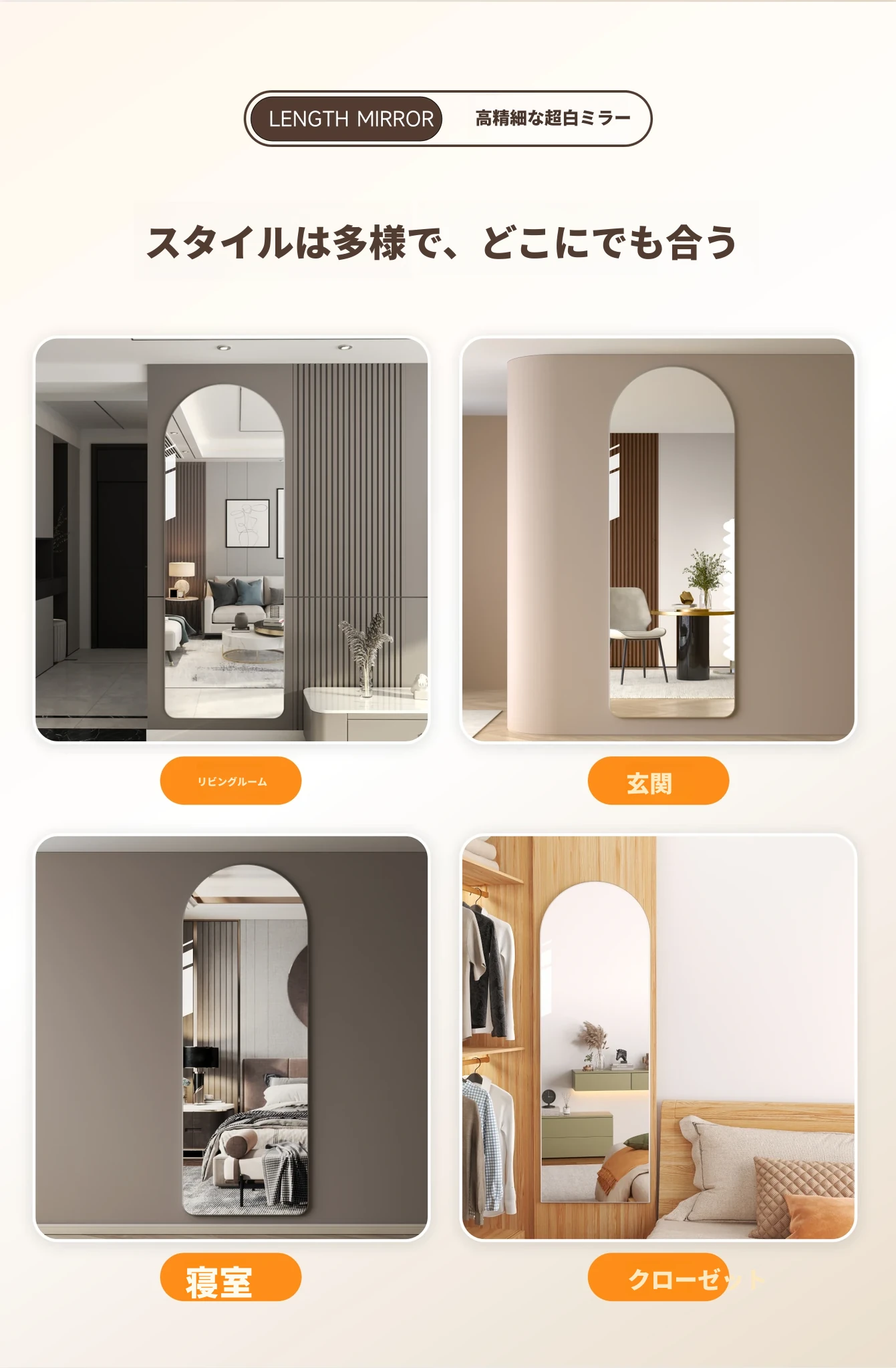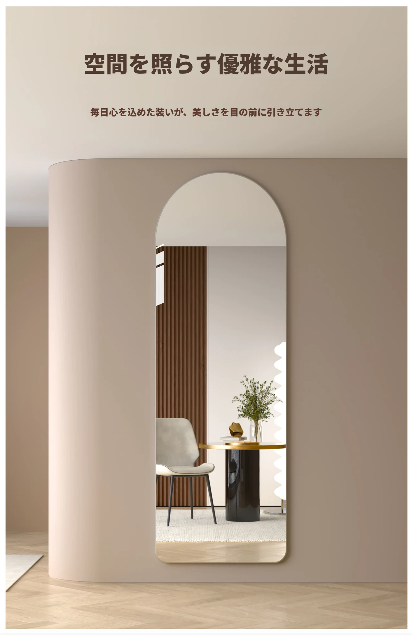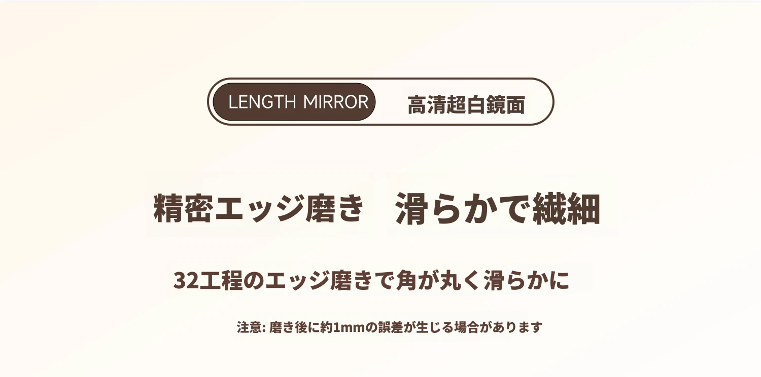 軽やかな贅沢感のあるフレームレス全身鏡!壁に貼り付けできる自粘タイプで、寝室やお部屋にぴったり。高精細な試着ミラーで、毎日のコーディネートを楽しくサポートします!