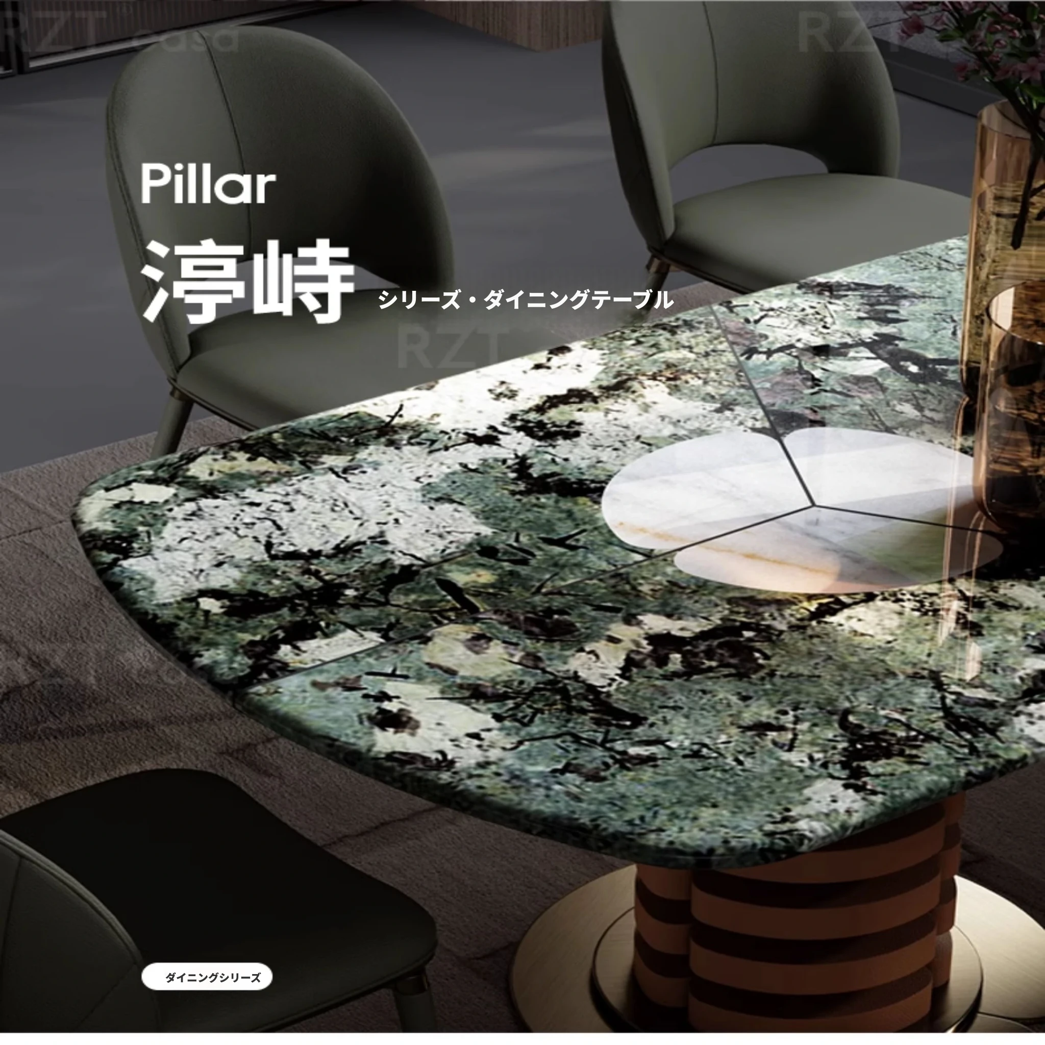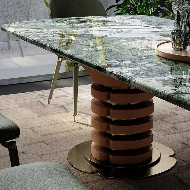 高級感あふれるイタリアンスタイルの天然石ロングダイニングテーブル - ヴィラや広々とした住居に最適なデザイナーズ家具で、洗練された空間を演出します。エレガントな食事シーンを実現する一品です。