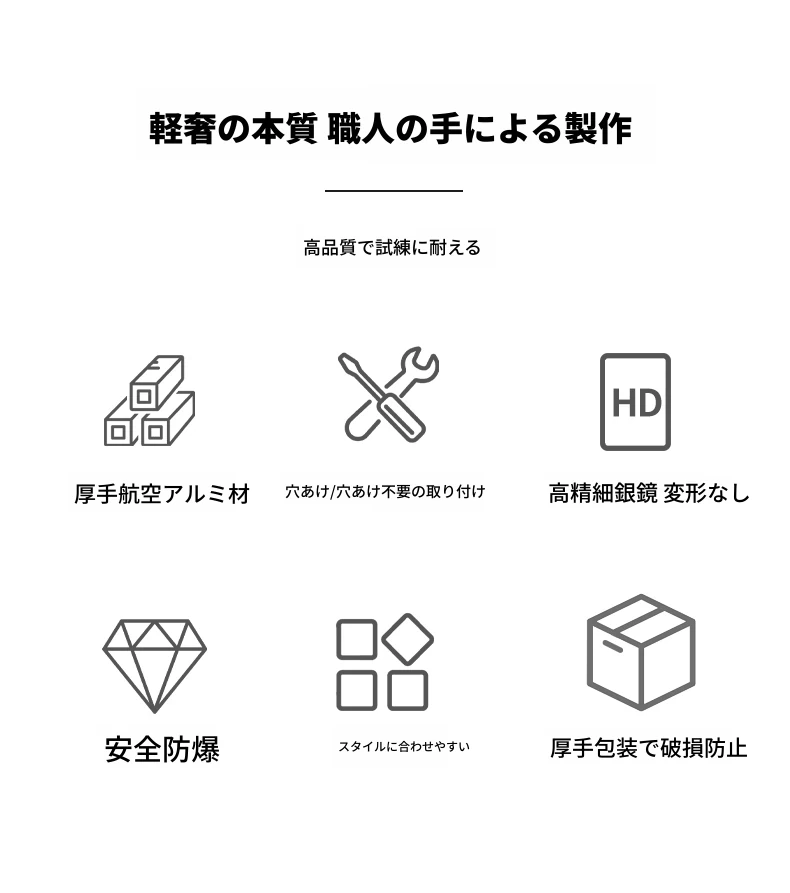 【穴あけ不要の壁掛け】50*160典雅ブラック【高精細ミラー+破損補償】
