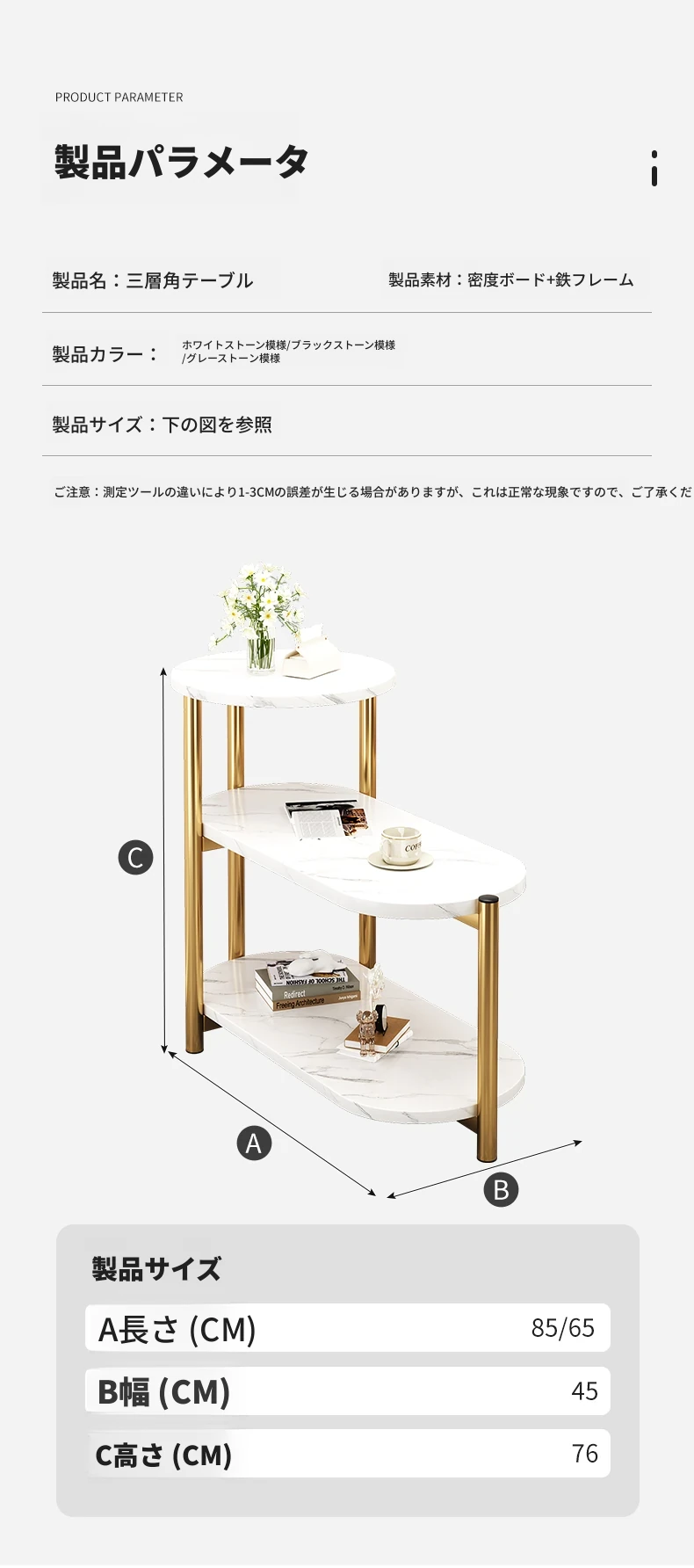 【輸出用】ブラックストーン模様85*45*76【金色の鉄製フレーム】