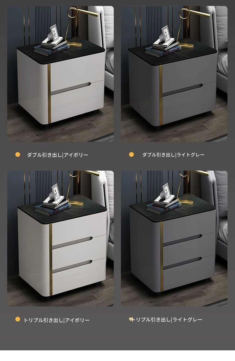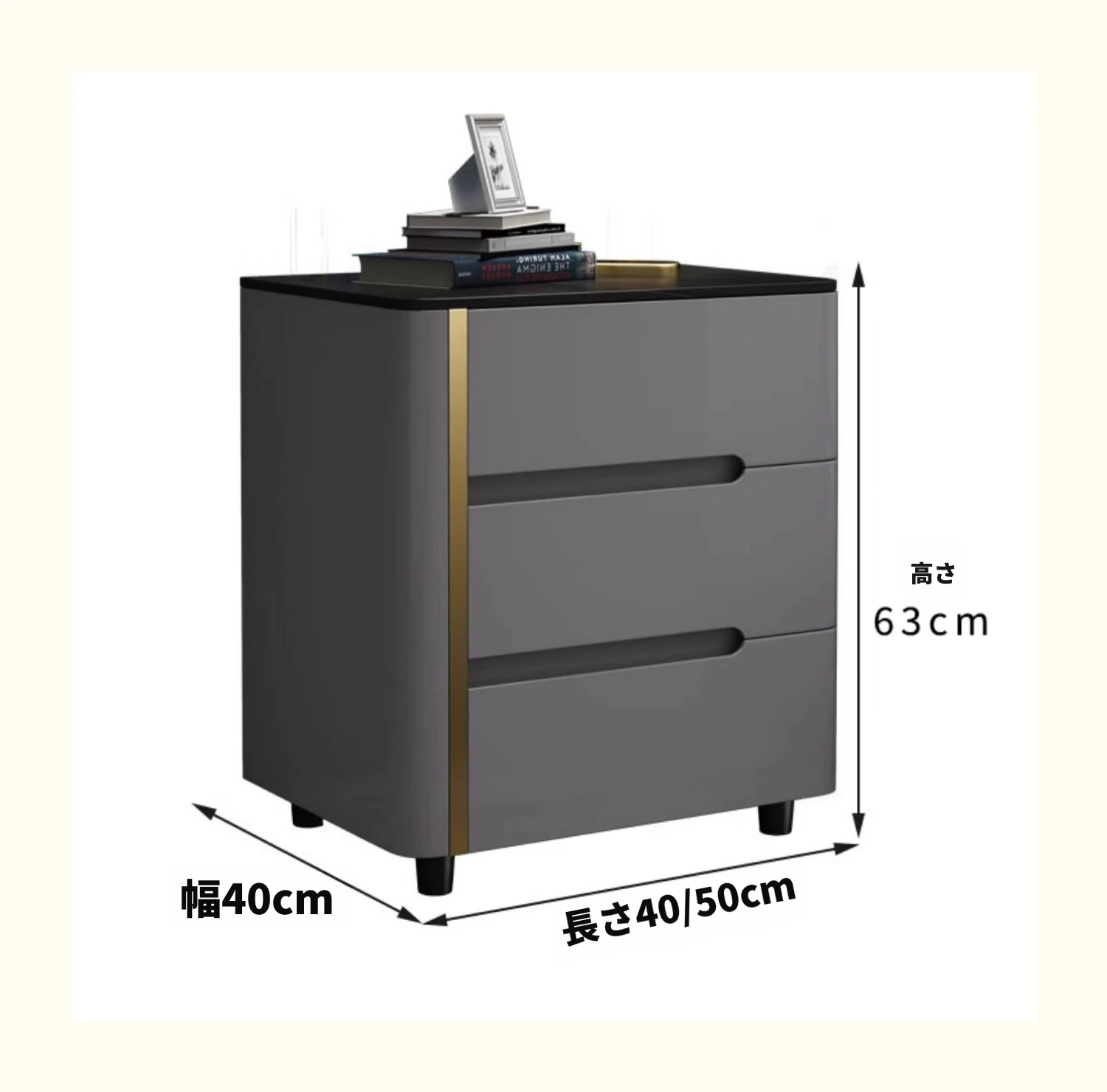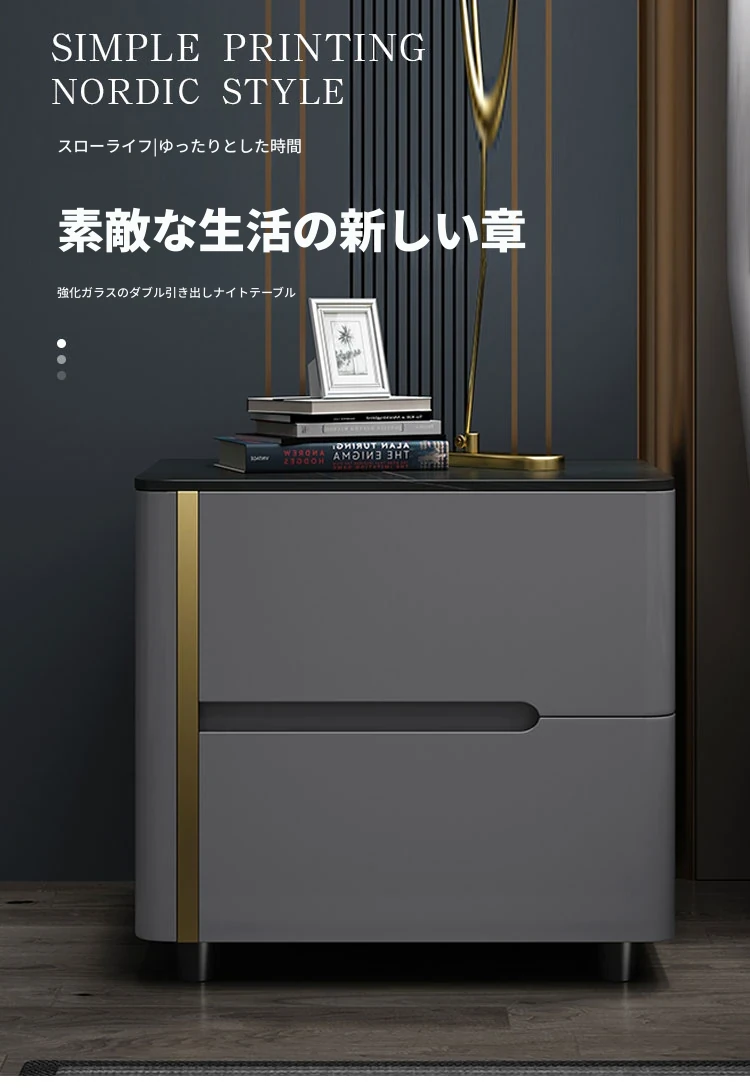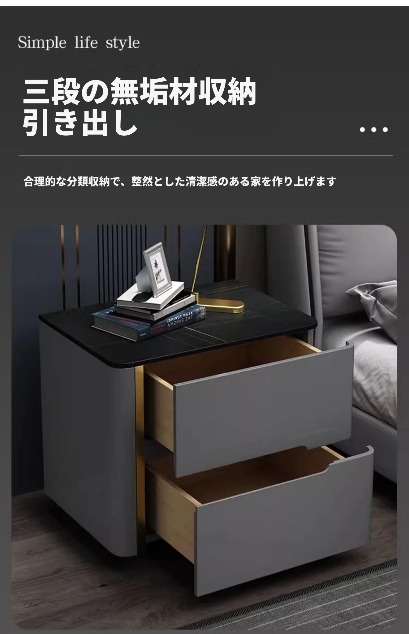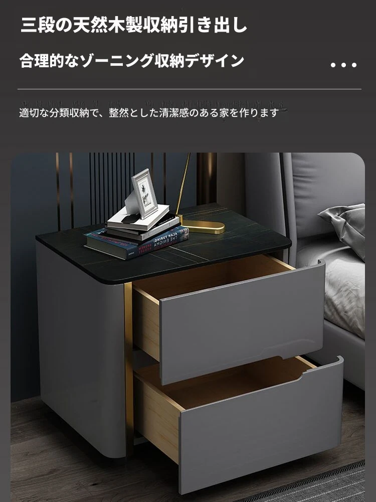 全実木の塗装ナイトテーブル 三段引き出し付き 軽やかなラグジュアリー感 家庭用 寝室にぴったりのモダンシンプルデザイン 2024年新作収納キャビネット