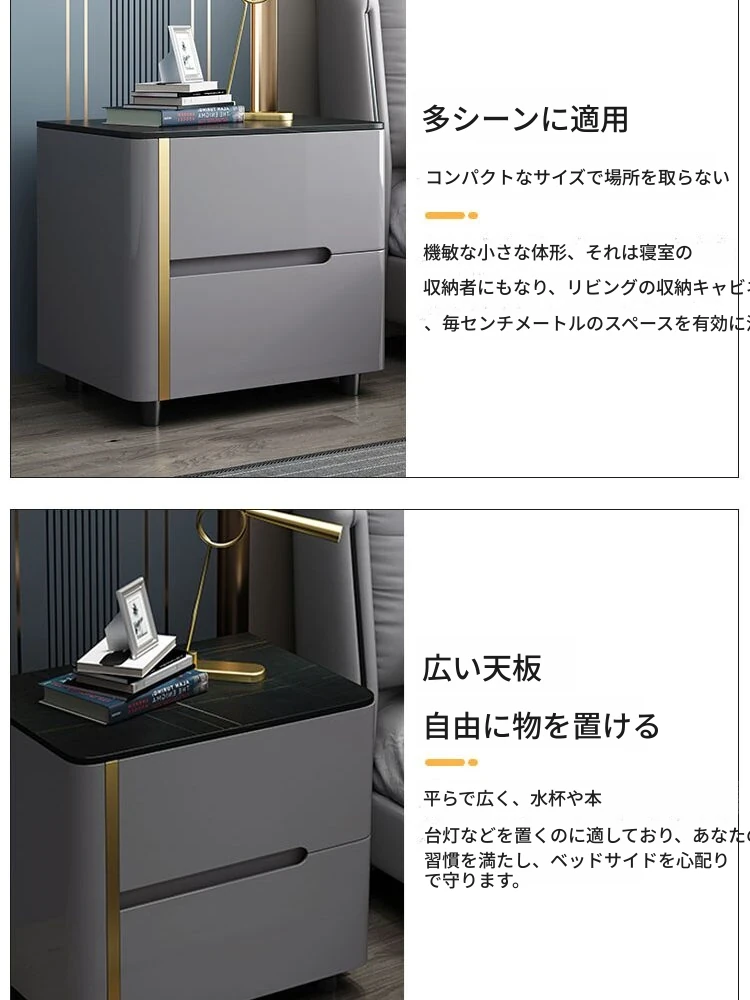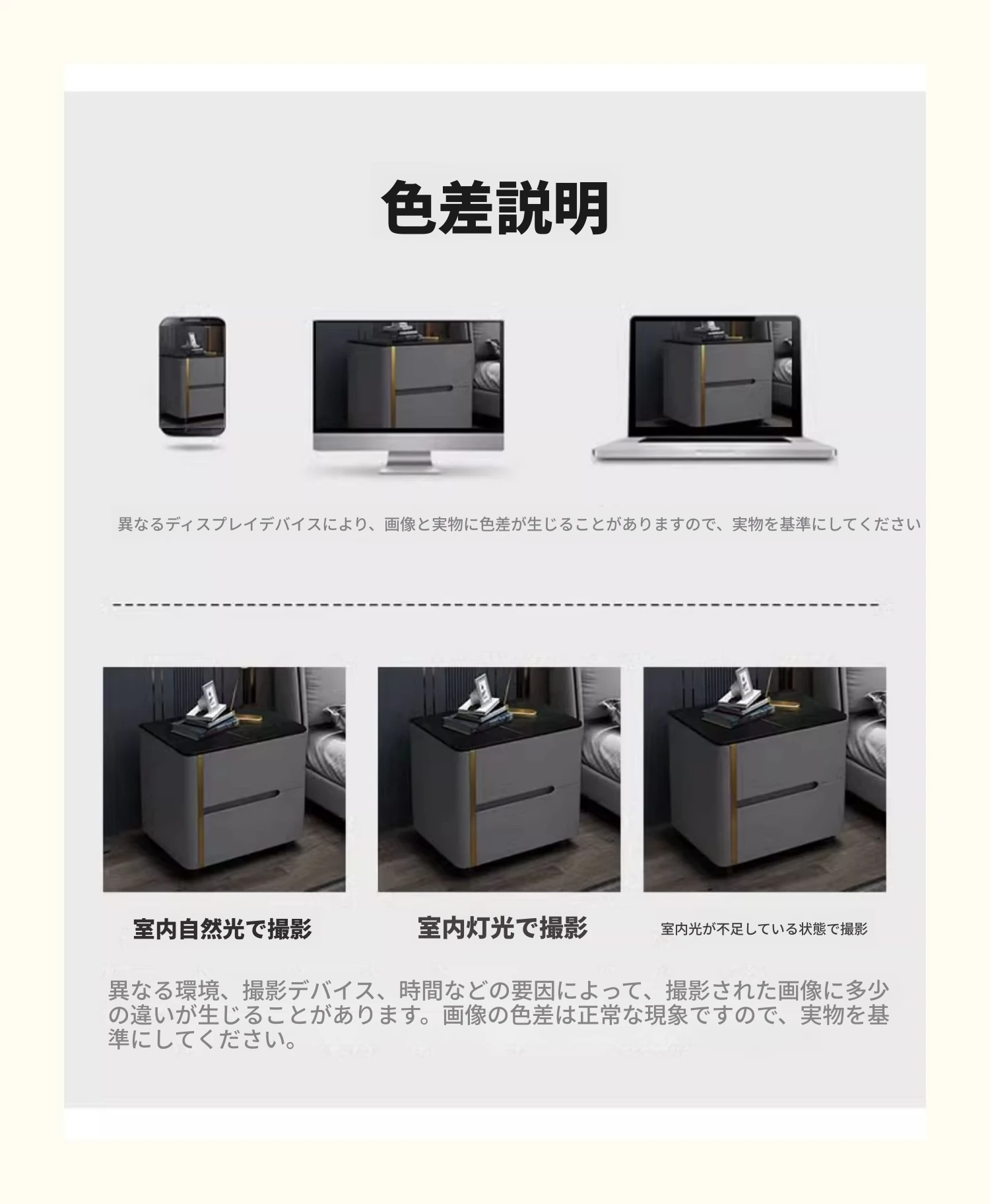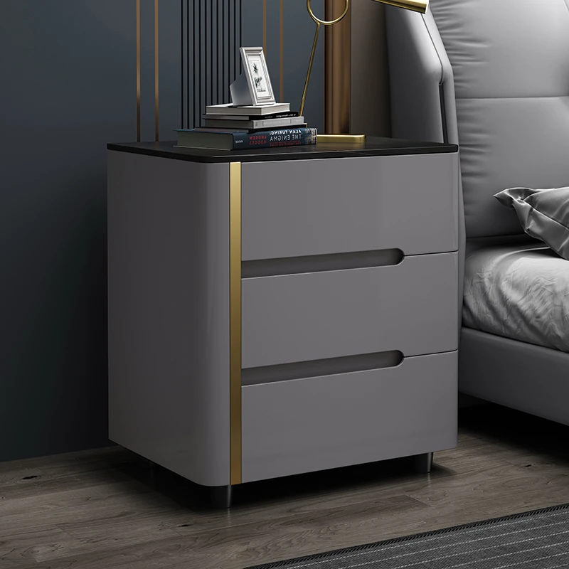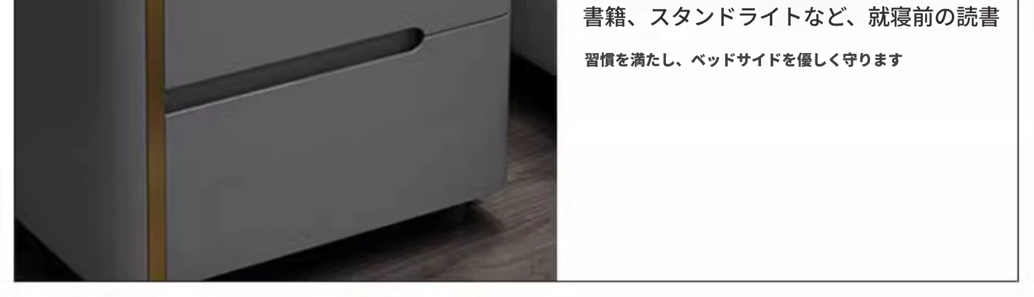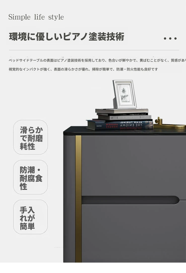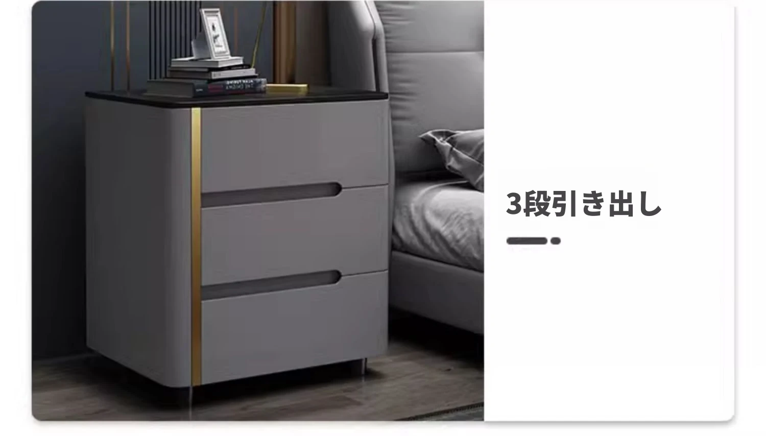 全実木の塗装ナイトテーブル 三段引き出し付き 軽やかなラグジュアリー感 家庭用 寝室にぴったりのモダンシンプルデザイン 2024年新作収納キャビネット
