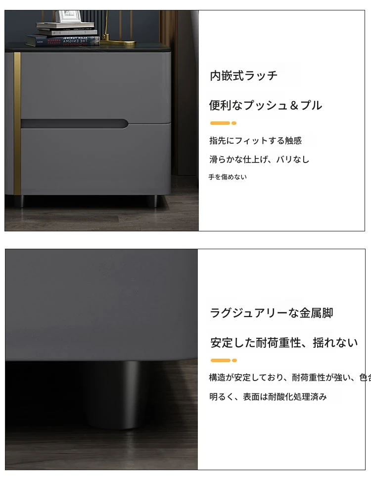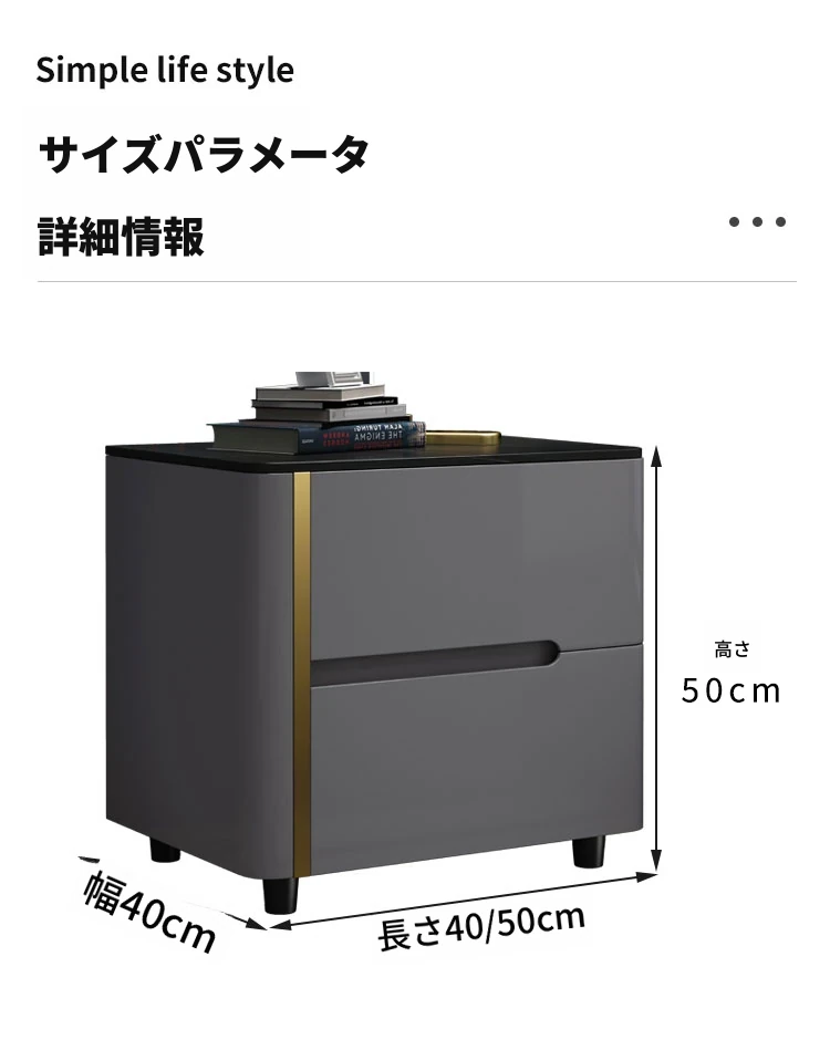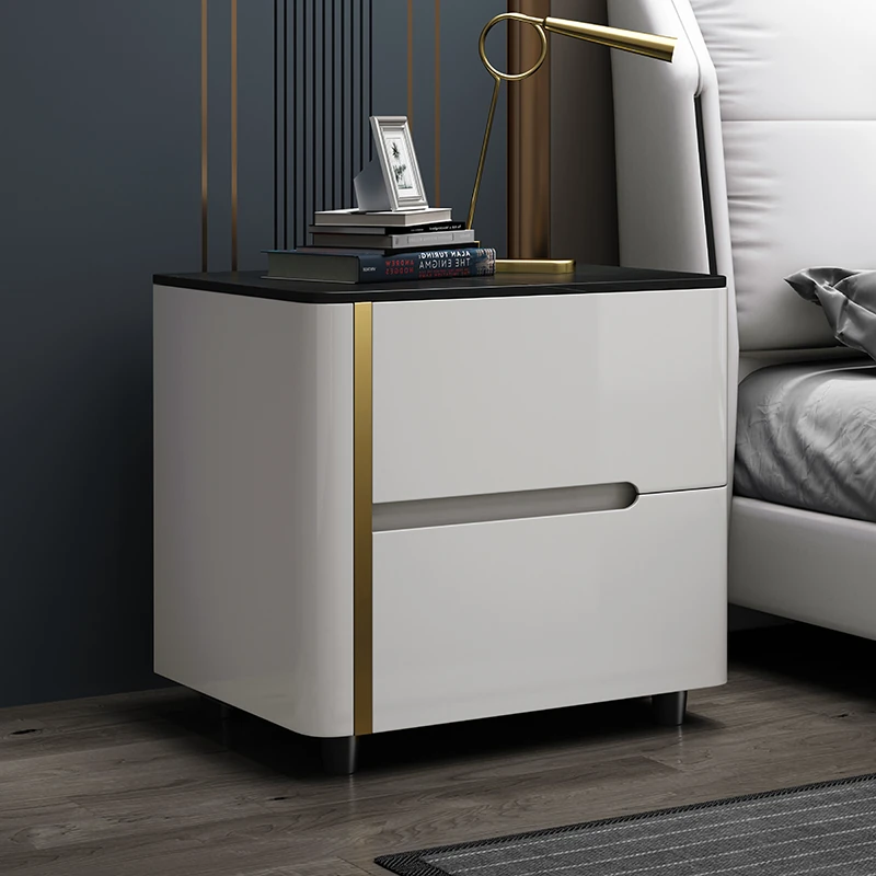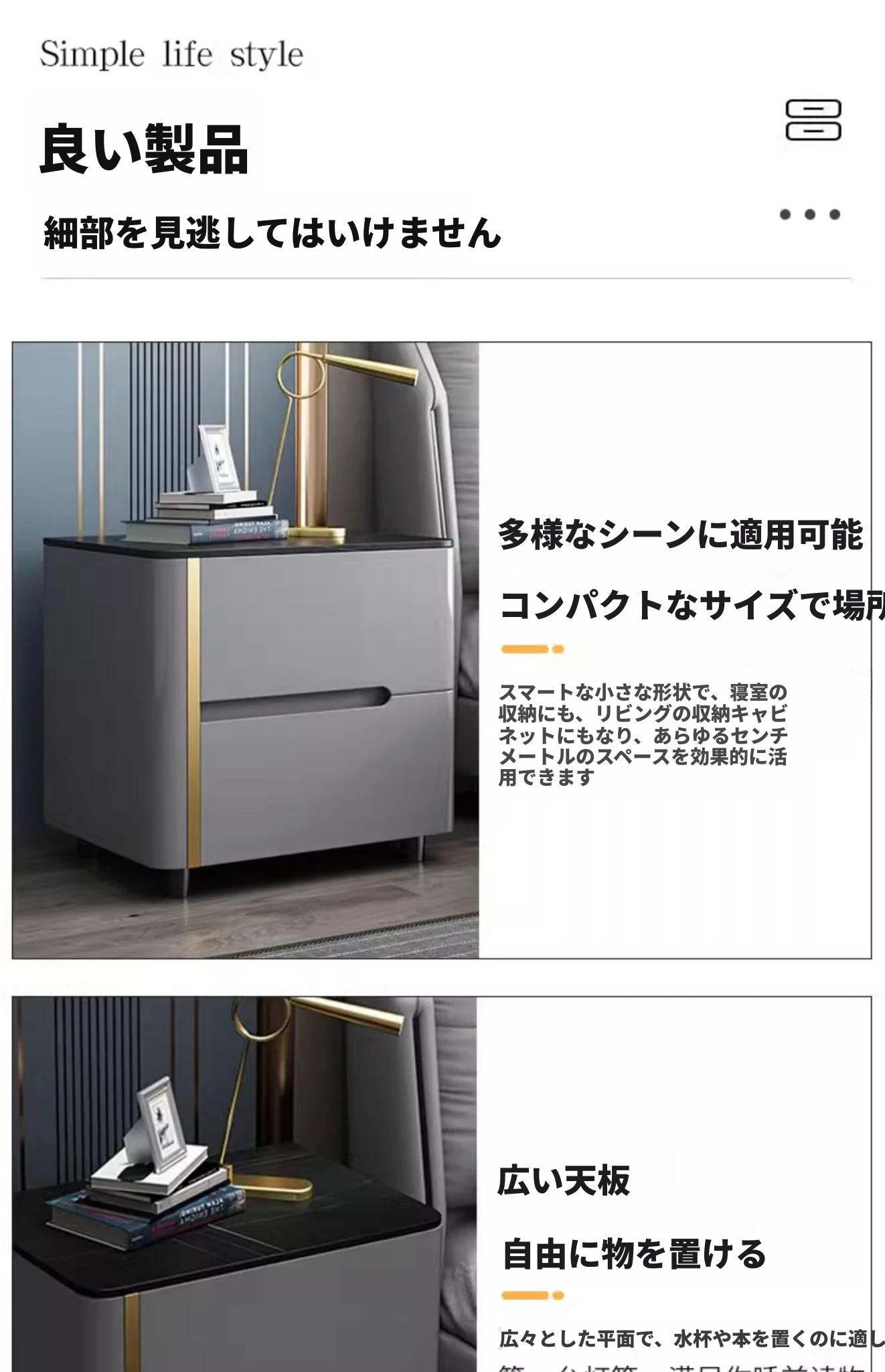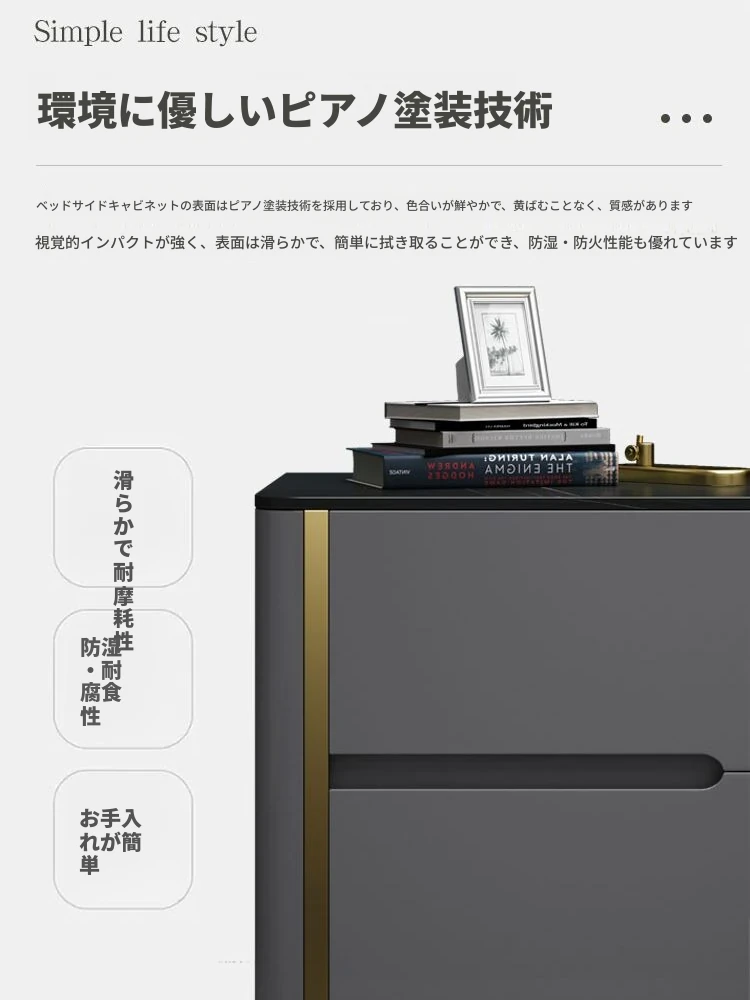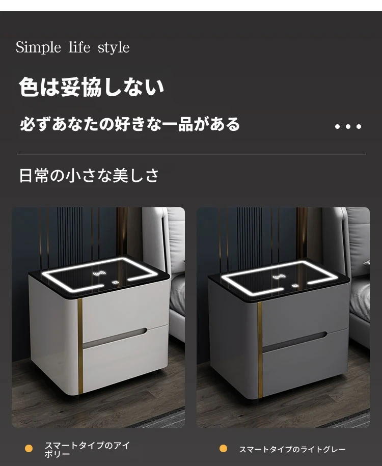 全実木の塗装ナイトテーブル 三段引き出し付き 軽やかなラグジュアリー感 家庭用 寝室にぴったりのモダンシンプルデザイン 2024年新作収納キャビネット