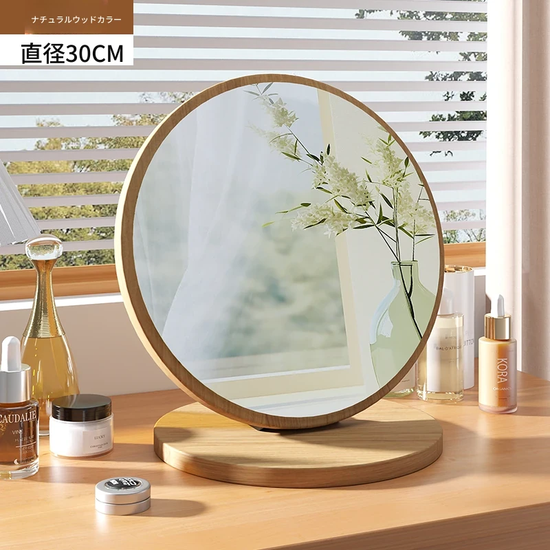 【円形】折りたたみ木製ミラー 30*30cm(純松材質)
