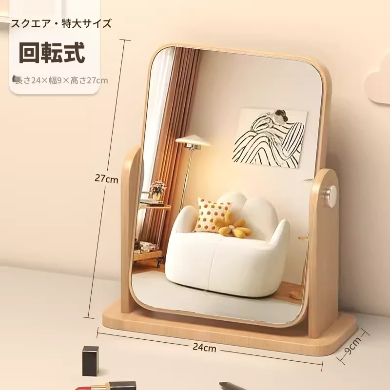 【スクエア】回転木製ミラー 27*24cm(擬似木材質)