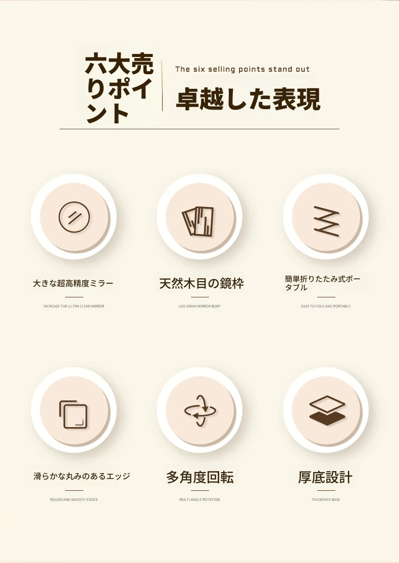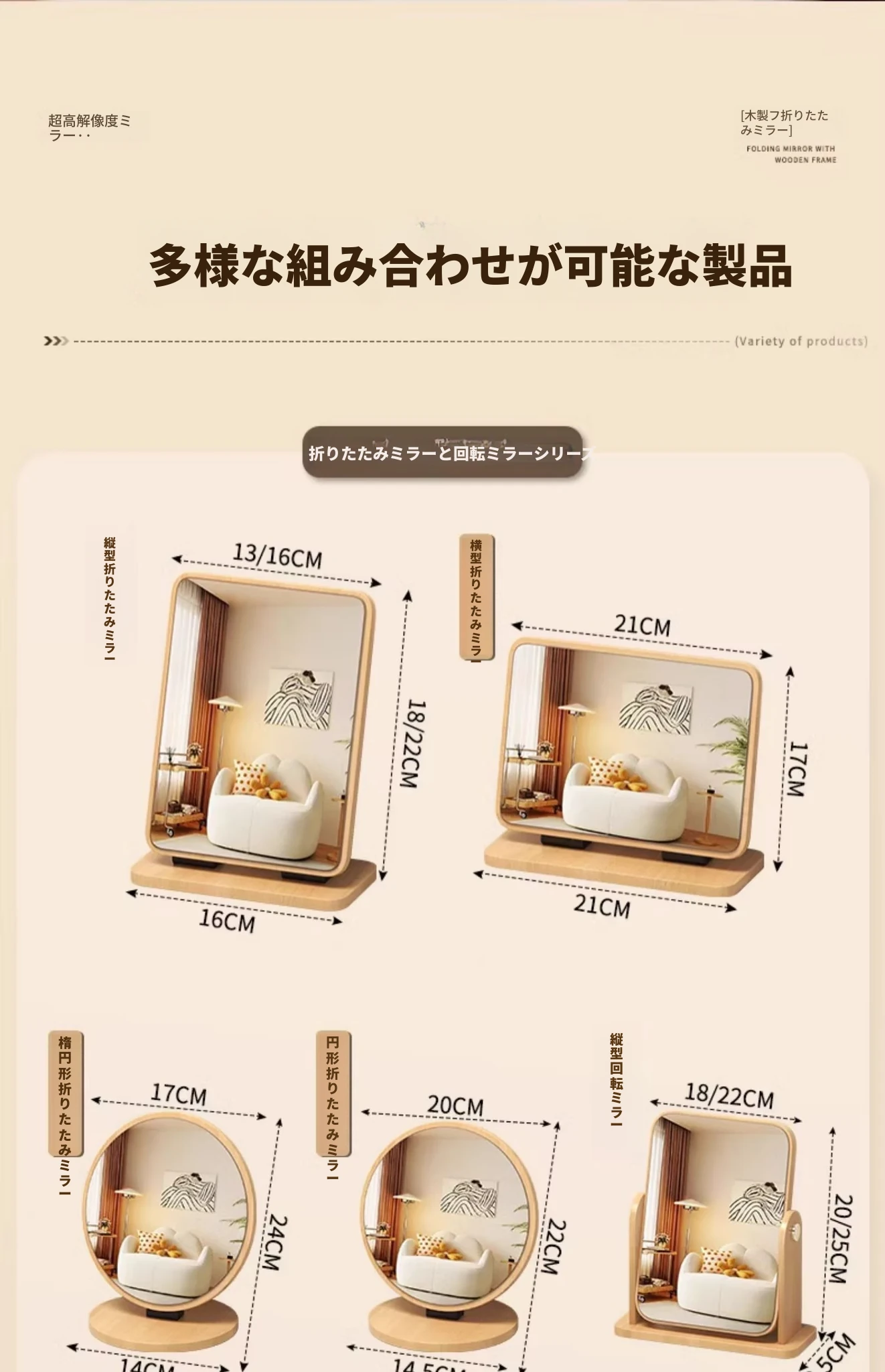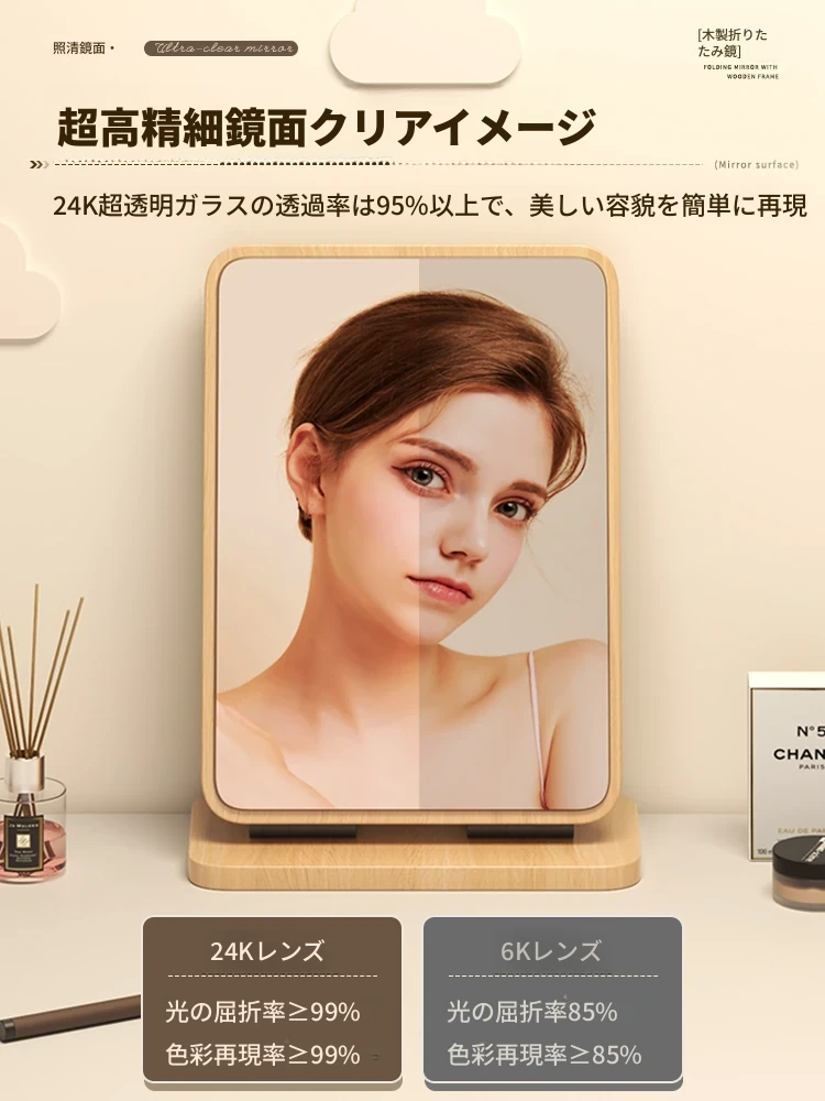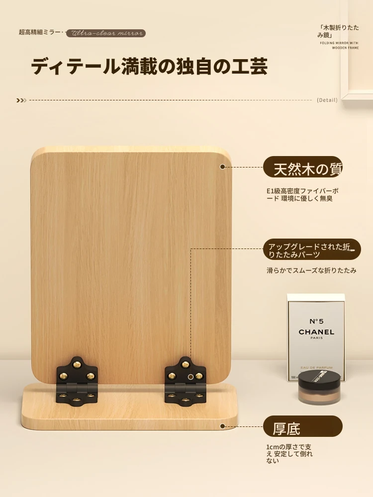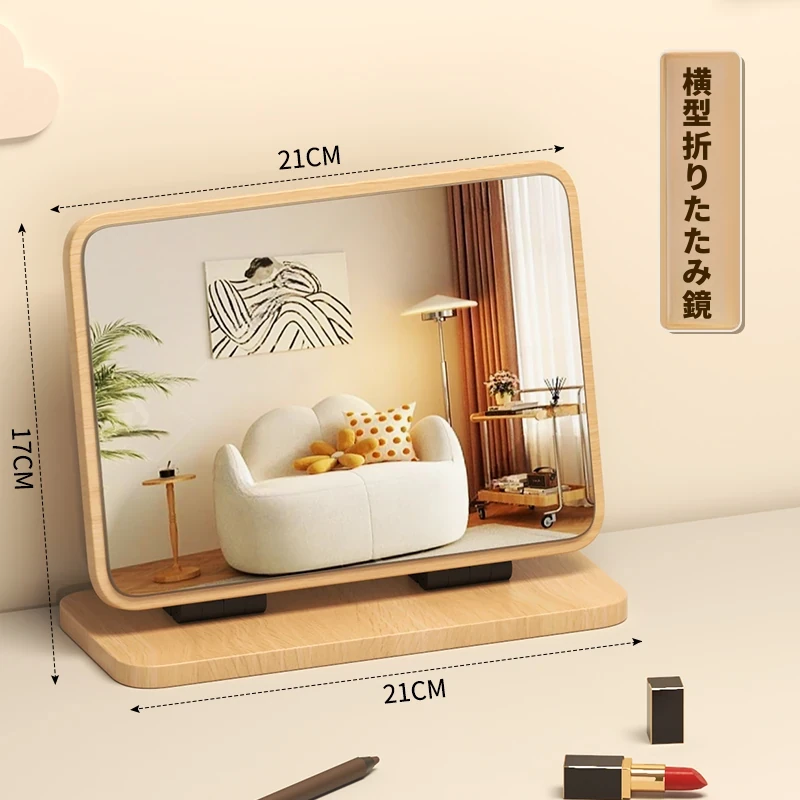 高級感あふれる木製化粧鏡!卓上用の折りたたみ式メイクアップミラーで、洗練されたインテリアにぴったり。自宅で贅沢なビューティータイムを楽しみましょう。大きな鏡面で、完璧なメイクが叶います!