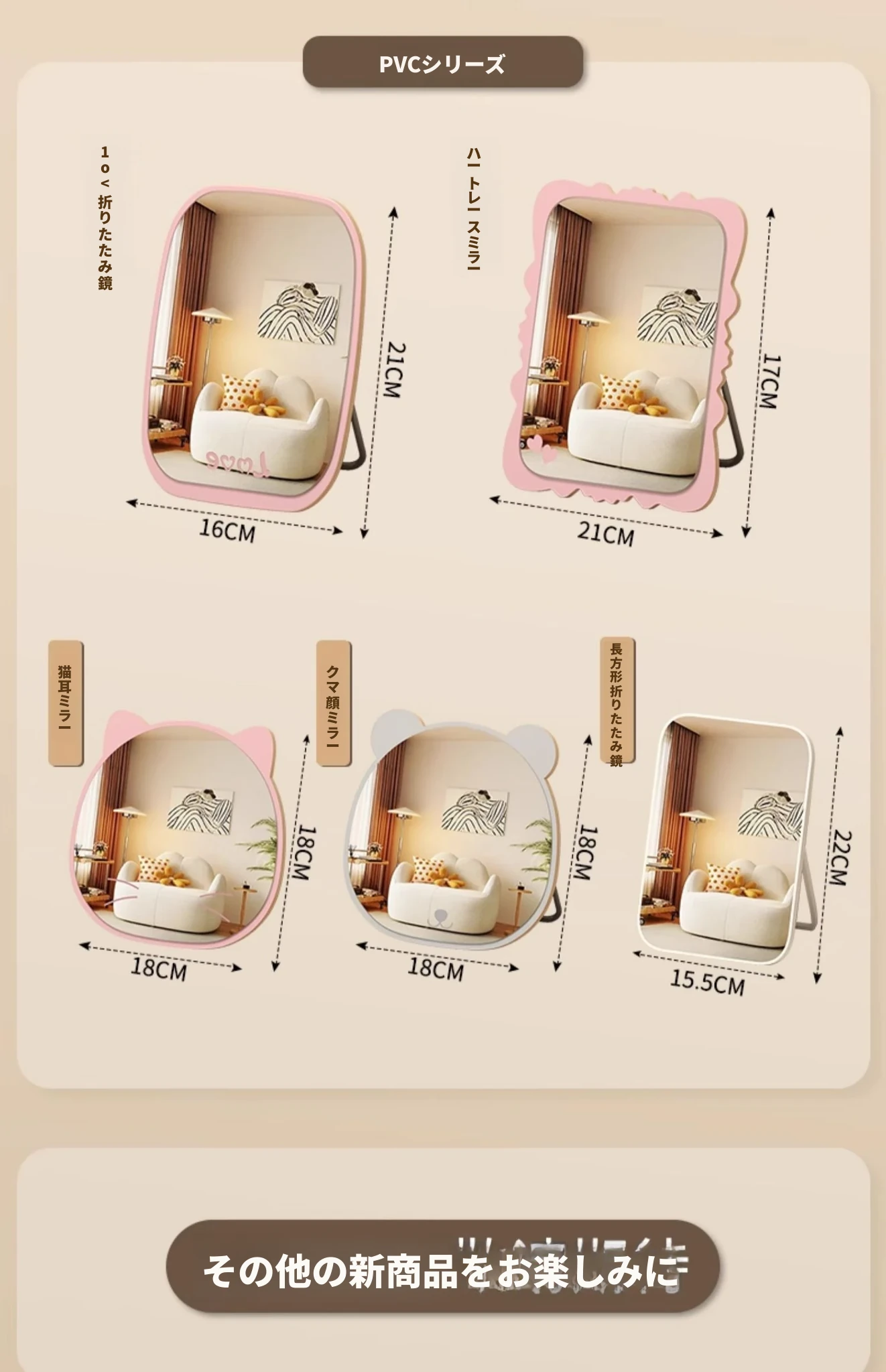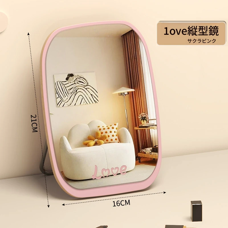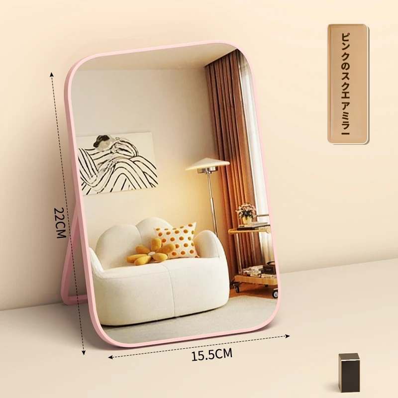 【スクエア】ピンクのPVCミラー 22*15.5cm(PVC材質)