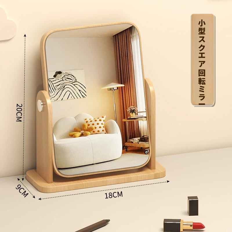 【スクエア】回転木製ミラー 20*18cm(擬似木材質)