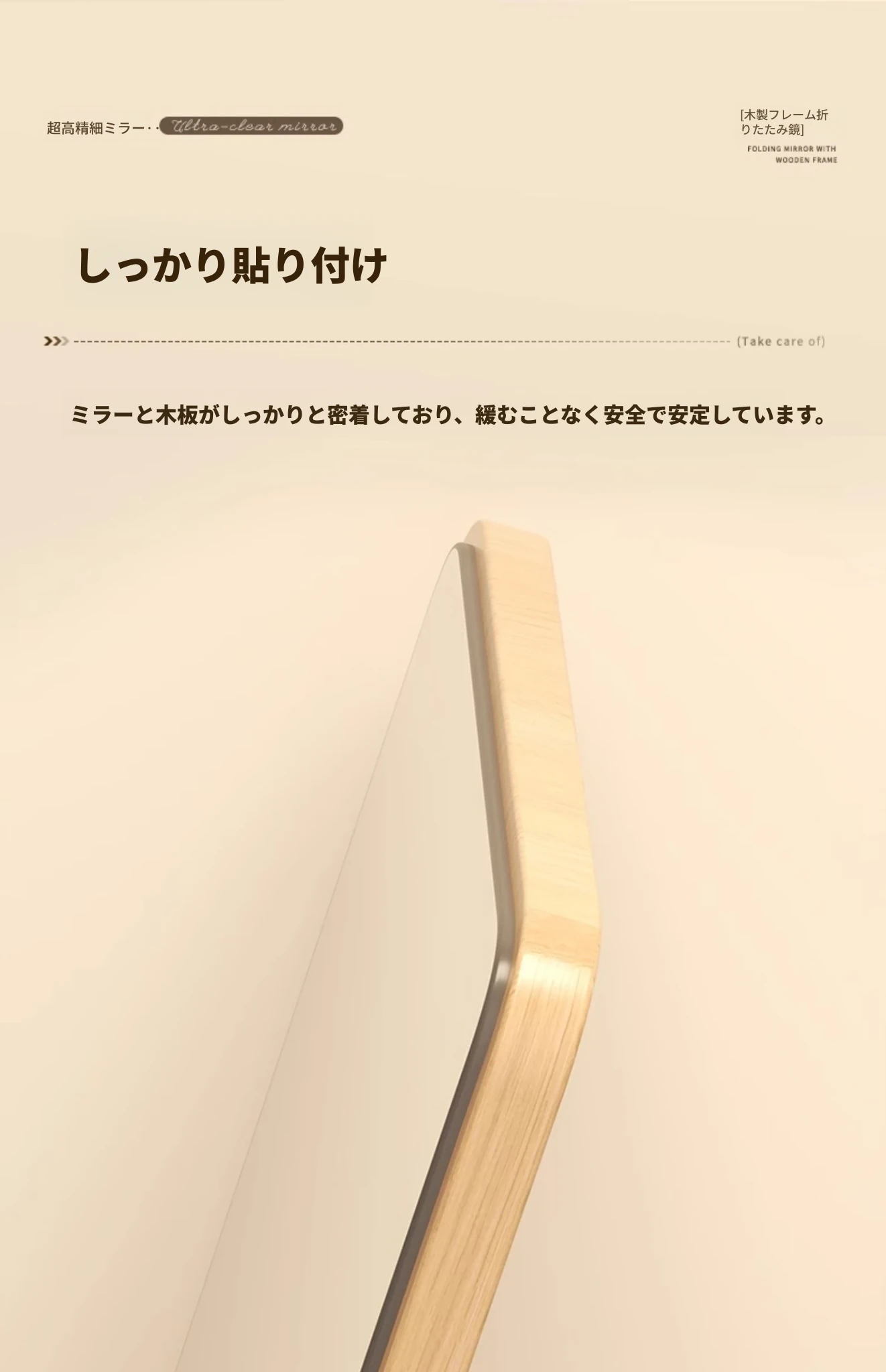 ✨人気商品✨【スクエア】折りたたみ木製ミラー 16*22cm(擬似木材質)