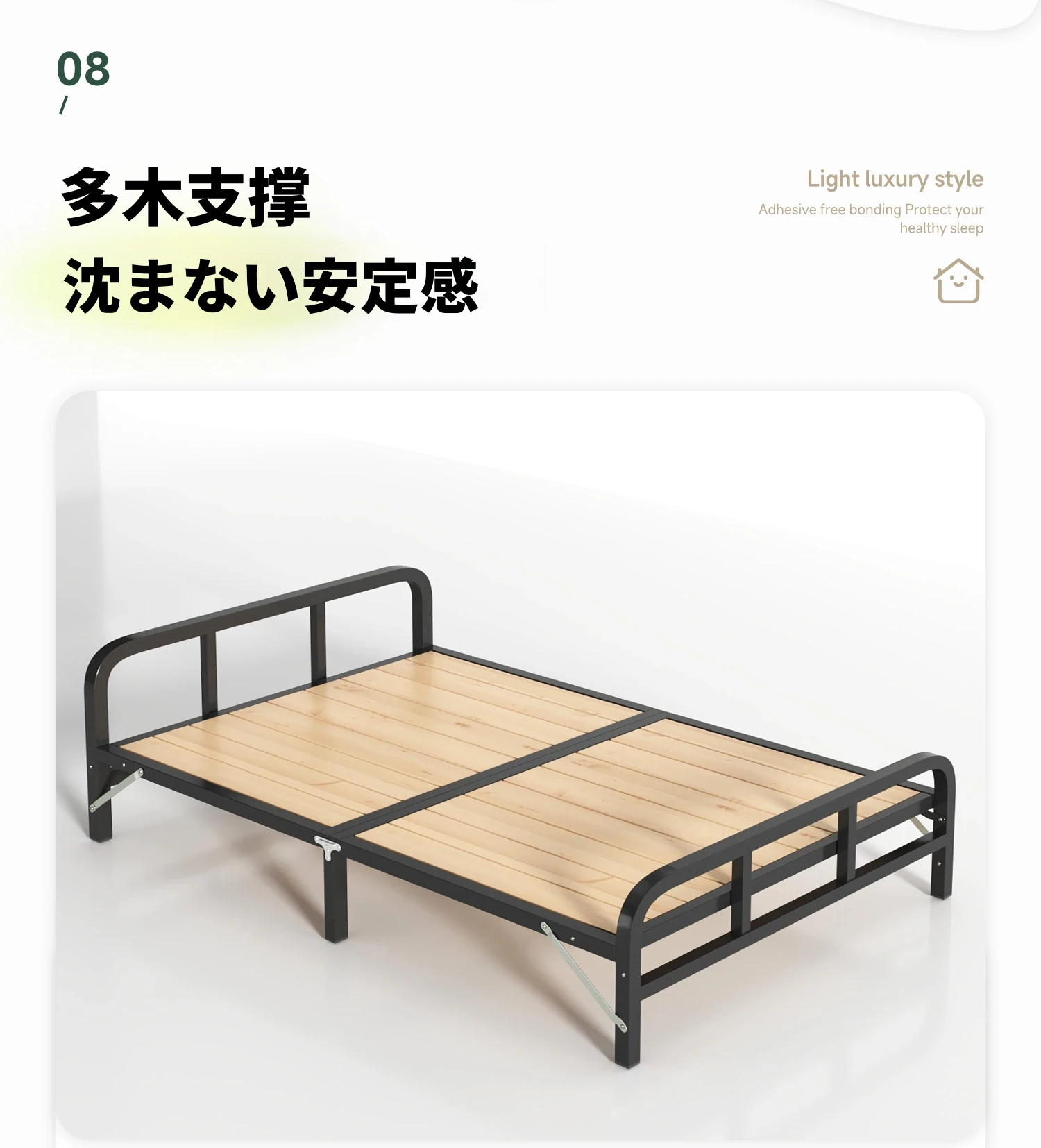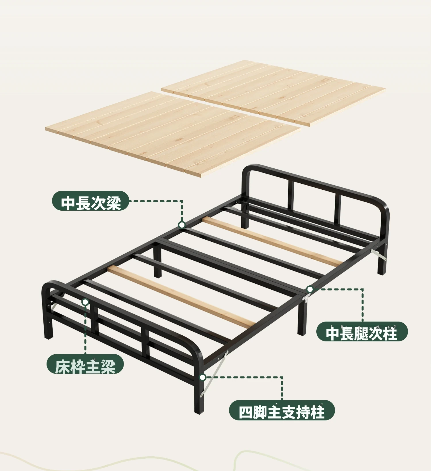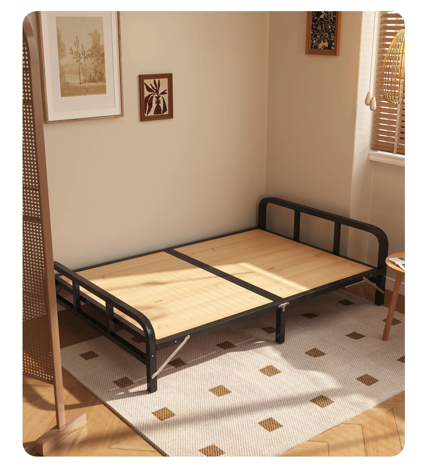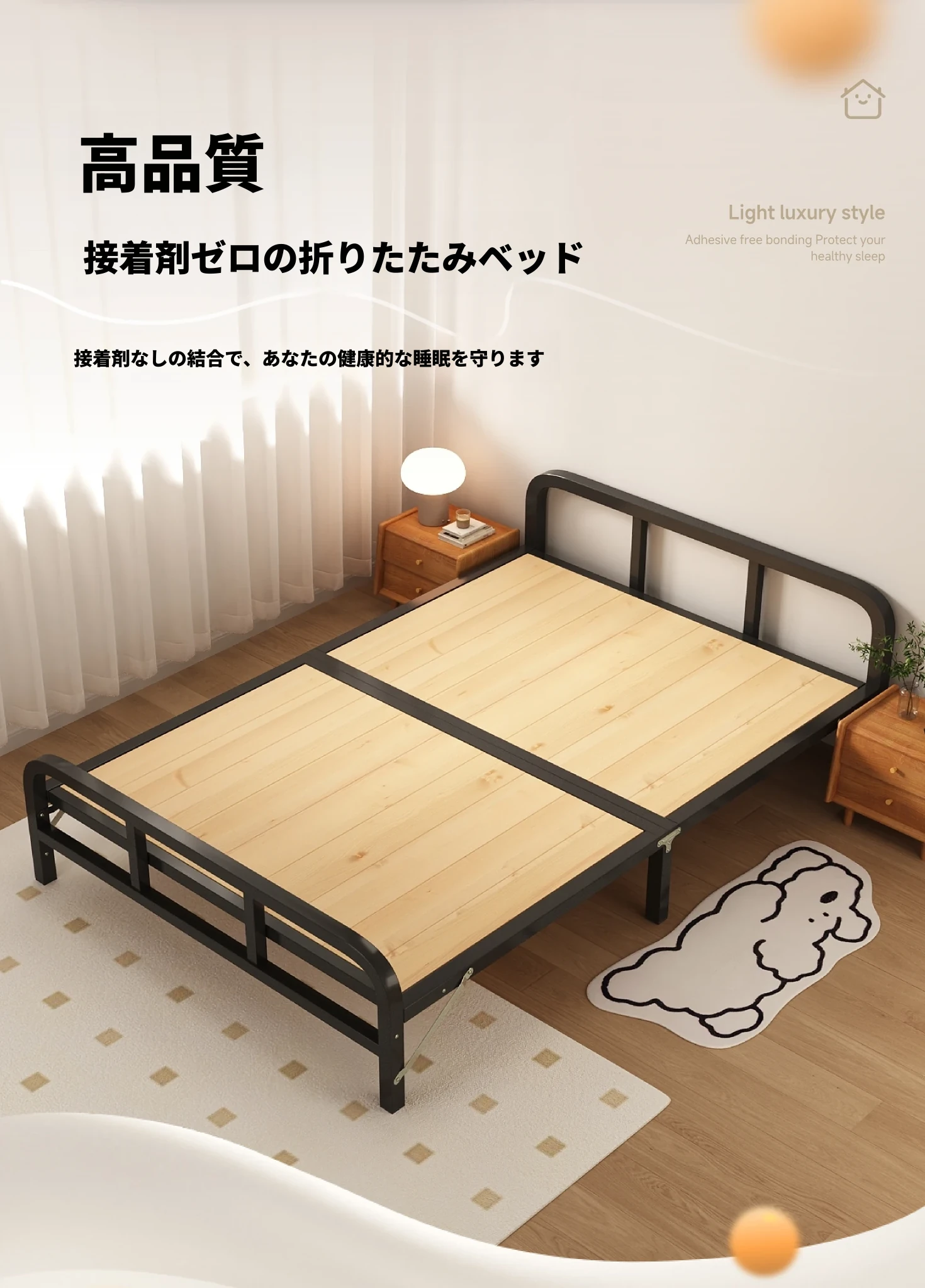 折りたたみ鉄製シングルベッド - 簡単に使える大人用昼寝ベッド!1.5mのダブルサイズ、頑丈な無垢材使用で夜勤にも最適。快適な休息を提供します!