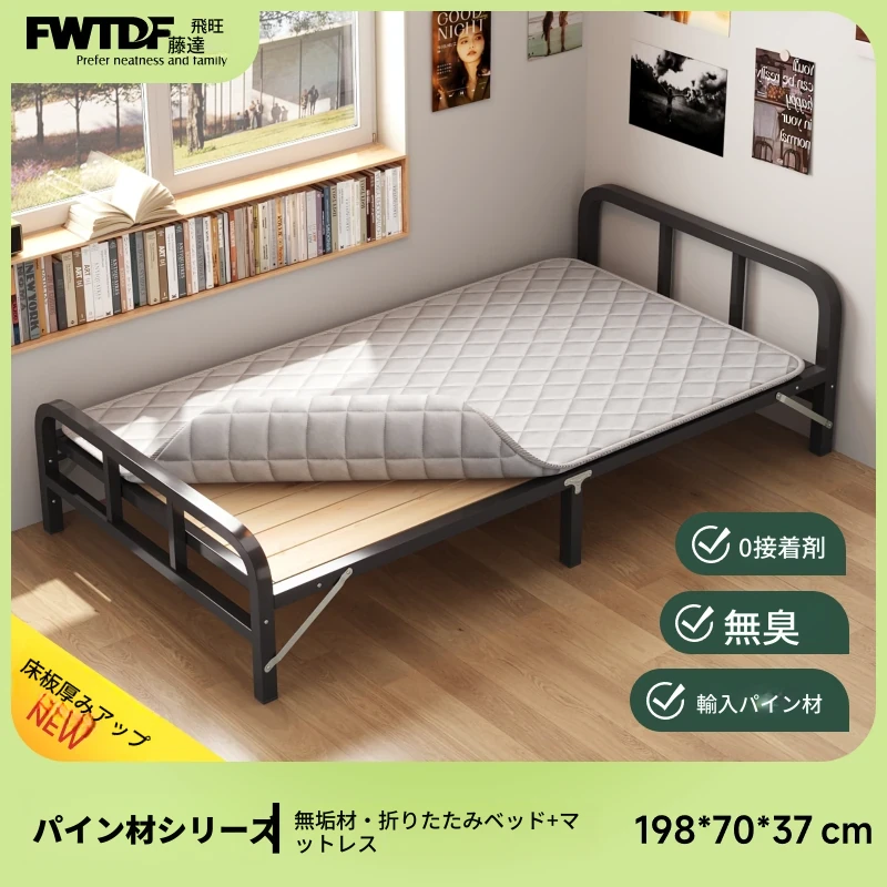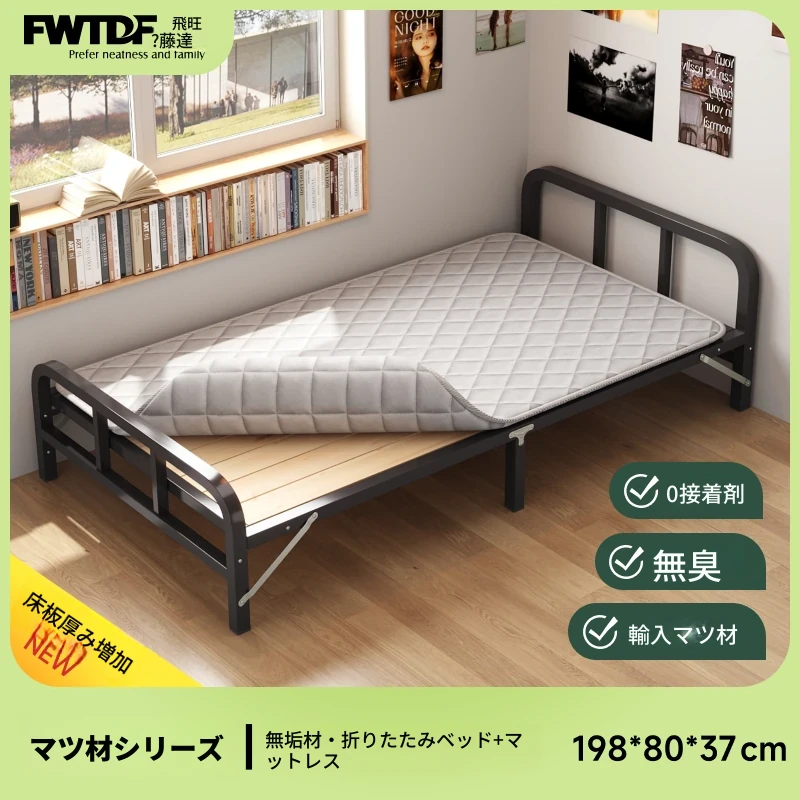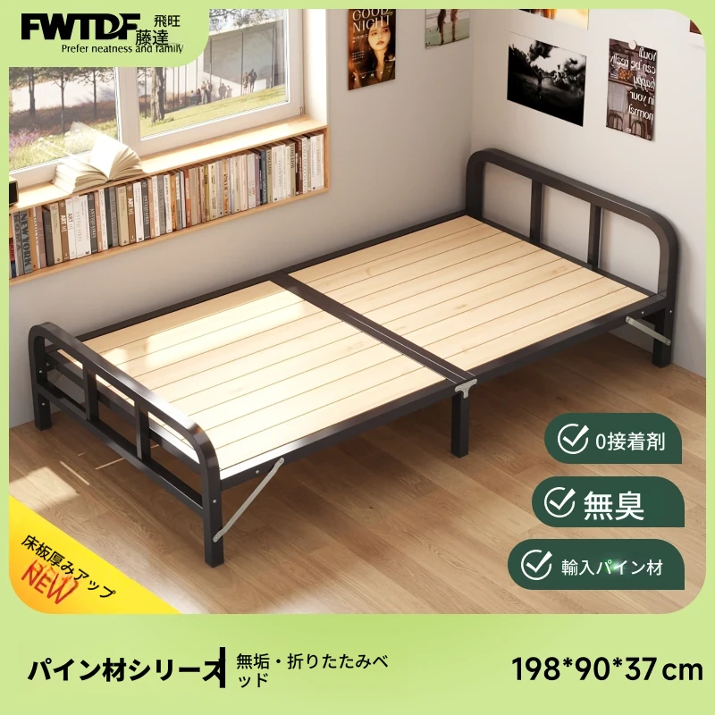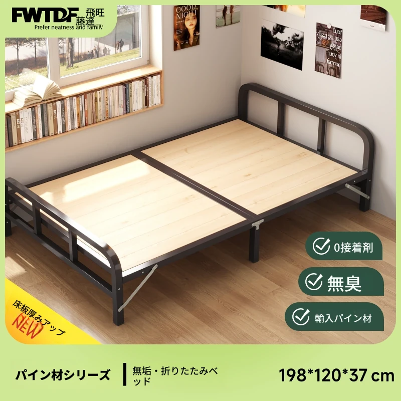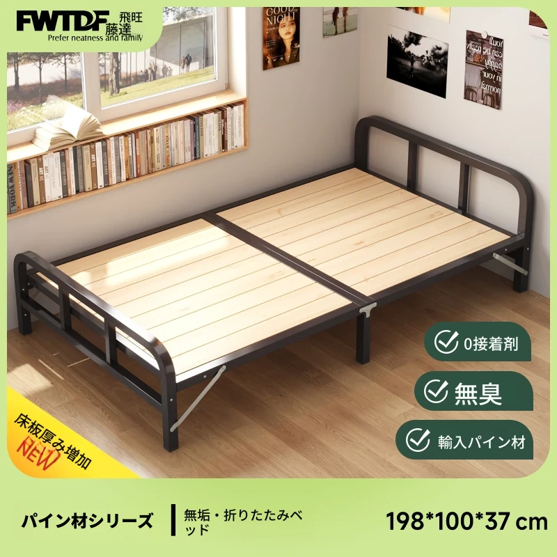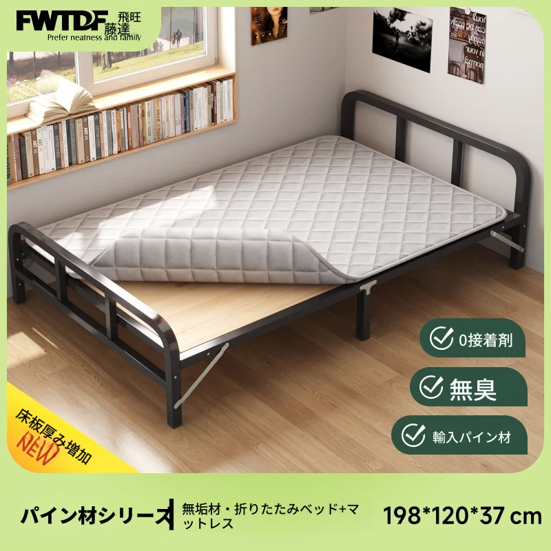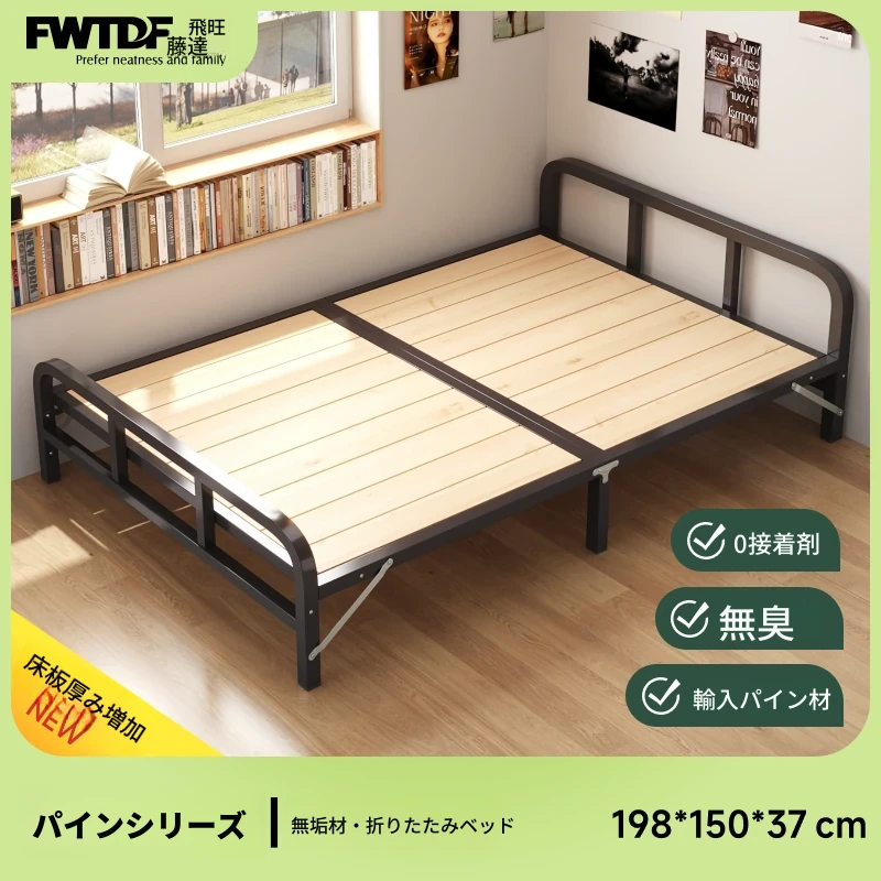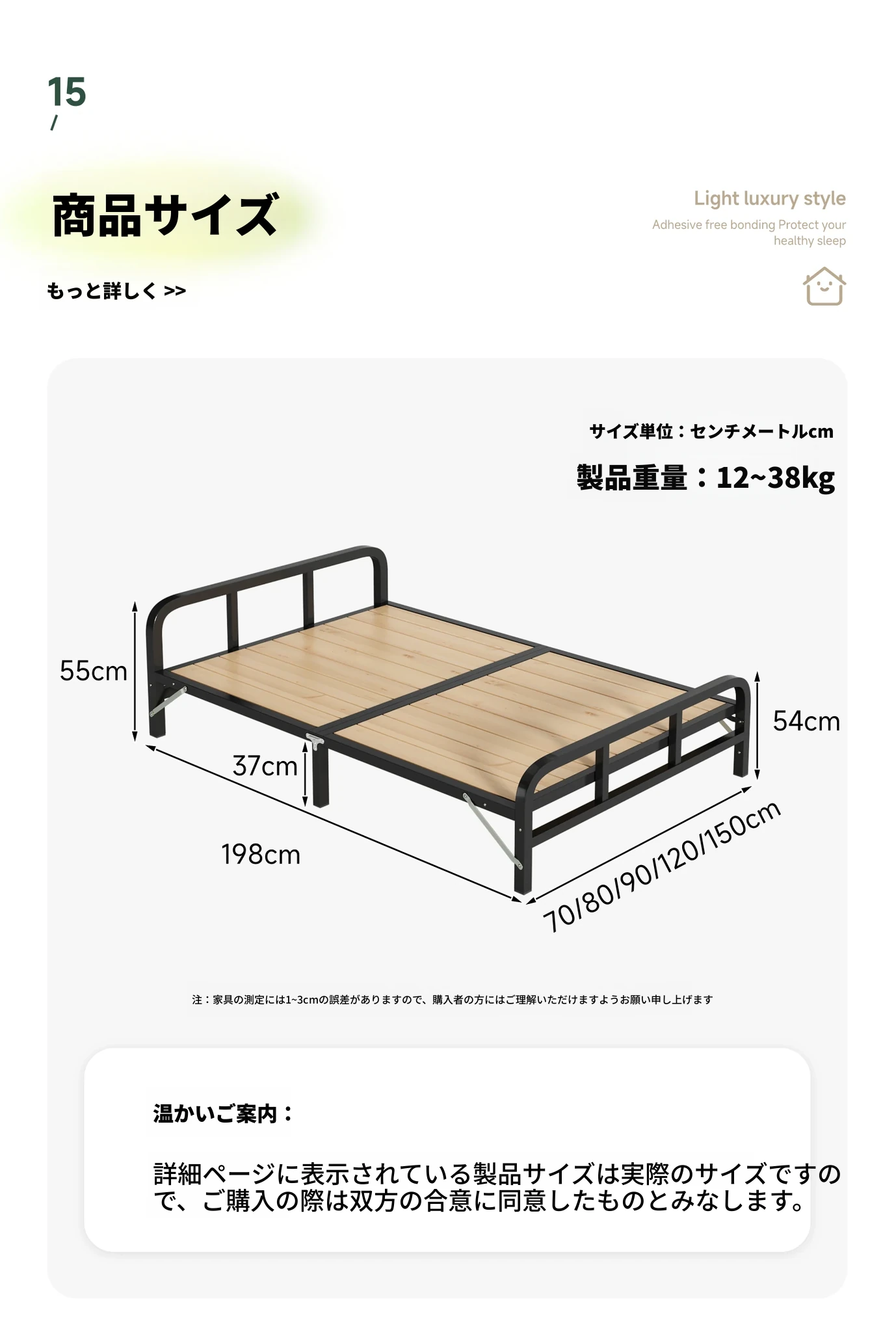 折りたたみ鉄製シングルベッド - 簡単に使える大人用昼寝ベッド!1.5mのダブルサイズ、頑丈な無垢材使用で夜勤にも最適。快適な休息を提供します!