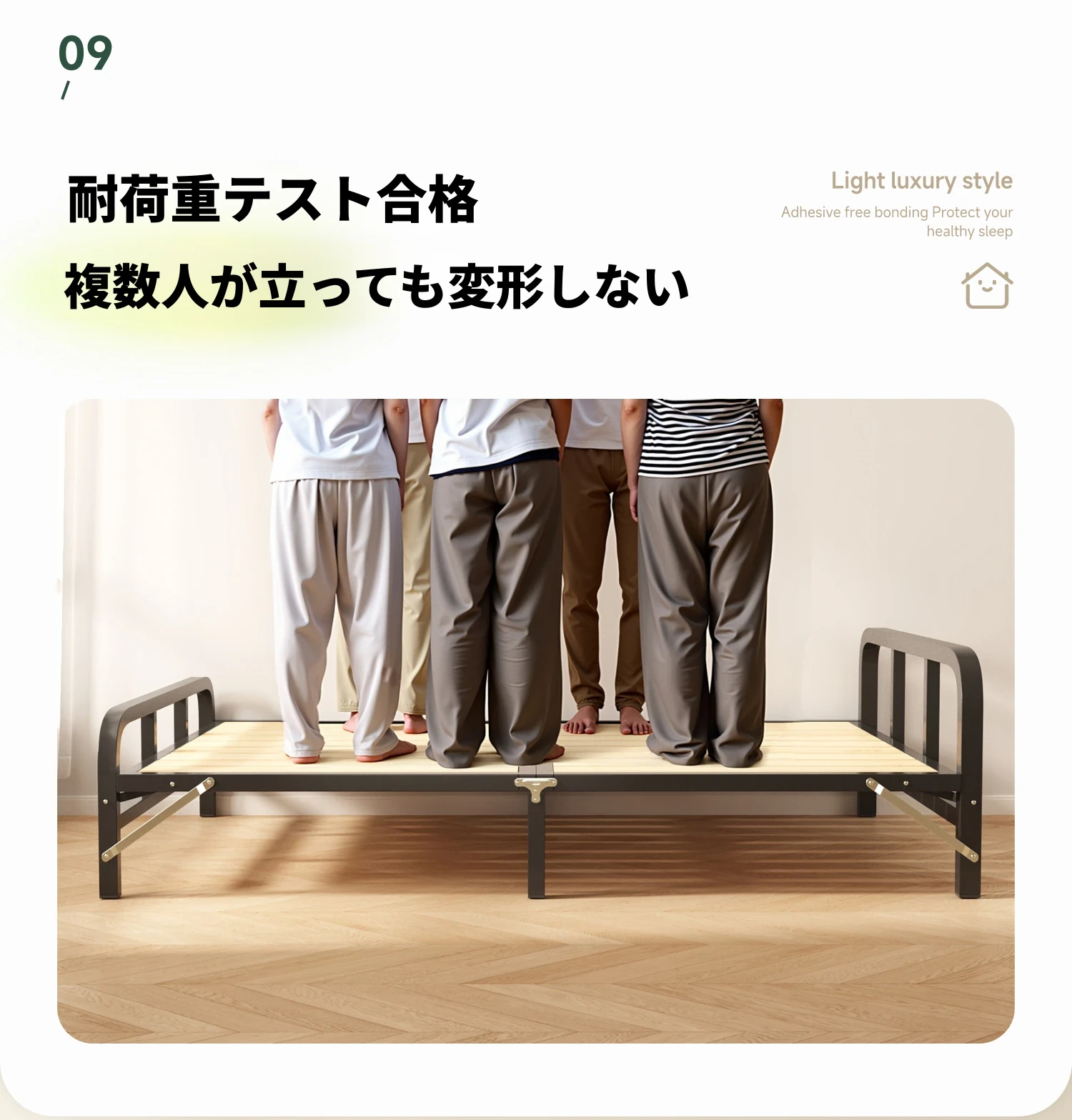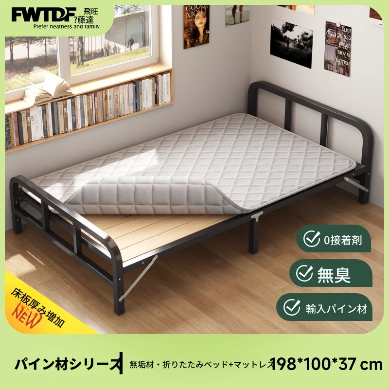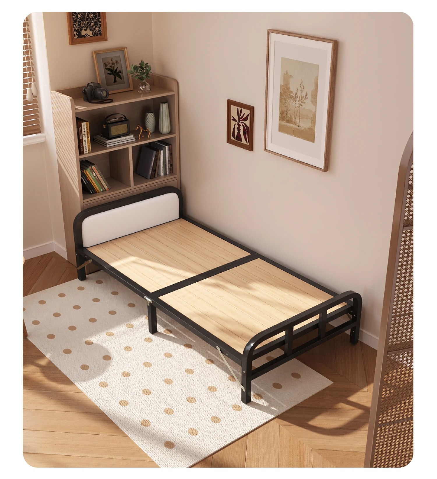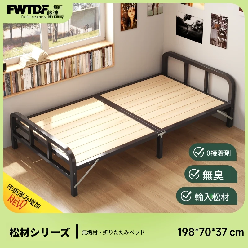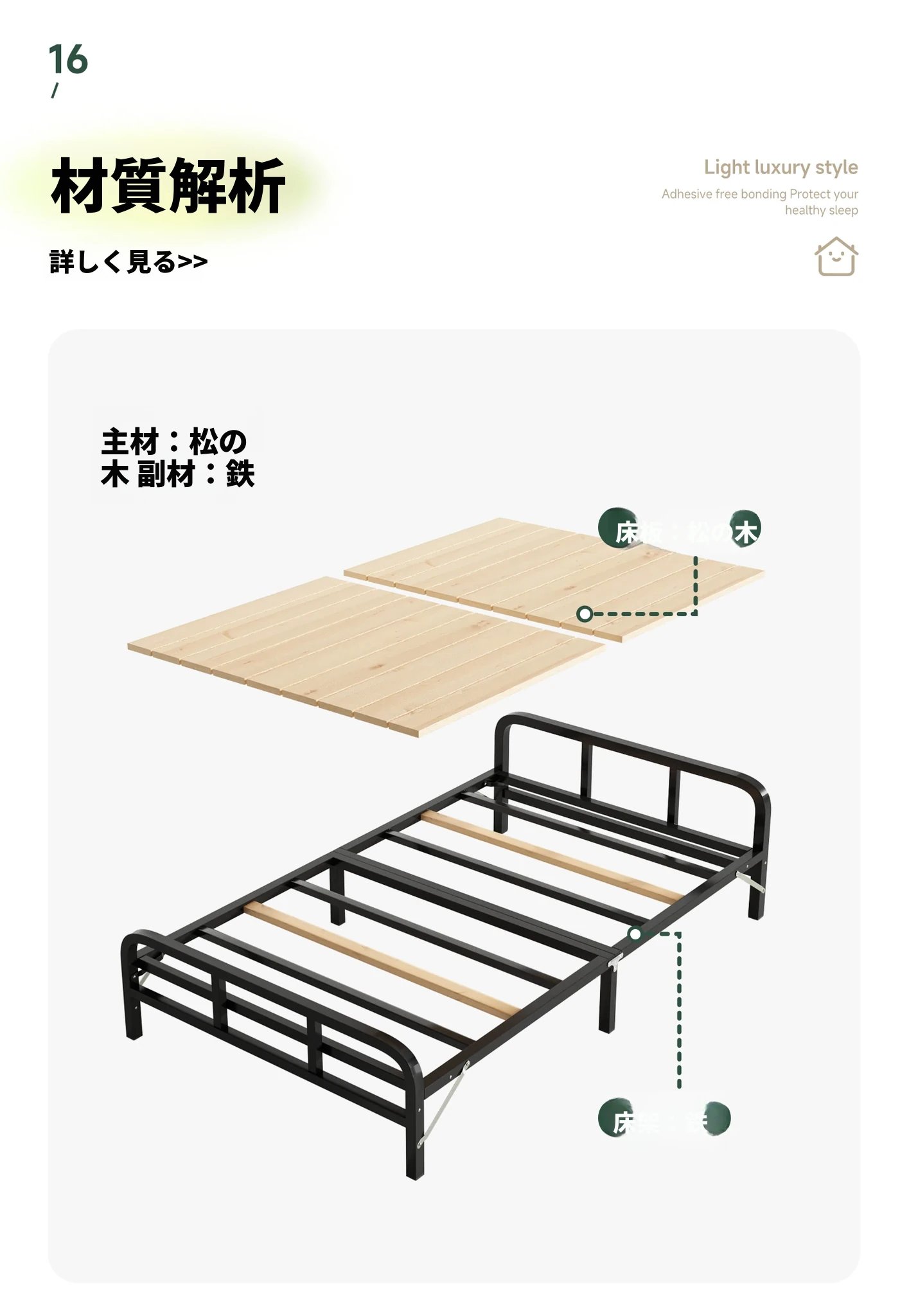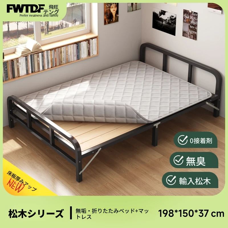 折りたたみ鉄製シングルベッド - 簡単に使える大人用昼寝ベッド!1.5mのダブルサイズ、頑丈な無垢材使用で夜勤にも最適。快適な休息を提供します!