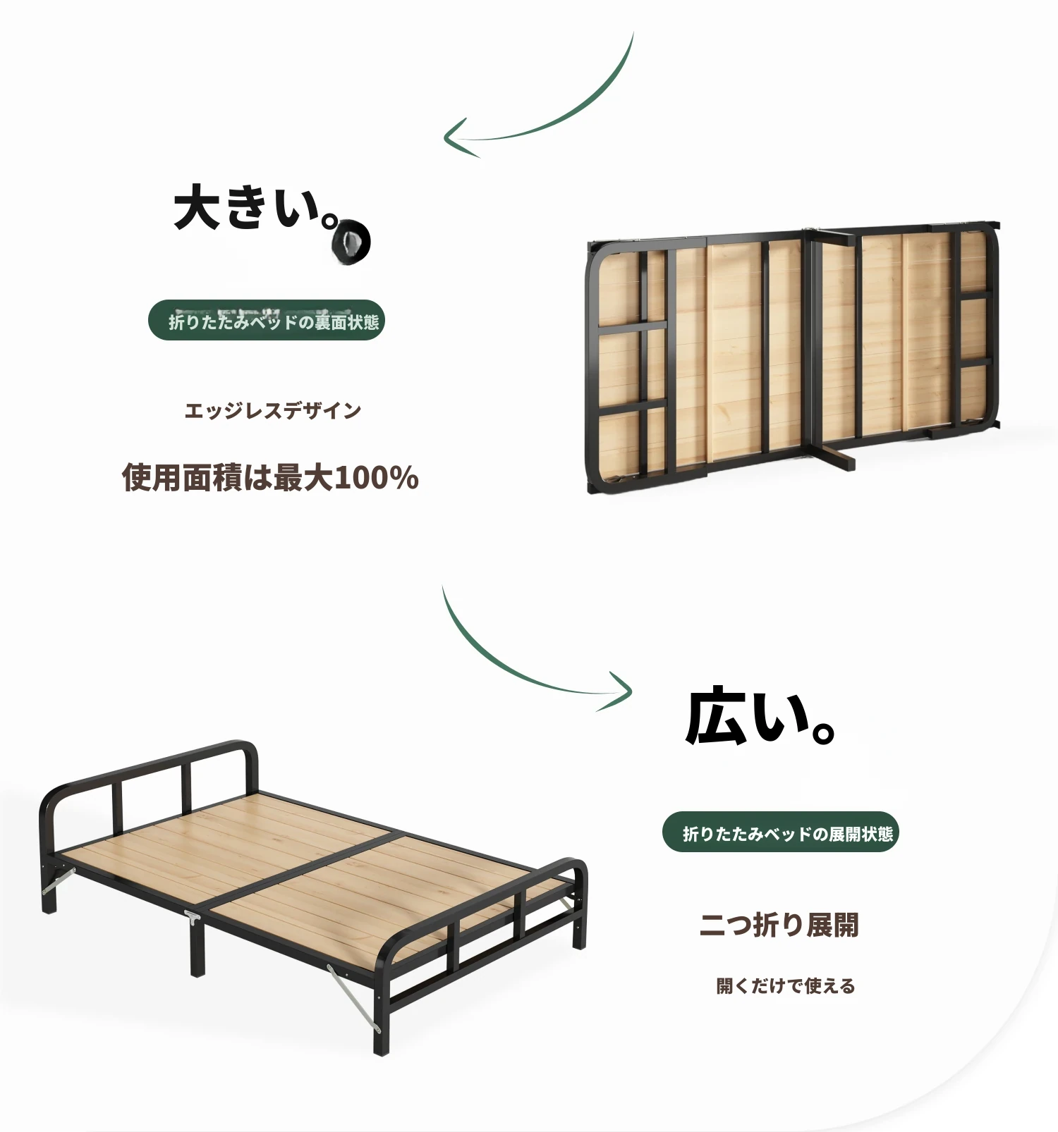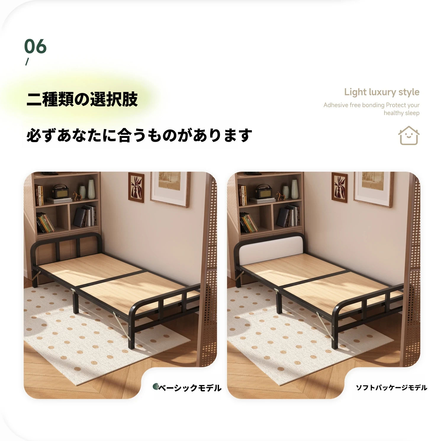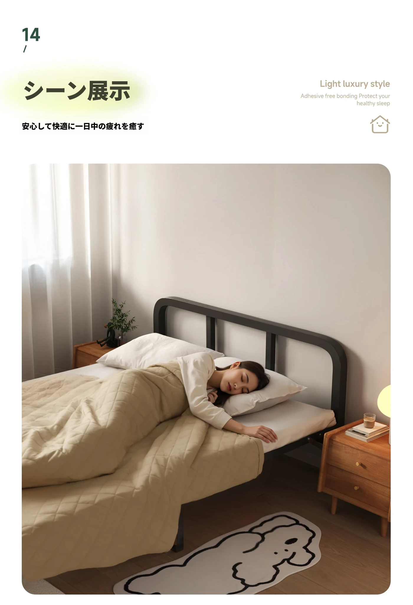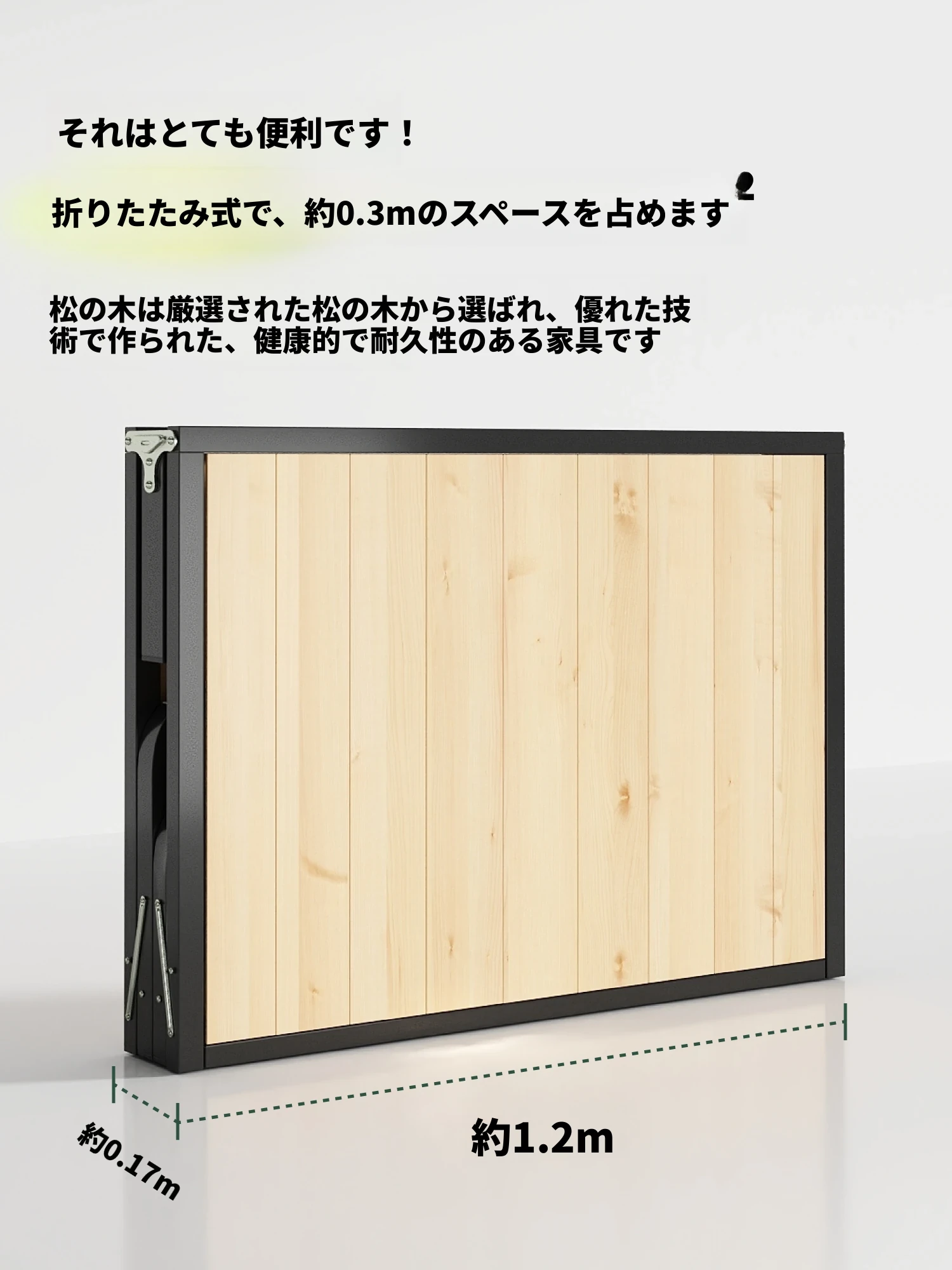 折りたたみ鉄製シングルベッド - 簡単に使える大人用昼寝ベッド!1.5mのダブルサイズ、頑丈な無垢材使用で夜勤にも最適。快適な休息を提供します!