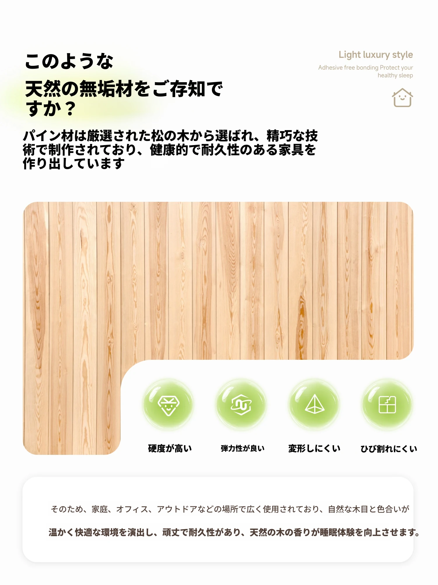 厚さ強化モデル【70CM】接着剤なし⭐無垢材ベッド