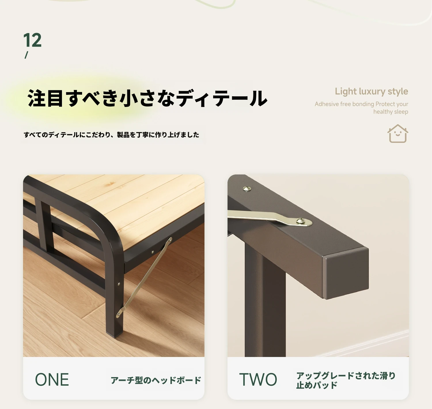 厚さ強化モデル【120CM】【マットレスセット】接着剤なし⭐無垢材ベッド