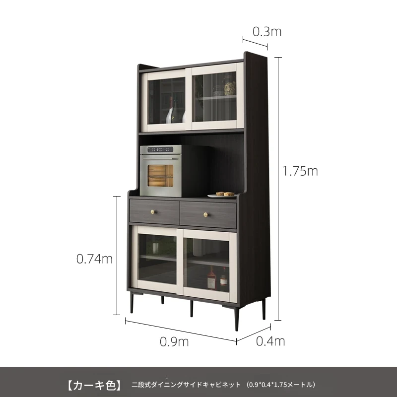 518ダブルレイヤー2ドアサイドボード【カーキ色】