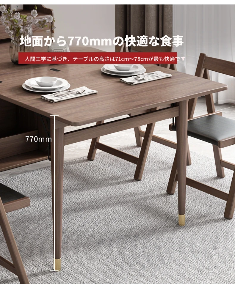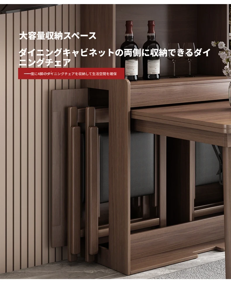 ダイニングテーブルとサイドボードのセット+無垢材の椅子*6(ウォールナット色)