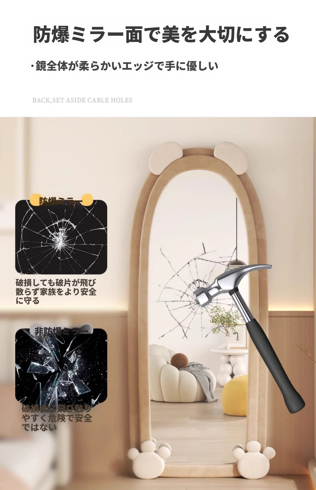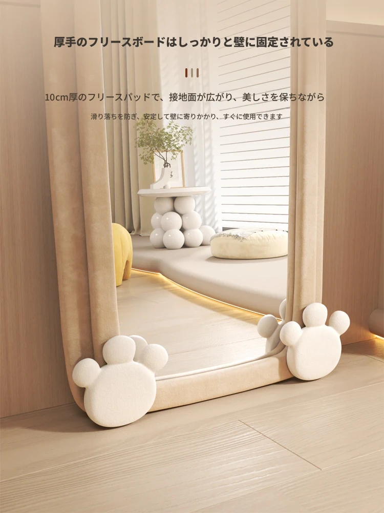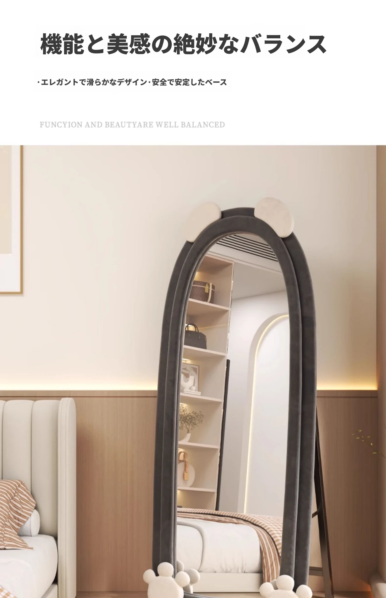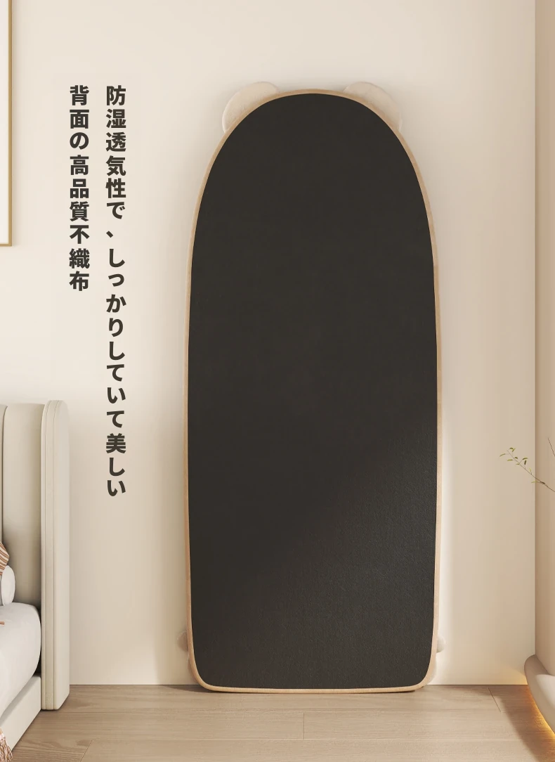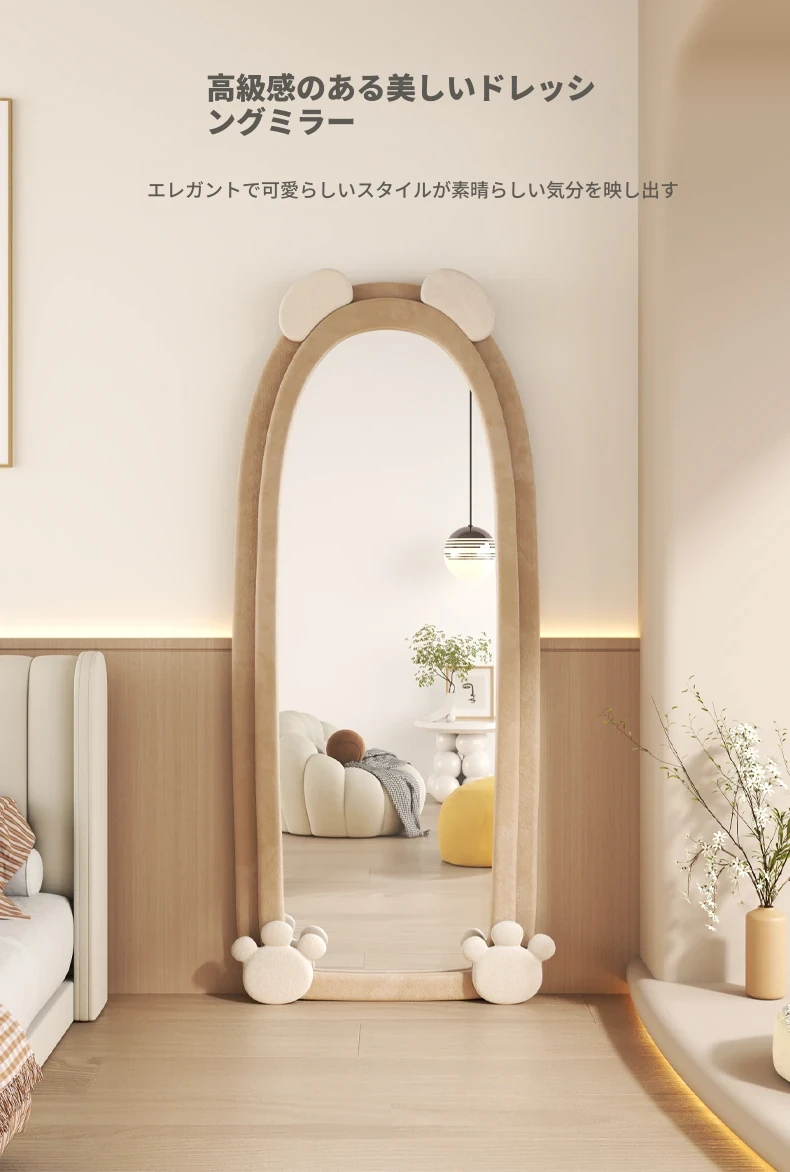 全身鏡 おしゃれなインテリアにぴったり!クマデザインの立て掛け式ミラー - 自宅や衣料品店に最適な試着用ミラー。インスタ映え間違いなしの個性的な形状で、毎日のコーディネートを楽しく演出します!