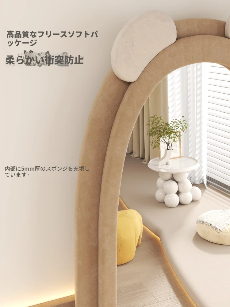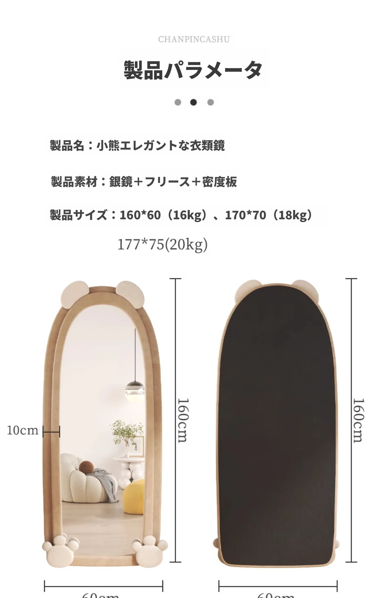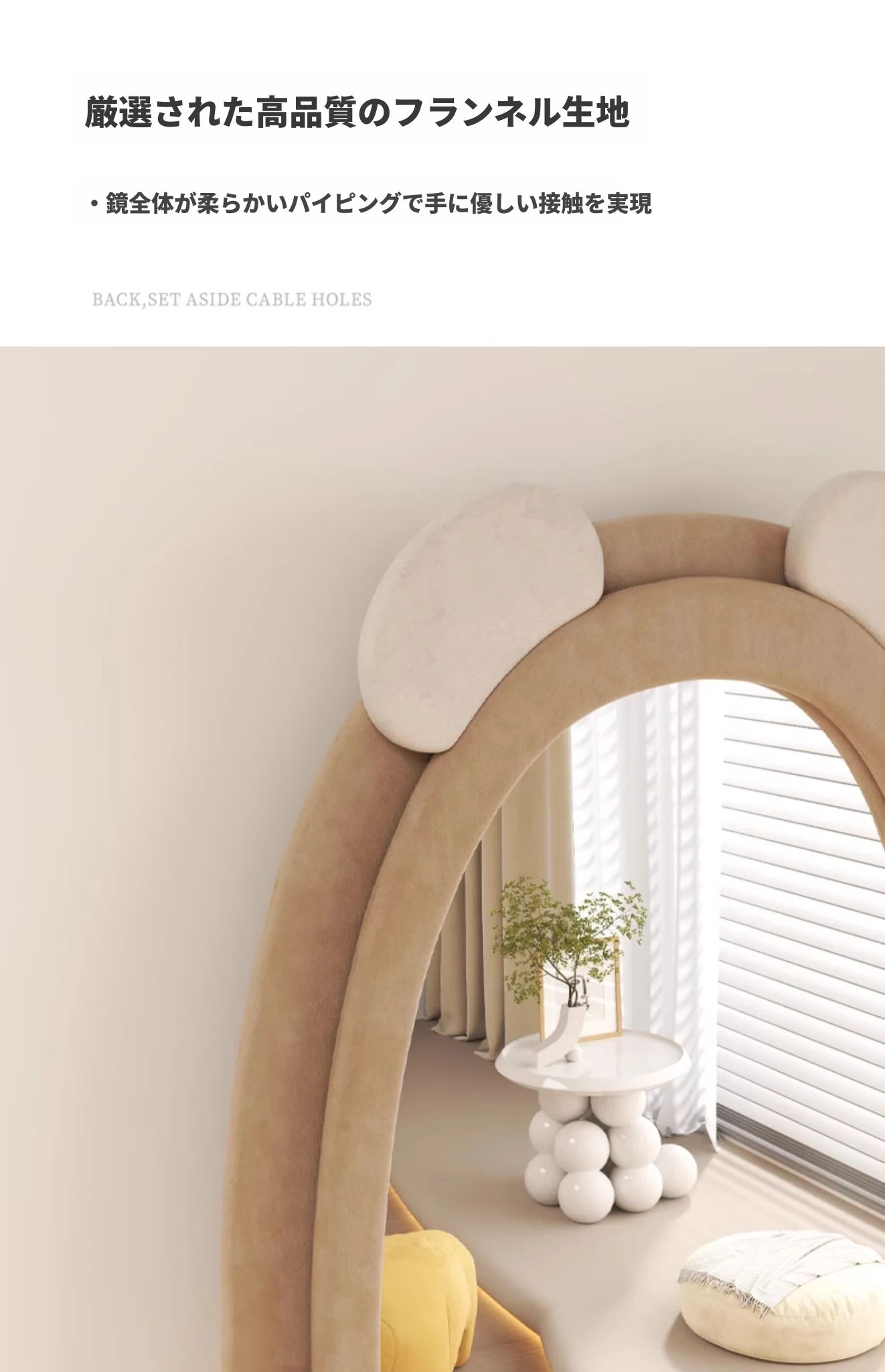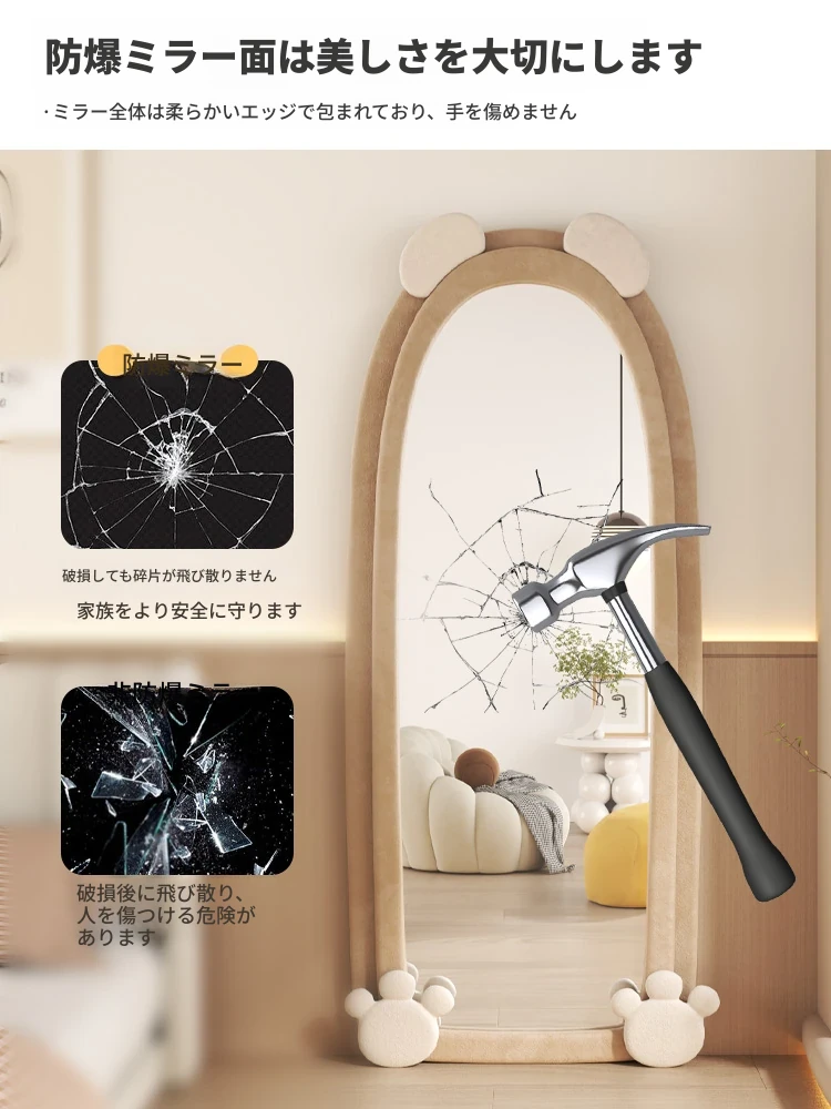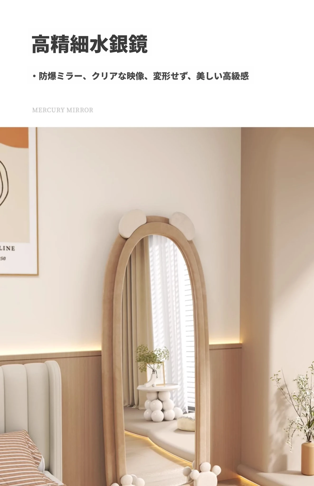 全身鏡 おしゃれなインテリアにぴったり!クマデザインの立て掛け式ミラー - 自宅や衣料品店に最適な試着用ミラー。インスタ映え間違いなしの個性的な形状で、毎日のコーディネートを楽しく演出します!