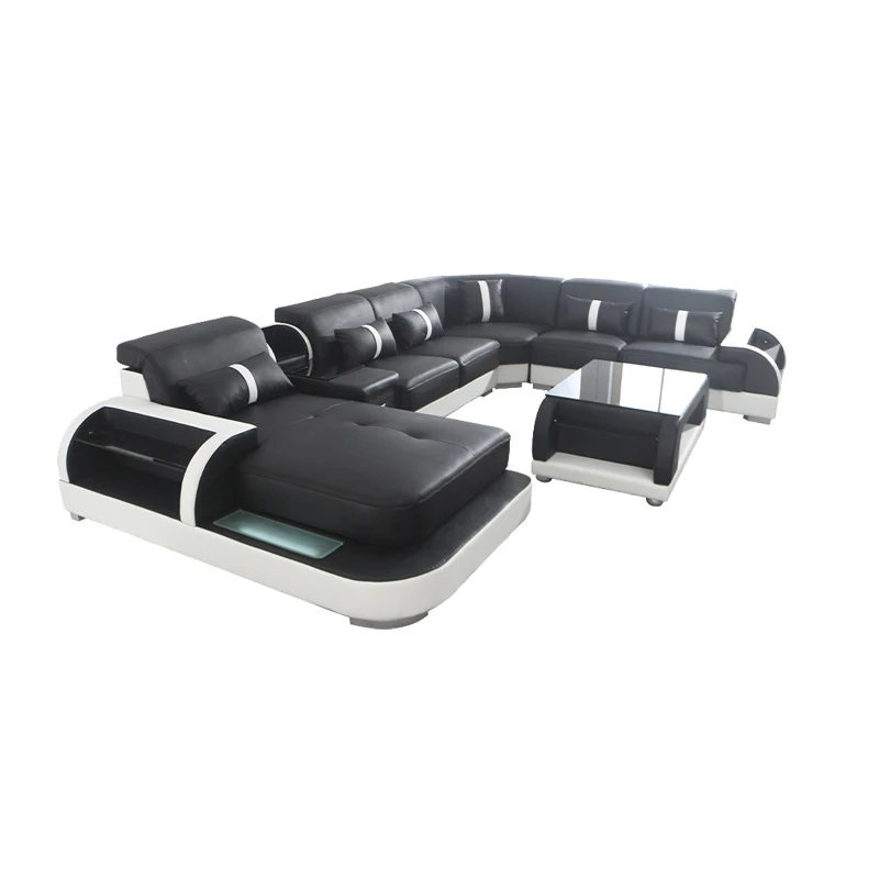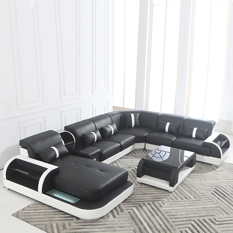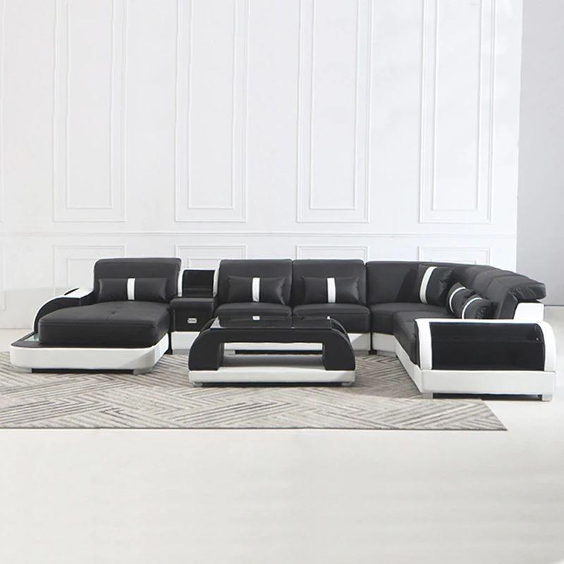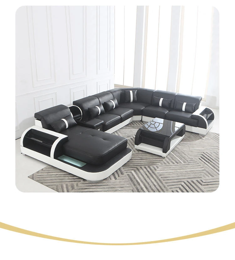 正規品 外貿スタイル モダンリビング U字型 本革ソファ セット収納付き おしゃれなリビング用 フォシャン製ソファ コンビネーションでお部屋をスタイリッシュに!