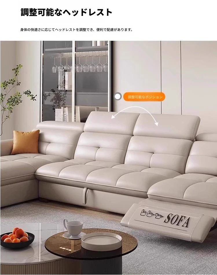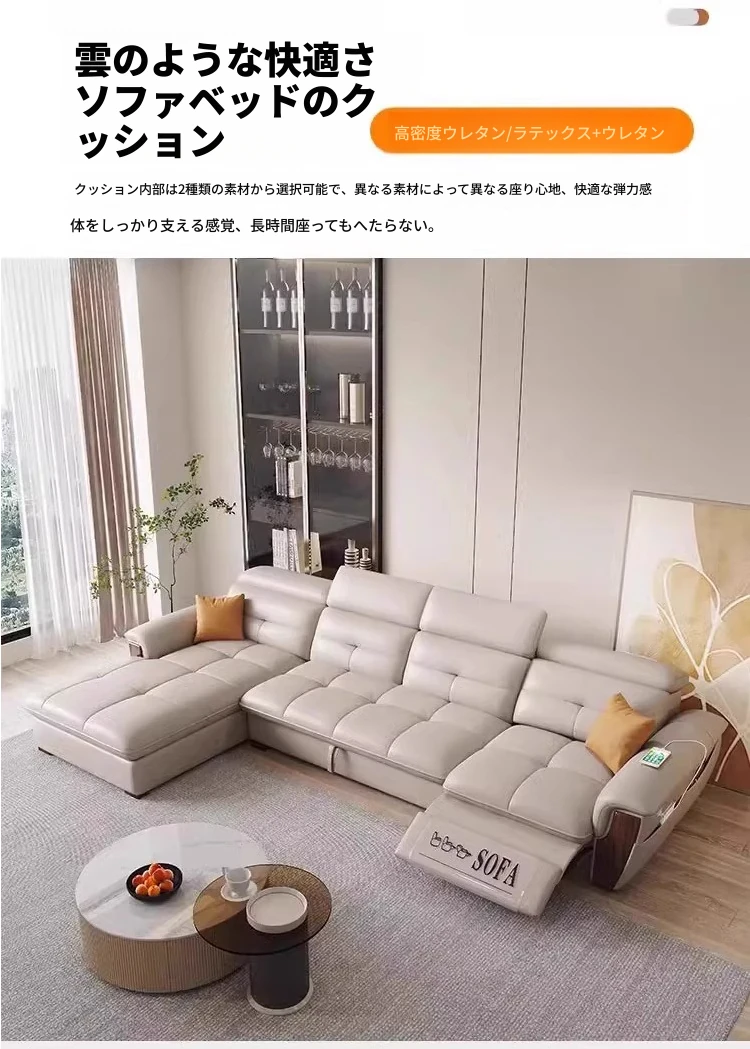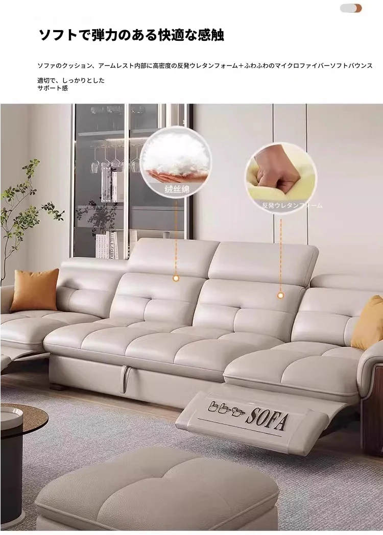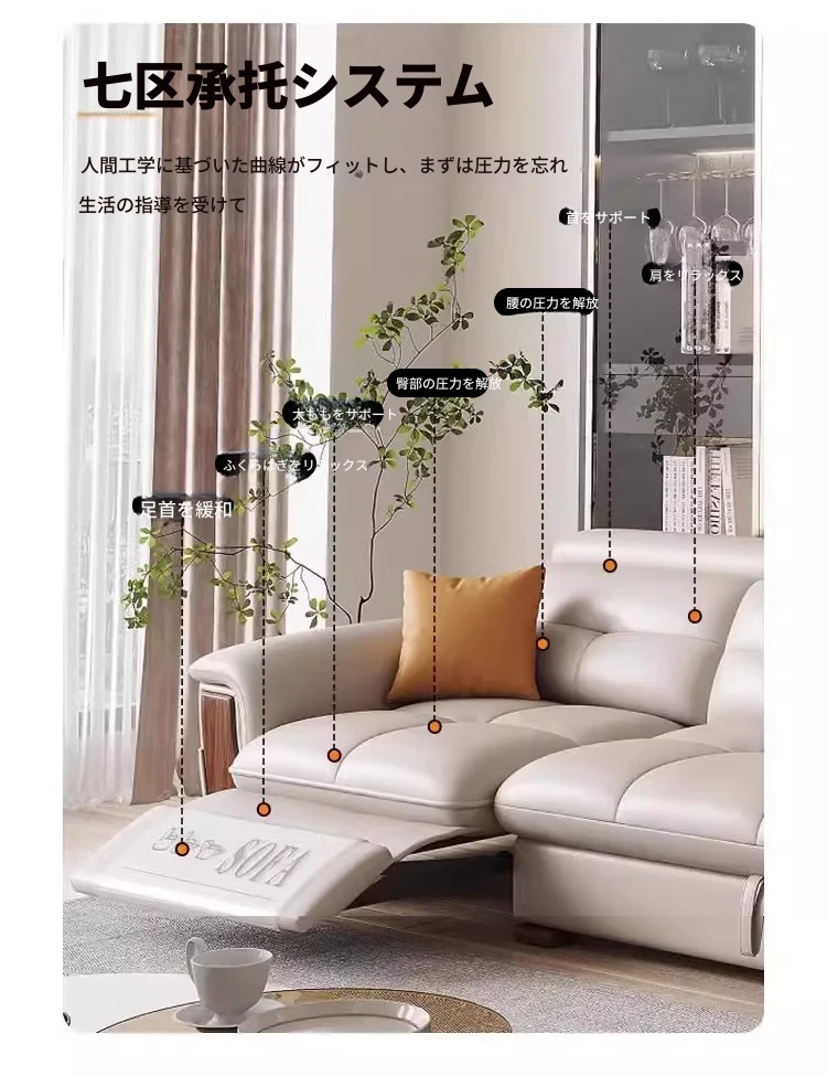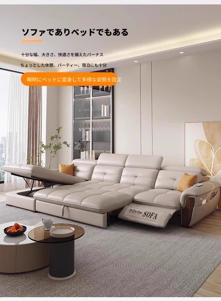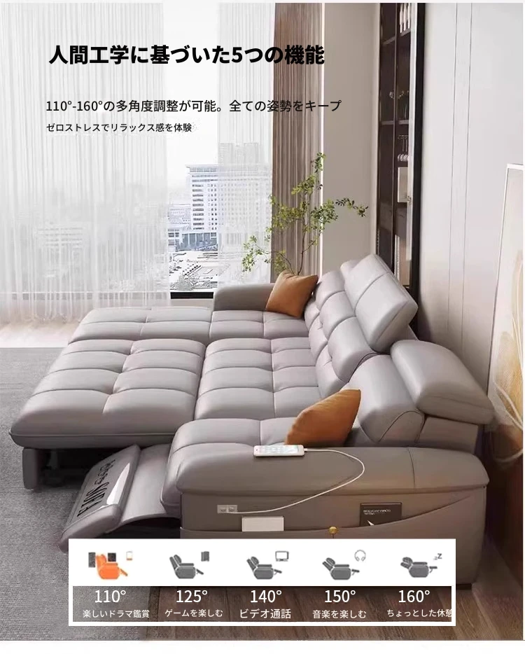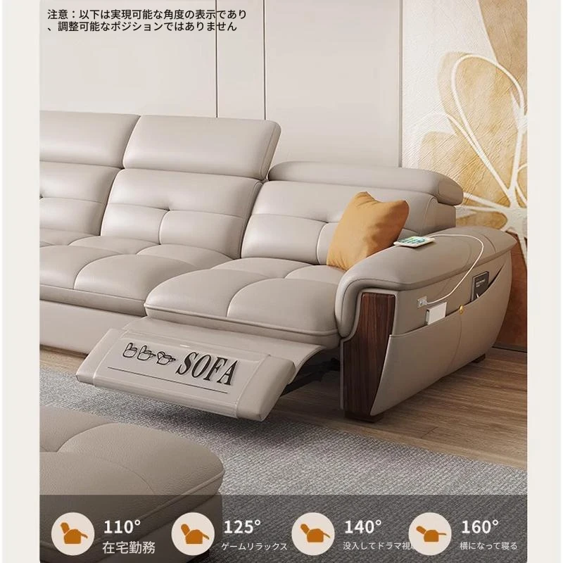 本革製の多機能電動伸縮ソファー - 調整可能な宇宙船デザイン、家庭用シアターに最適!リビングルームにぴったりのコンパクトな3人掛け。快適な座り心地で、映画鑑賞がもっと楽しくなる!