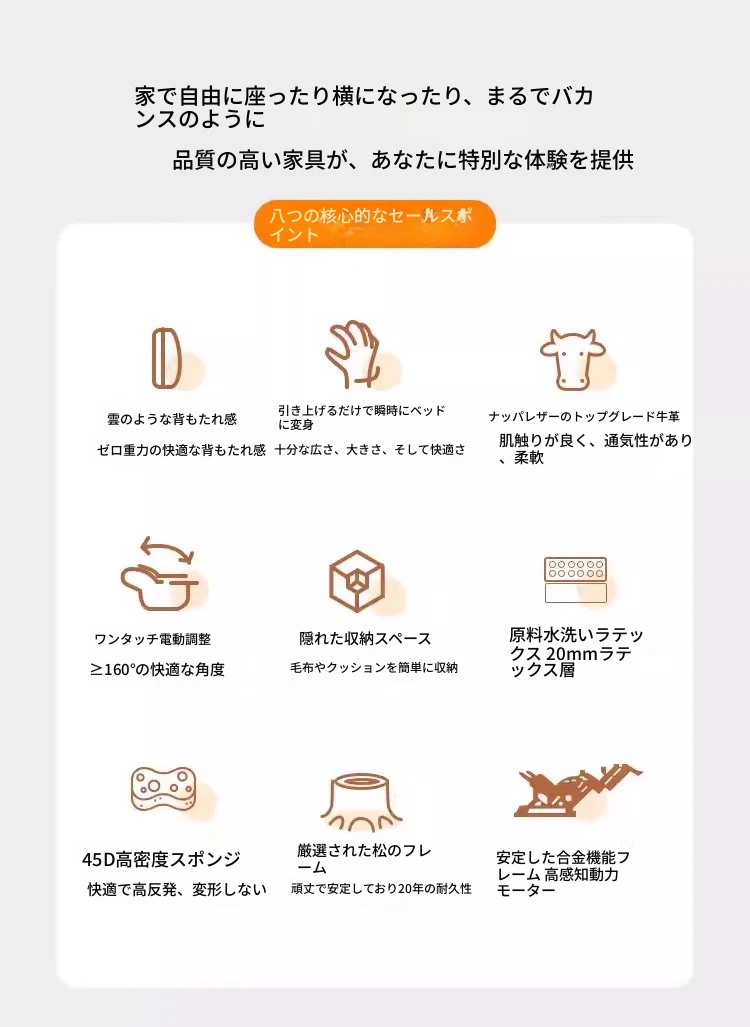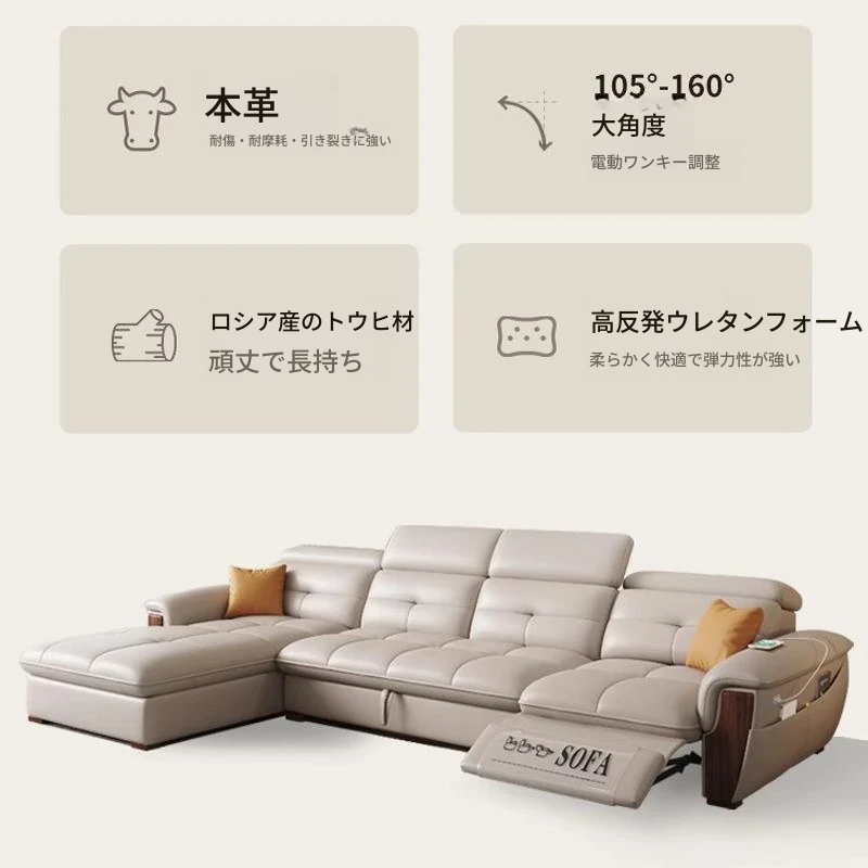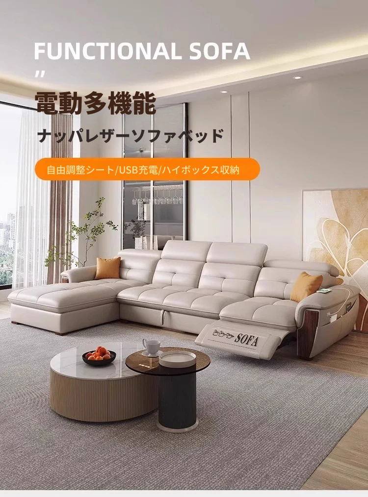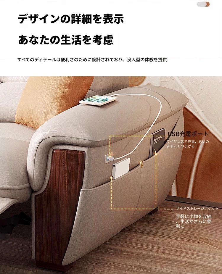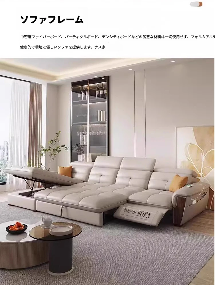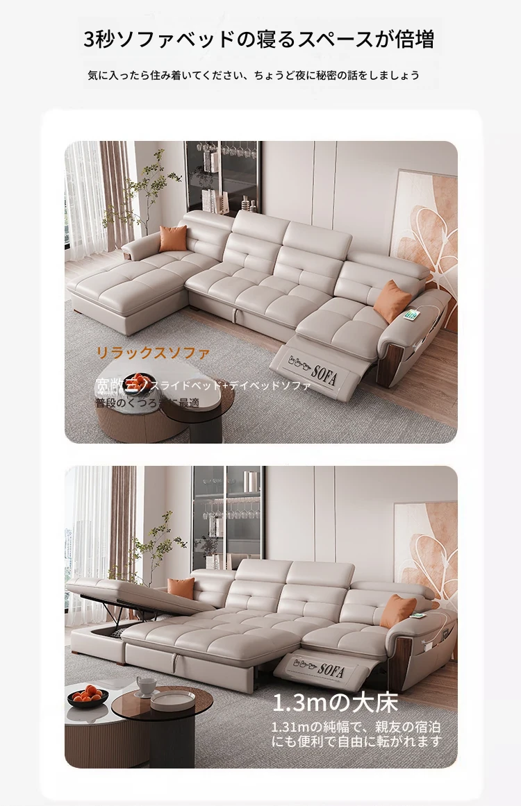 本革製の多機能電動伸縮ソファー - 調整可能な宇宙船デザイン、家庭用シアターに最適!リビングルームにぴったりのコンパクトな3人掛け。快適な座り心地で、映画鑑賞がもっと楽しくなる!