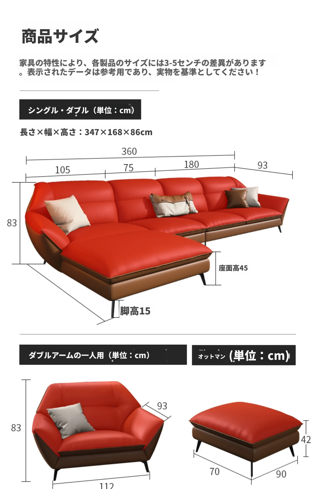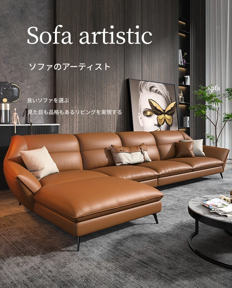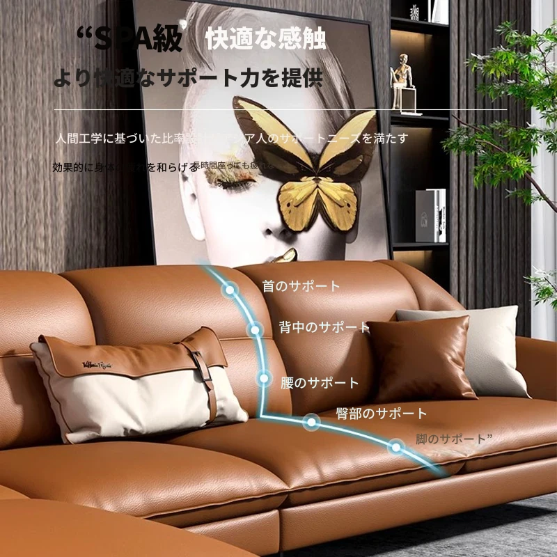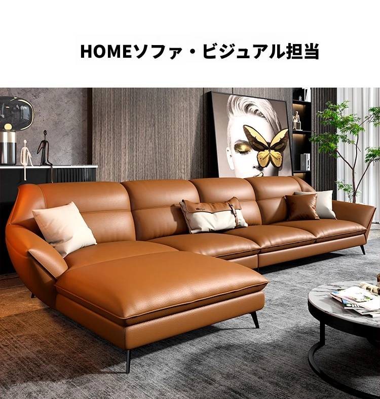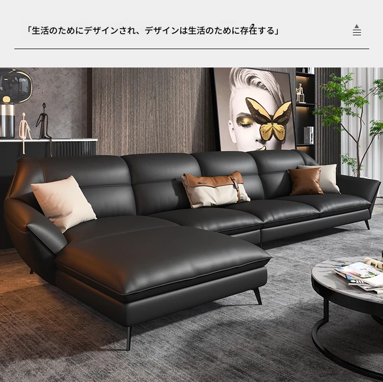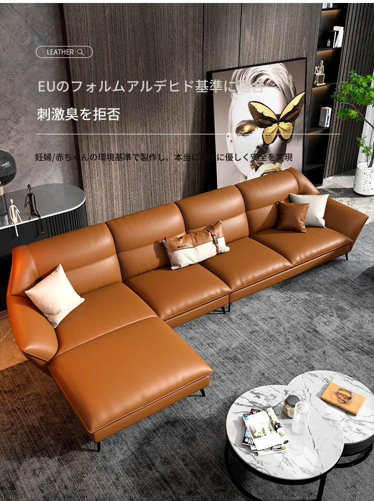 最高級本革使用!イタリアンミニマリズムの真髄、現代的なデザインのリビングルーム向け25年新作・貴族的なコーナーソファ。贅沢な頭層牛革で、あなたの空間に上質な美しさを加えます。