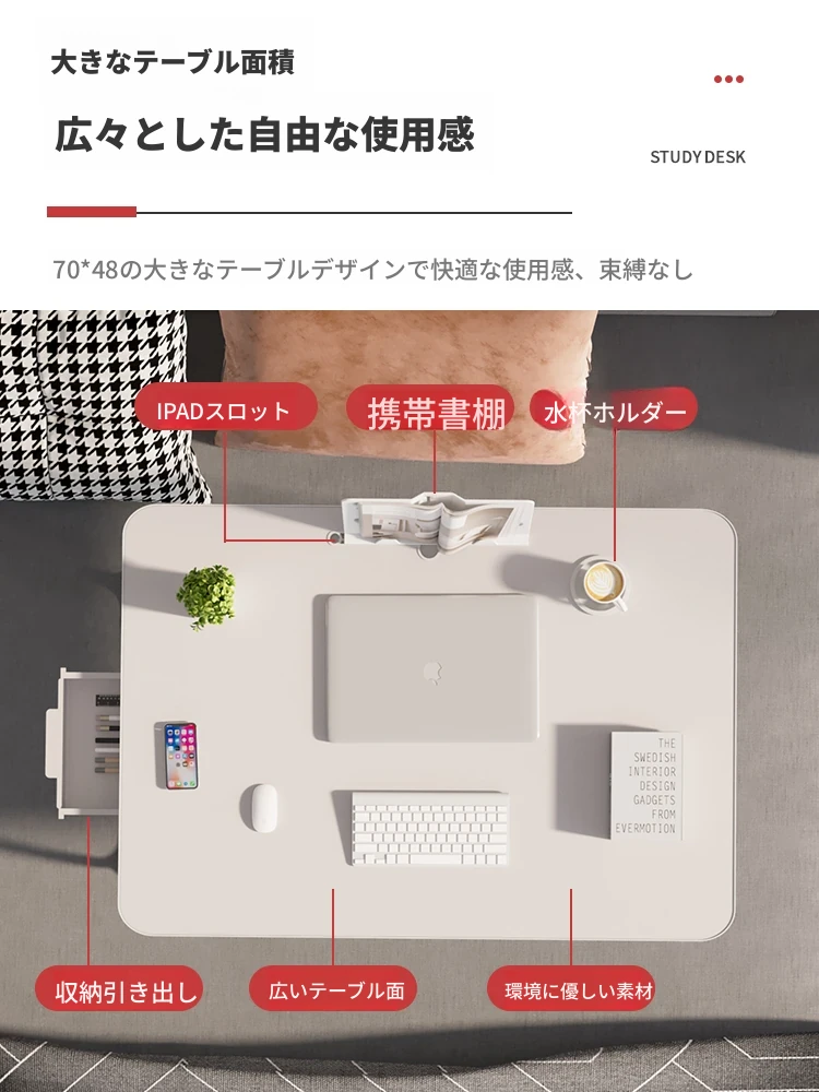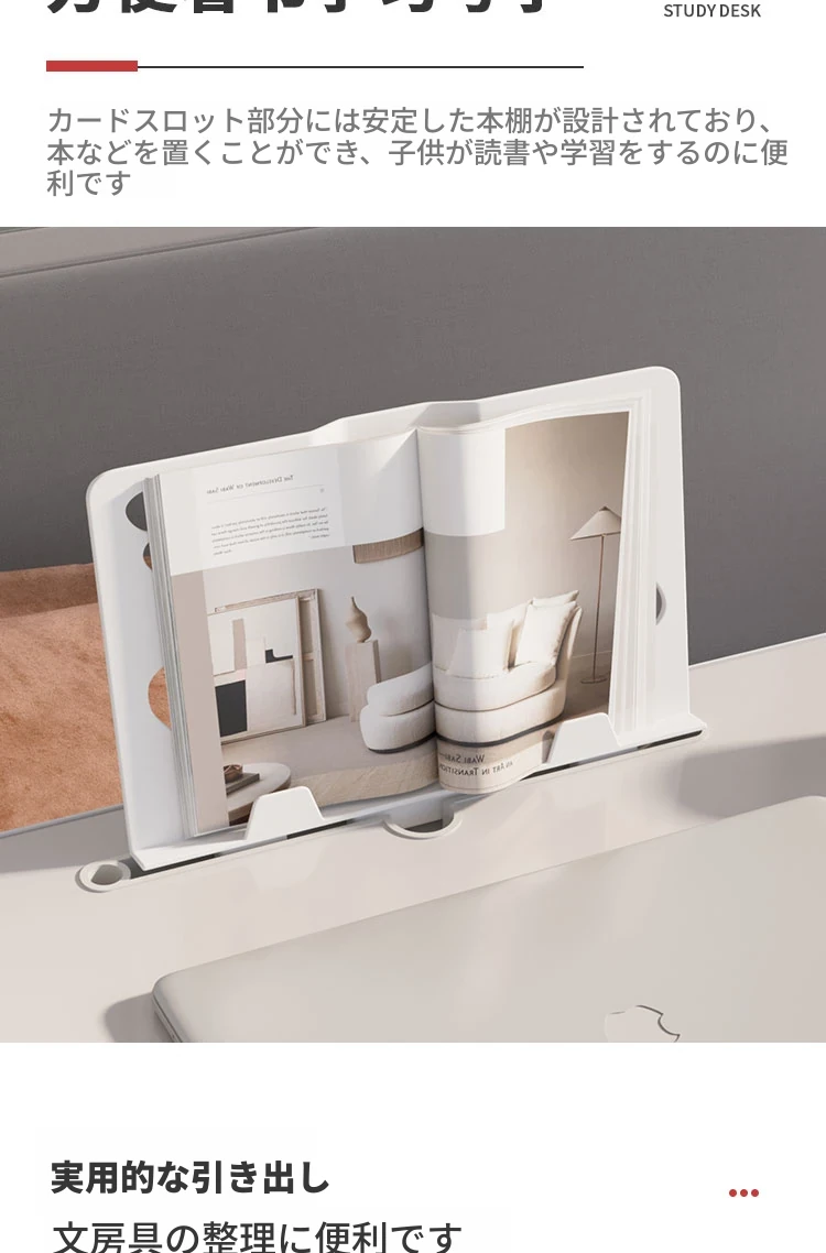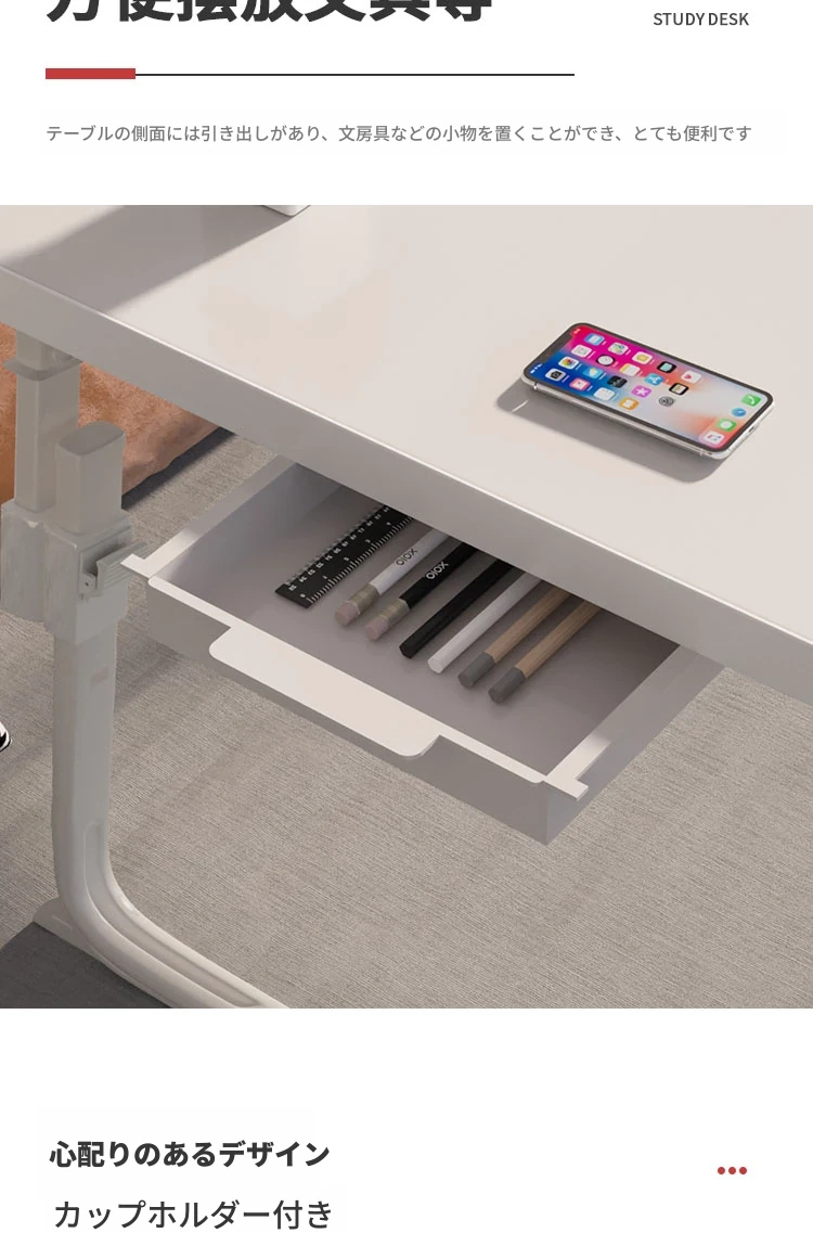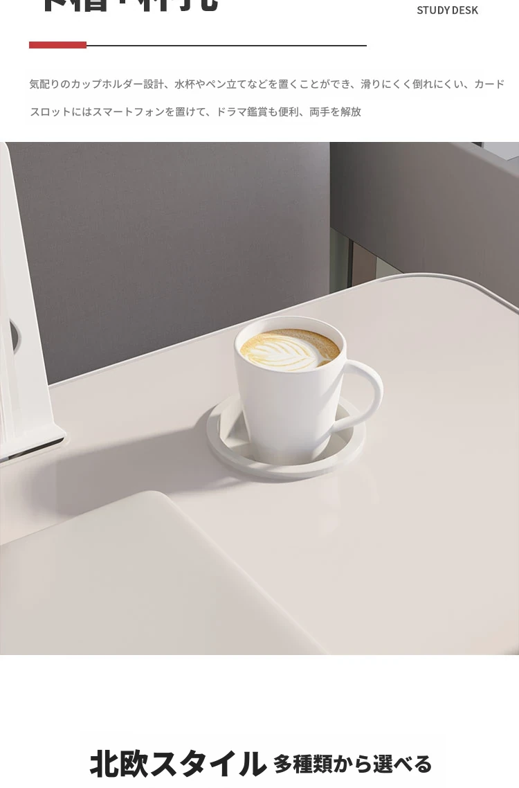 【大号】(三段昇降)パールホワイトのスロット付きカップホルダー+書棚+引き出し