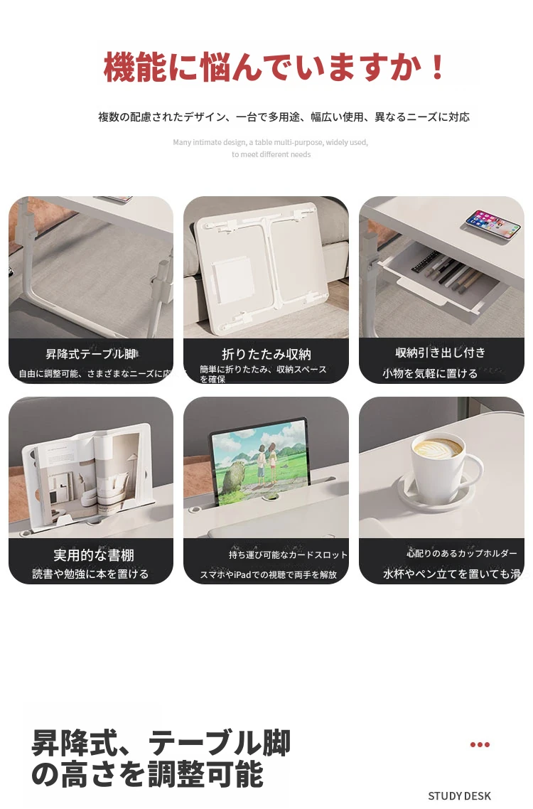 昇降式折りたたみデスク - 寮や小さなスペースに最適!学習やリモートワークにぴったりのコンパクトなデザイン。学生や家庭用に最適な窓辺の書斎デスク。快適な作業環境を手に入れましょう!
