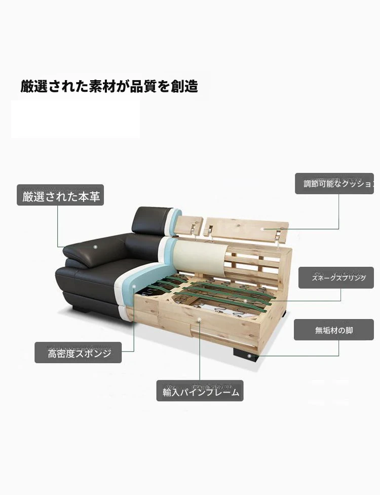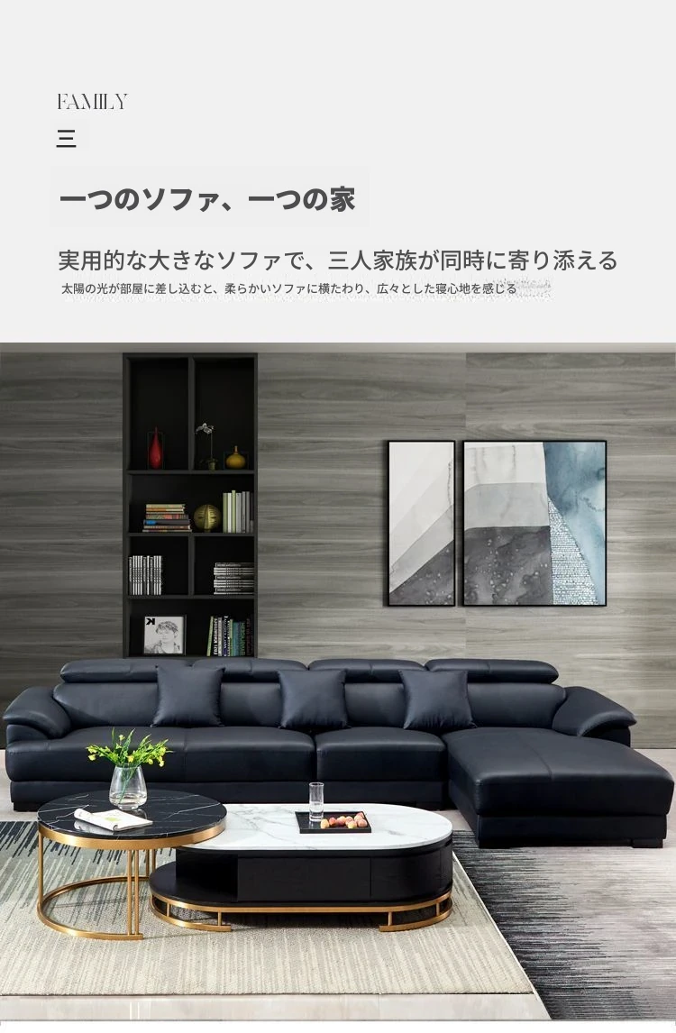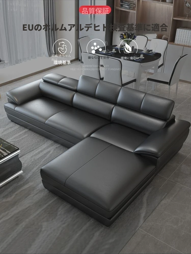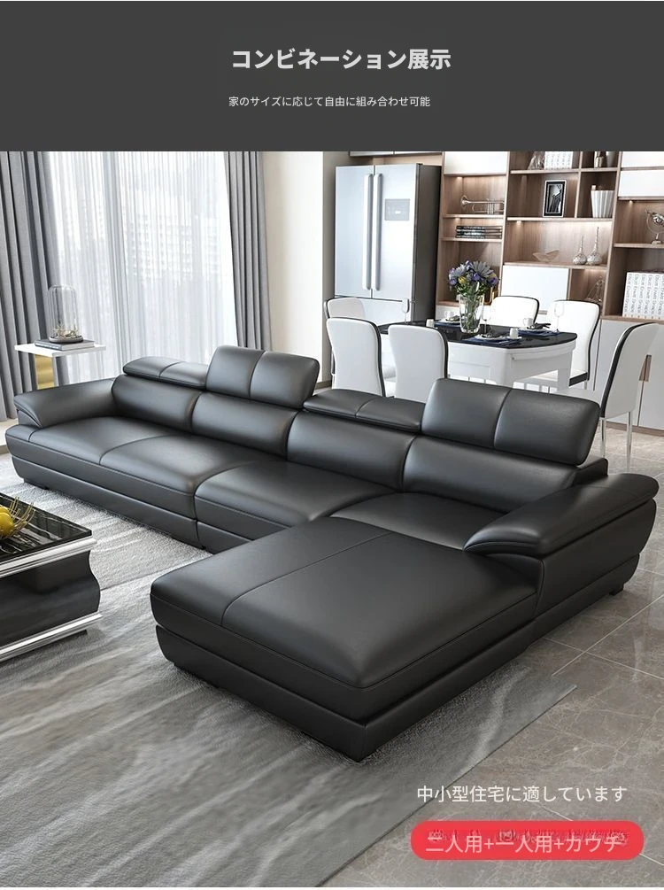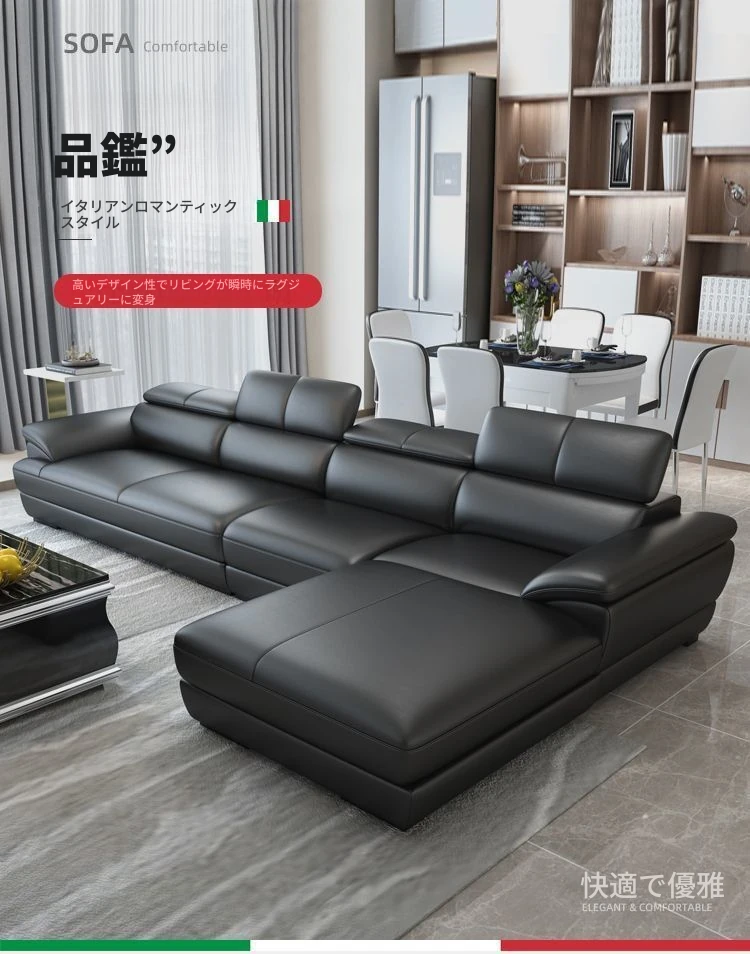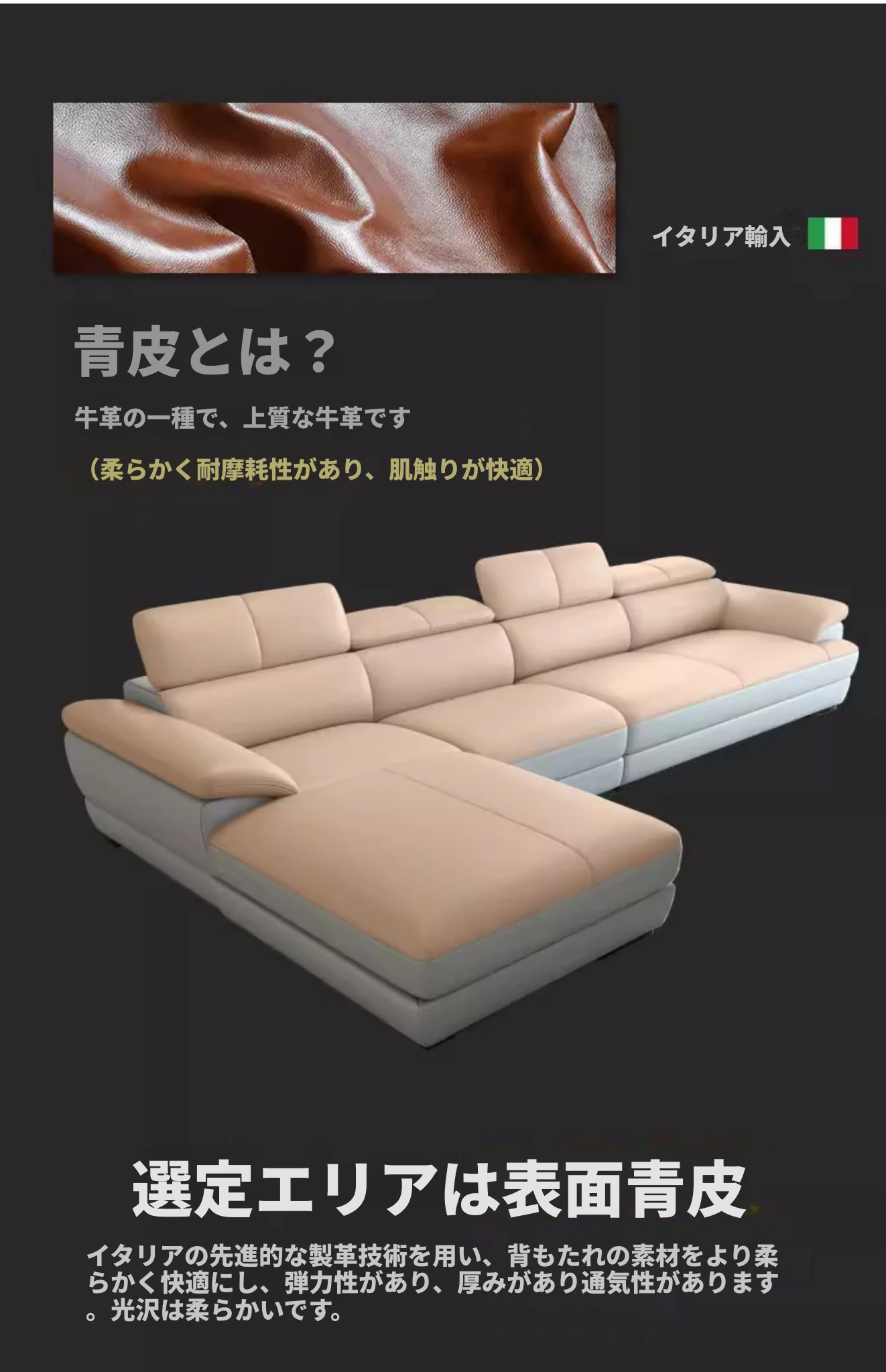 イタリアンミニマリズム本革ソファー - 高級牛革使用のモダンシンプルなリビングルーム用コーナーソファ、左右どちらでも配置可能な北欧スタイルのコンビネーション。快適さとスタイルを兼ね備えたあなたの理想の空間を演出します!