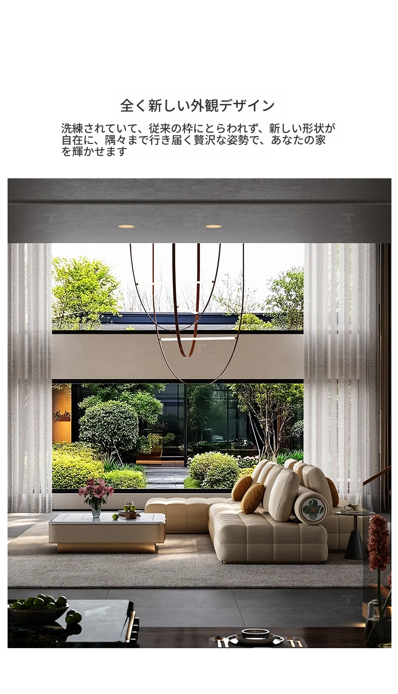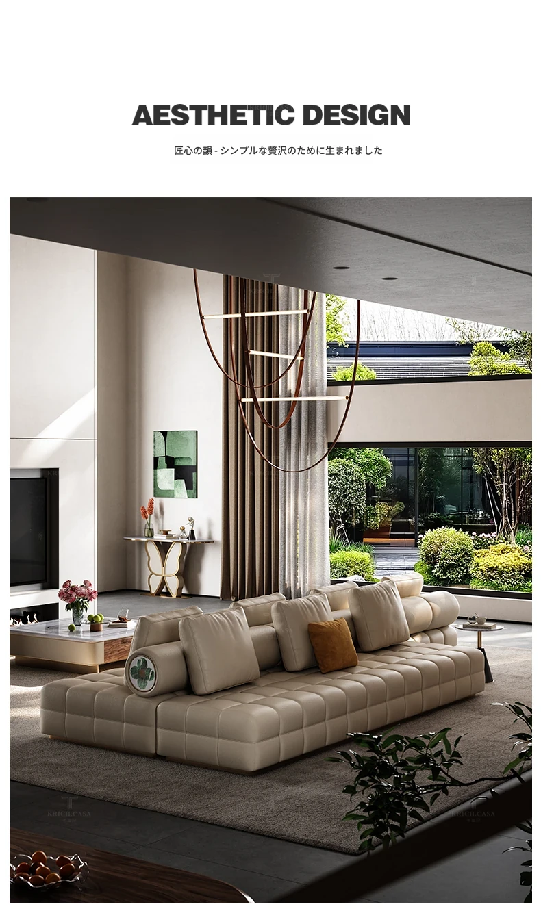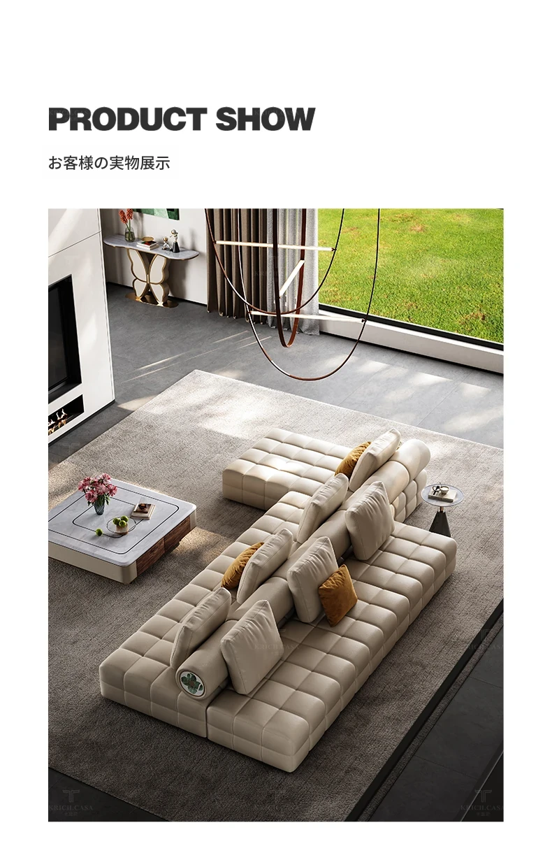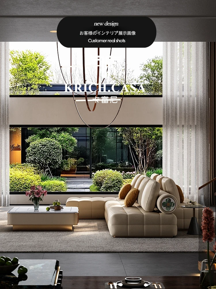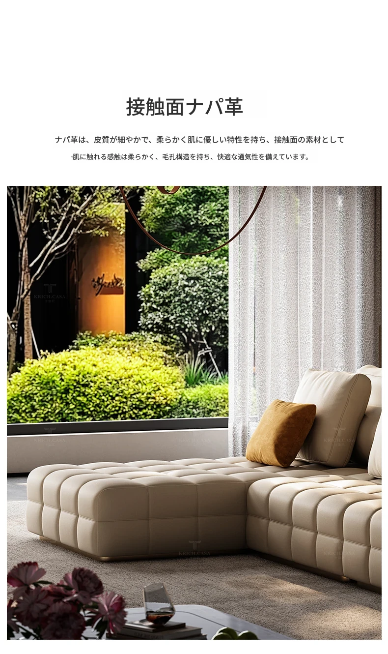 カフニ軽奢フレンチスタイル本革ソファー - 別荘にも最適!移動式バックレスト、直線配置&調節可能な両面組み合わせソファーで、理想のリビング空間を演出します。