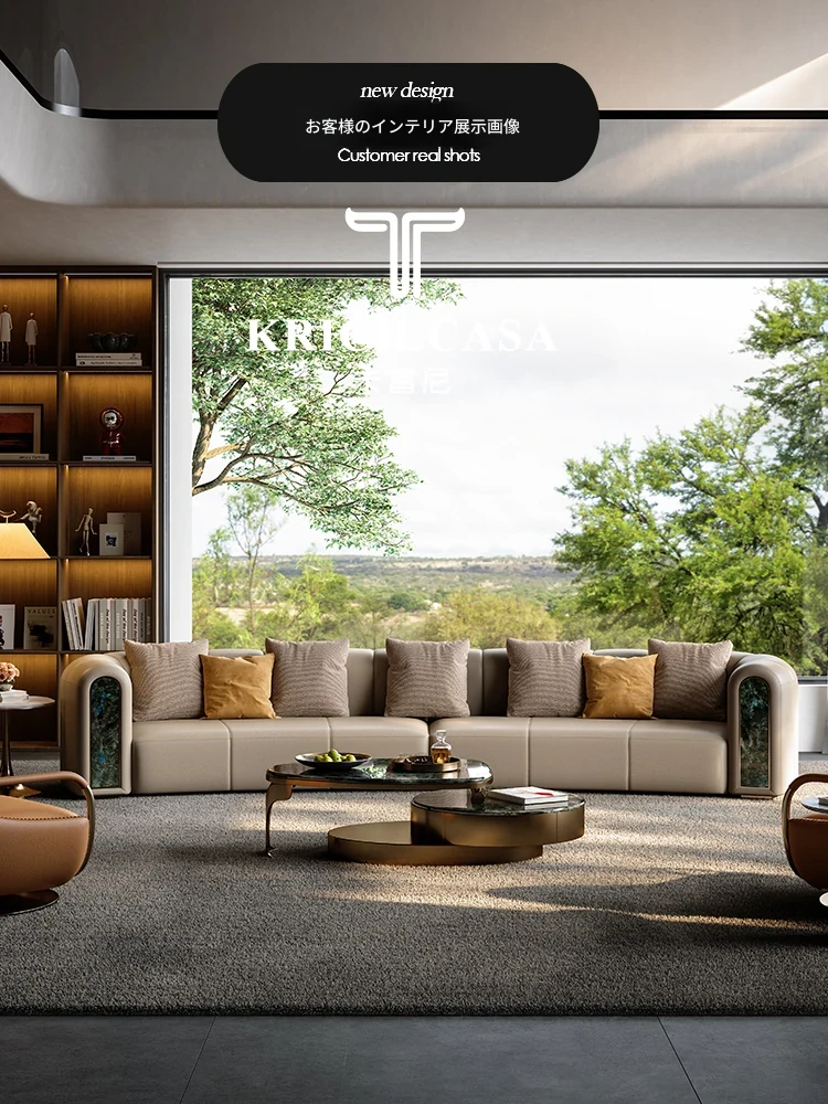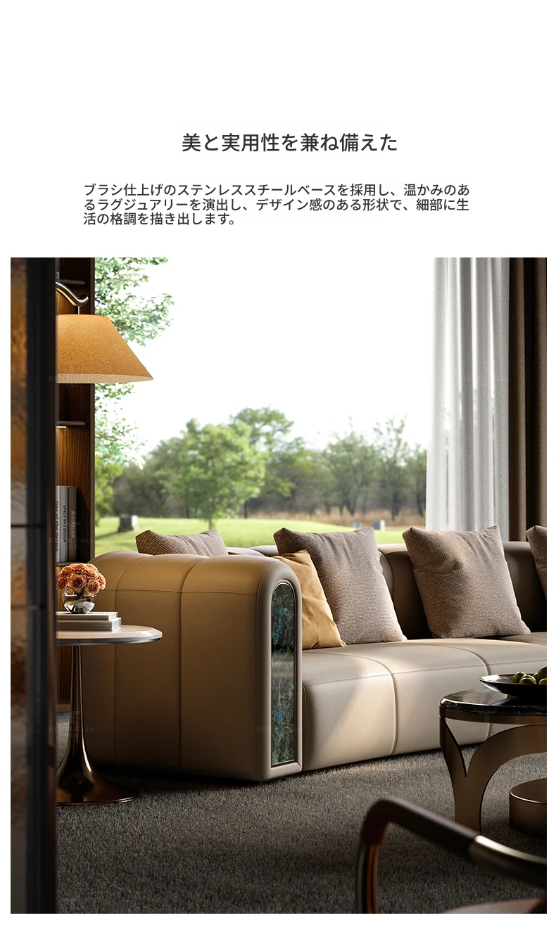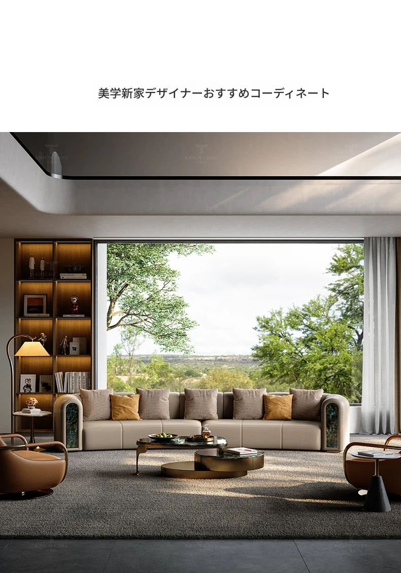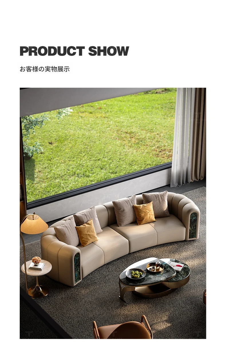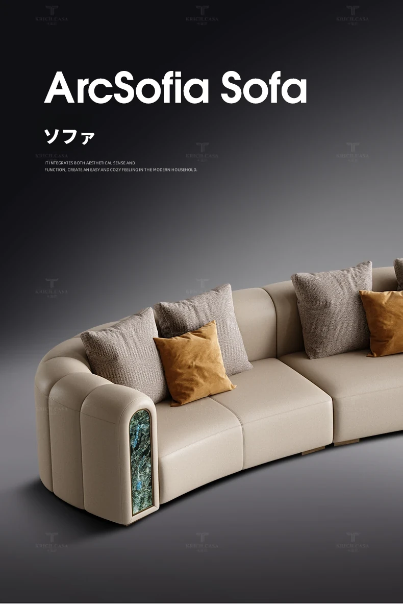 カフニ高級フランス風ライトラグジュアリーソファ|別荘・リビングにぴったりのデザイナーオリジナル|本革・一級牛皮使用の美しいアーチ型ソファで、洗練された空間を演出します。