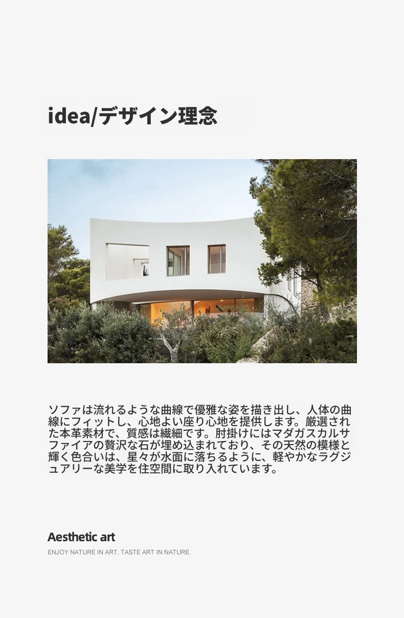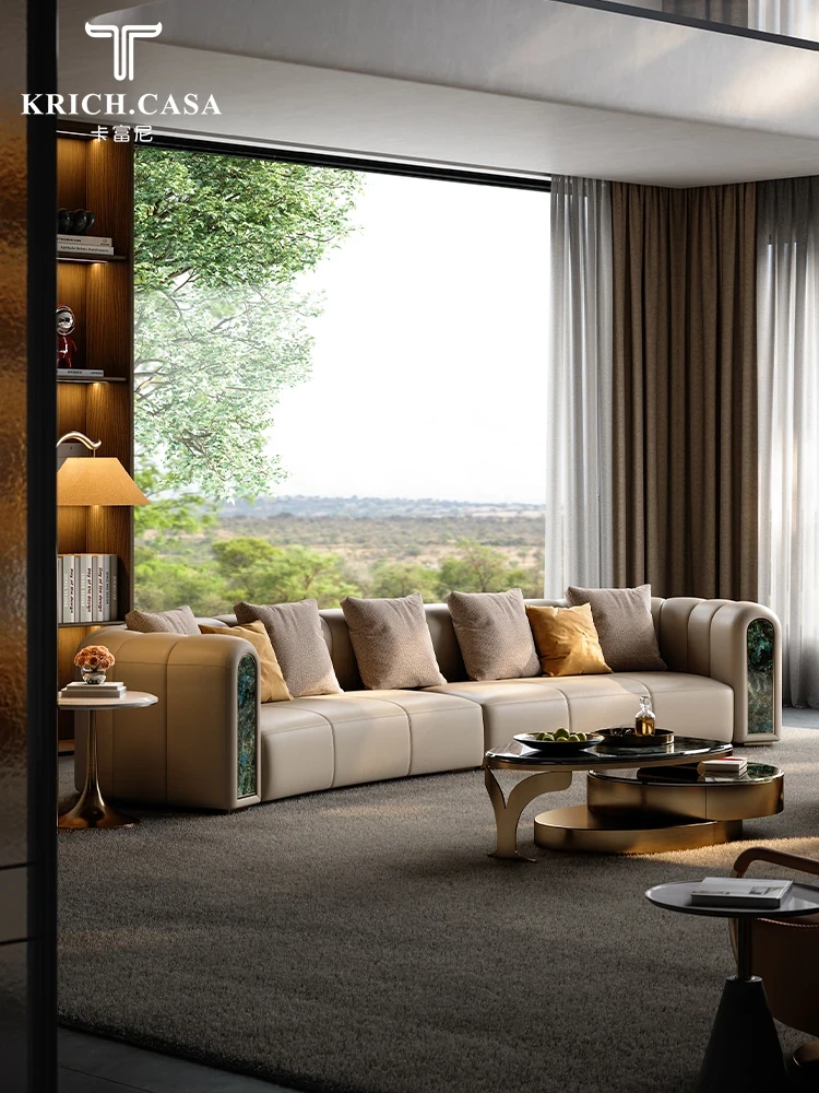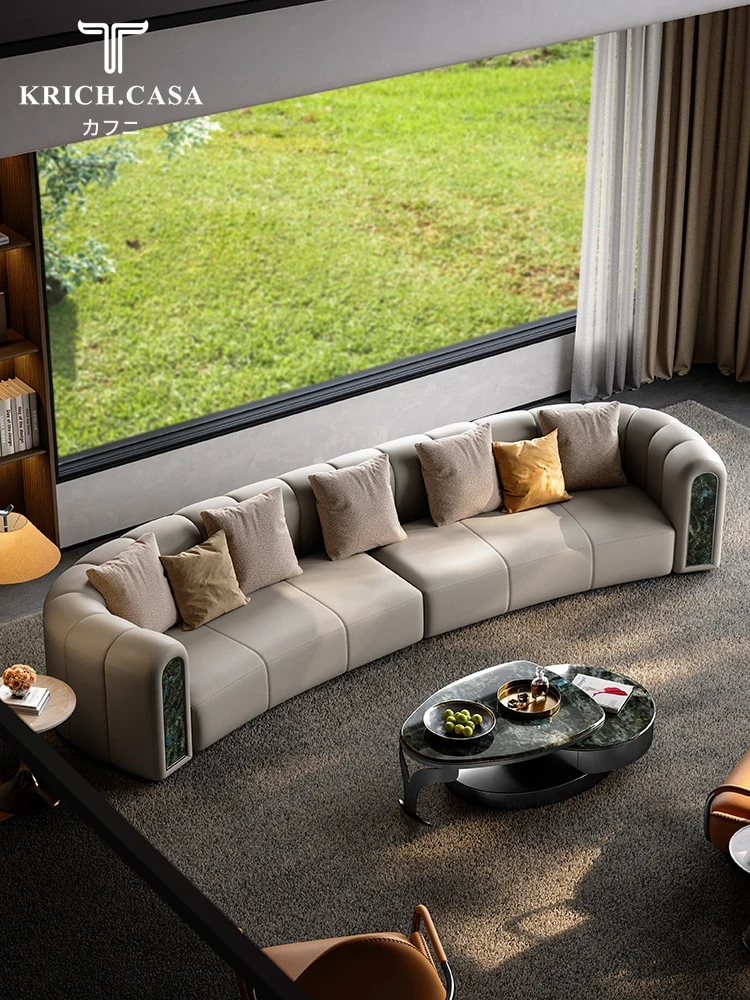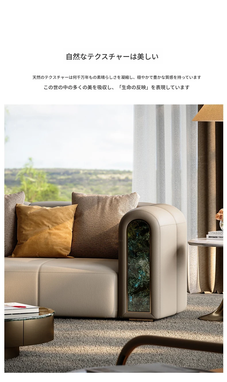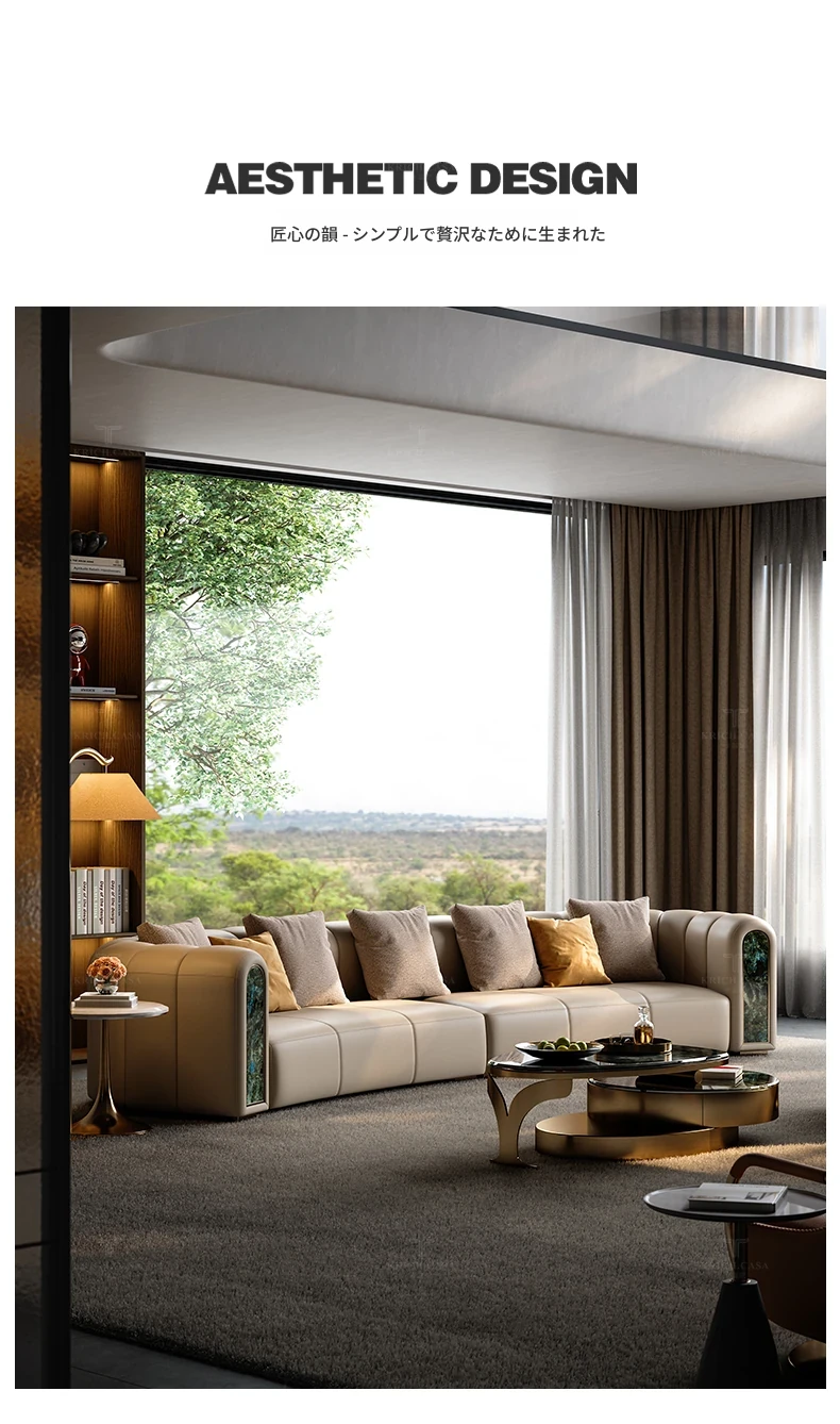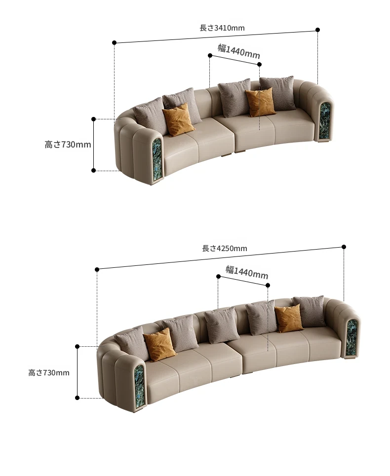 カフニ高級フランス風ライトラグジュアリーソファ|別荘・リビングにぴったりのデザイナーオリジナル|本革・一級牛皮使用の美しいアーチ型ソファで、洗練された空間を演出します。