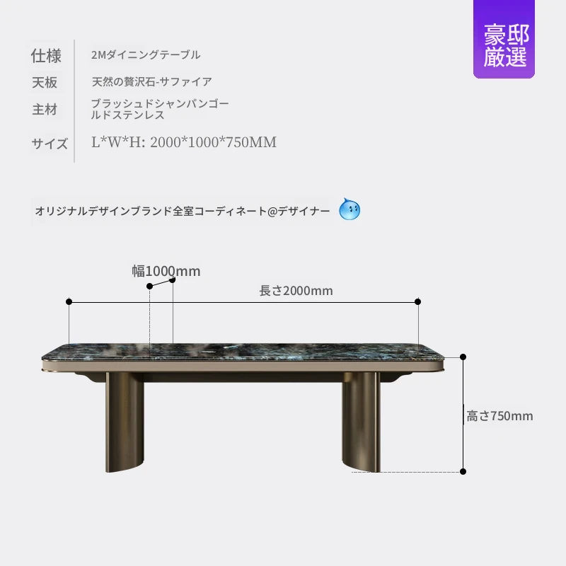 【天然ラグジュアリー石サファイア】2.00mダイニングテーブル(シャンパンゴールド)