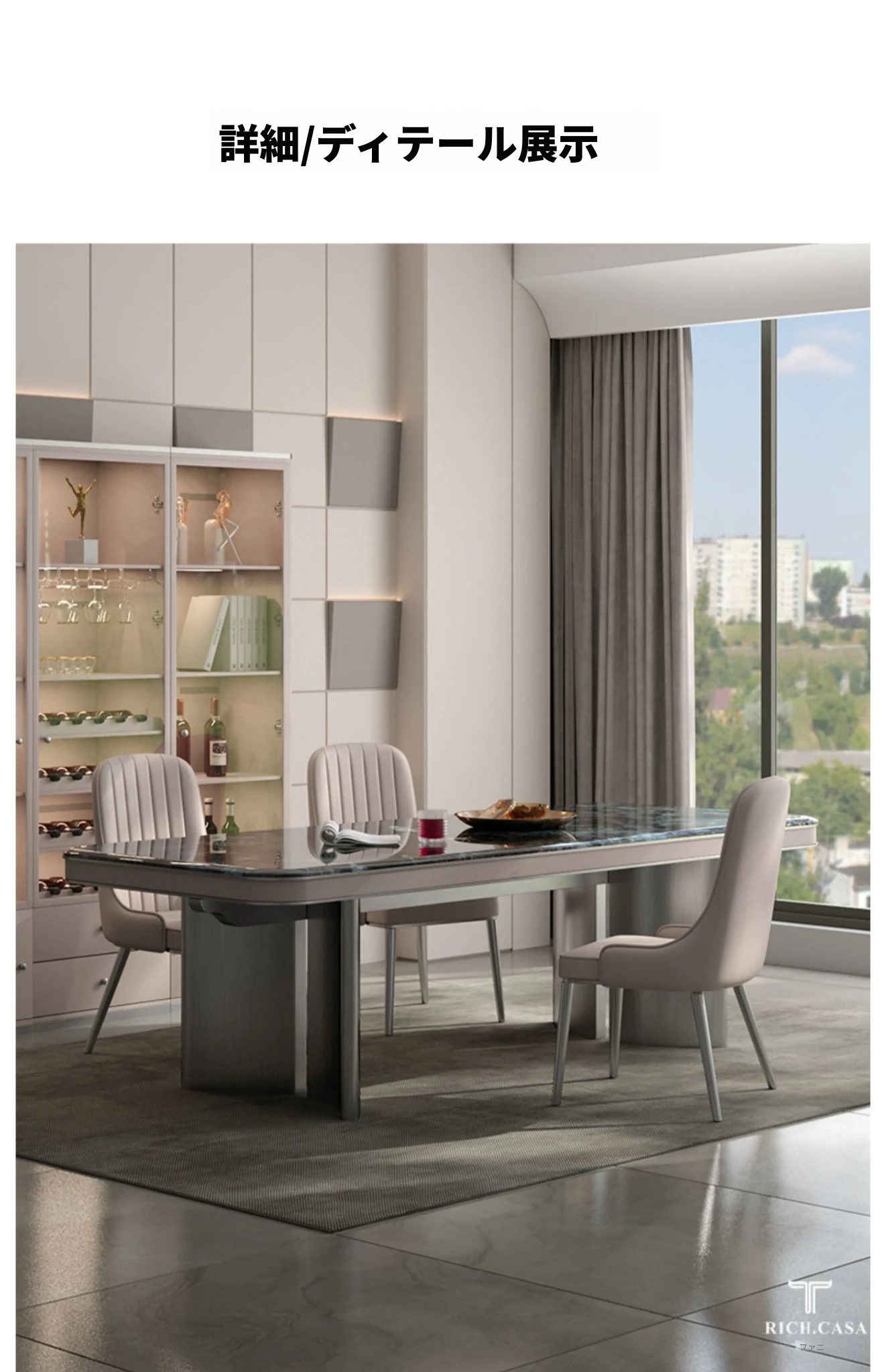 カフニのラグジュアリー天然石ダイニングテーブル - 高級別荘向けのサファイアカラー、イタリアンスタイルの長方形大理石テーブル。洗練されたデザインで、特別な食事のひとときを演出します。