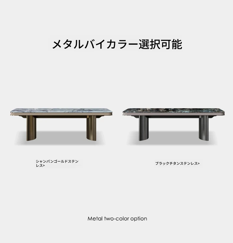 【天然大理石香雪梅】2.20mダイニングテーブル(シャンパンゴールド)