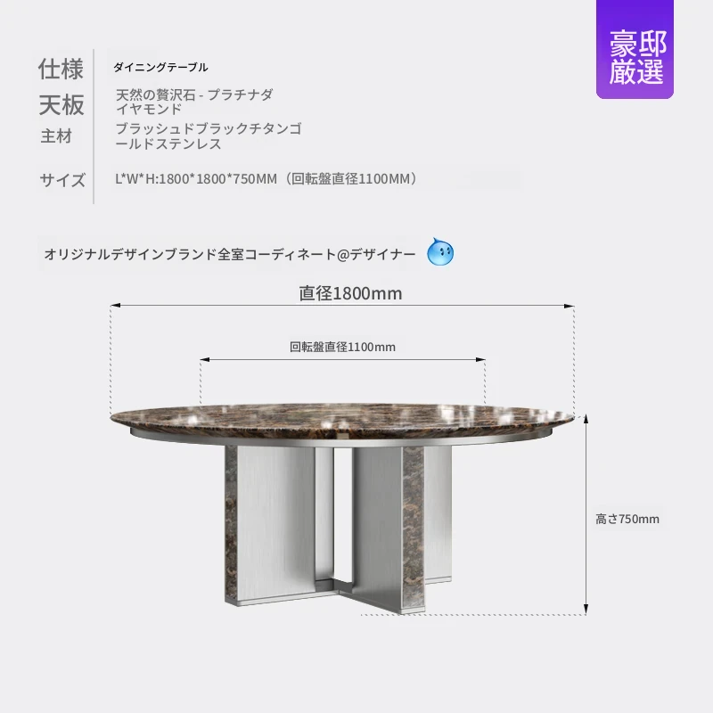 【プラチナダイヤモンド天然ラグジュアリー石】1.80メートルダイニングテーブル(ブラックチタンゴールド)