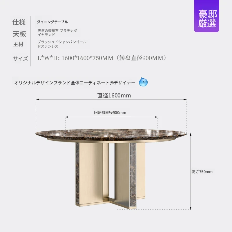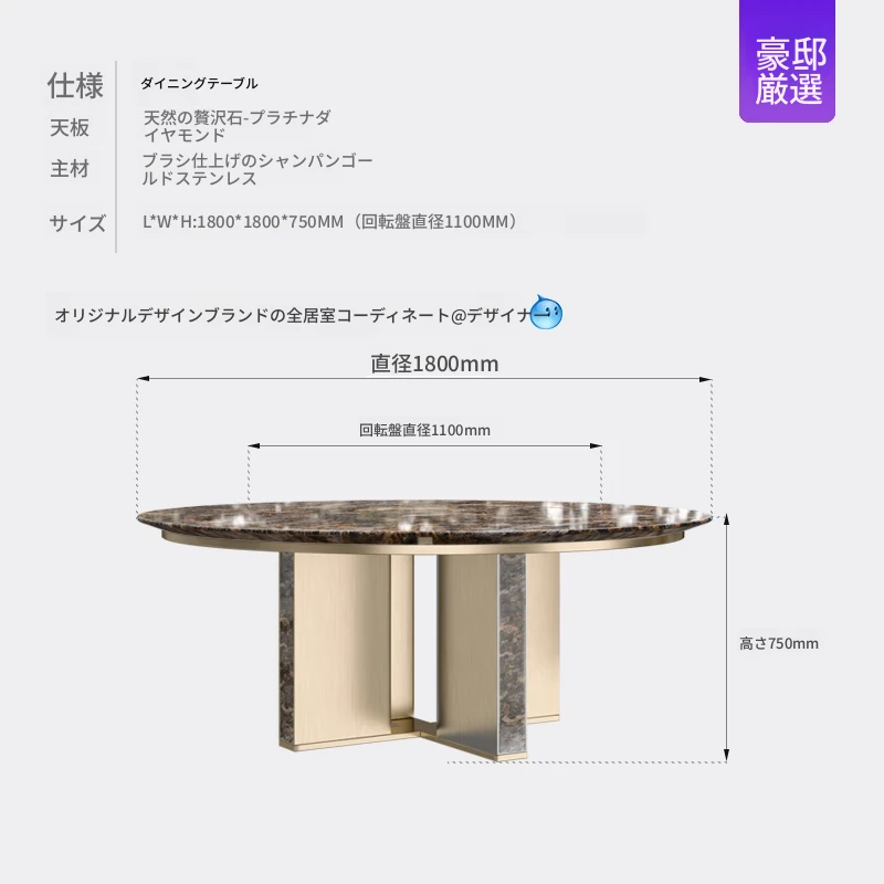 【プラチナダイヤモンド天然ラグジュアリー石】1.80メートルダイニングテーブル(シャンパンゴールド)