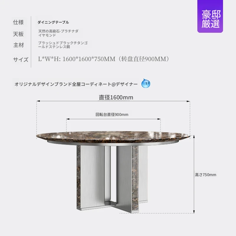 【プラチナダイヤモンド天然ラグジュアリー石】1.60メートルダイニングテーブル(ブラックチタンゴールド)