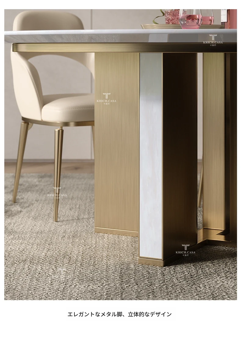 【カリアイスジャスパー天然大理石】1.80メートルダイニングテーブル(シャンパンゴールド)