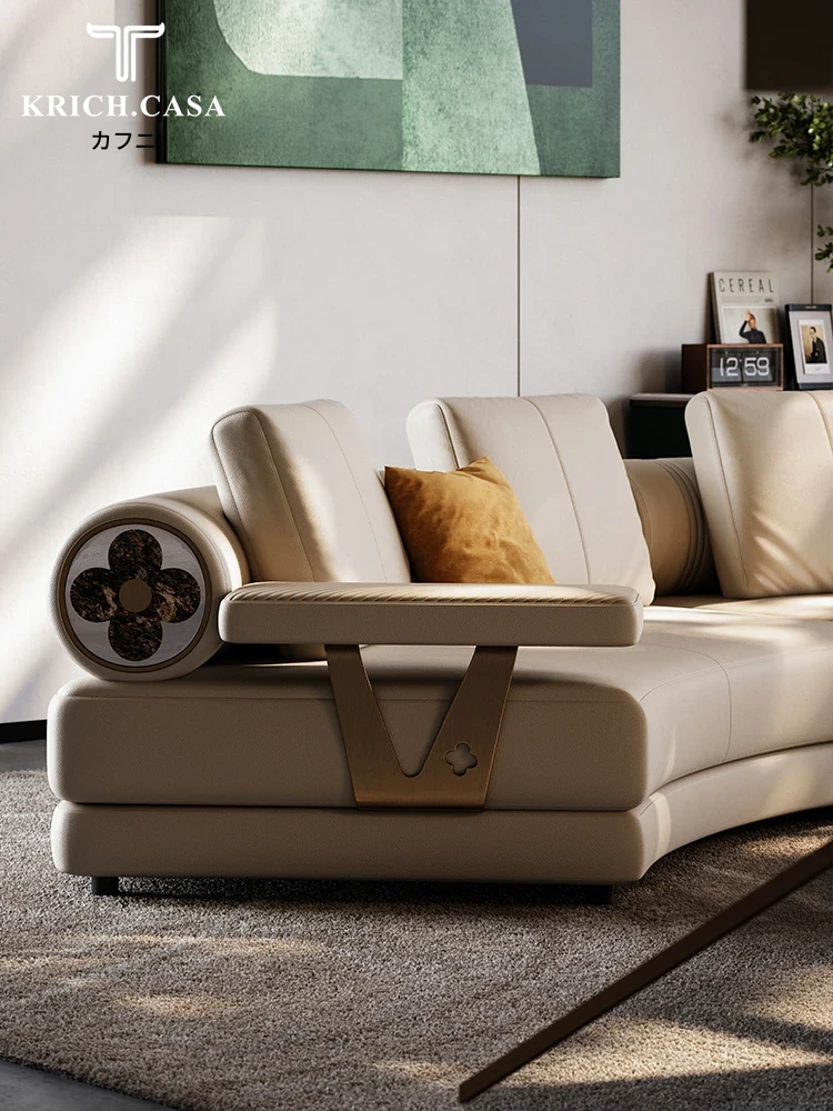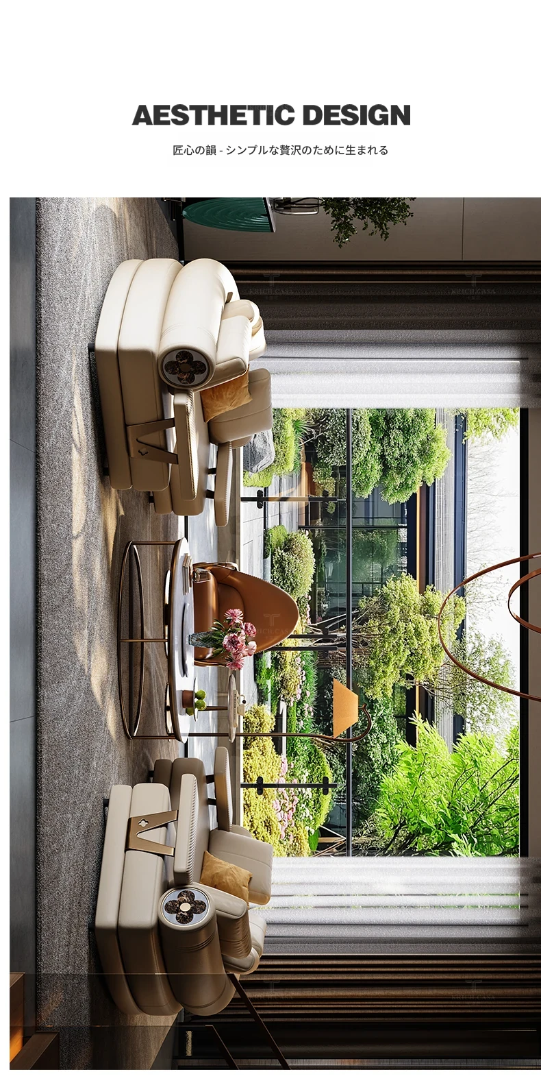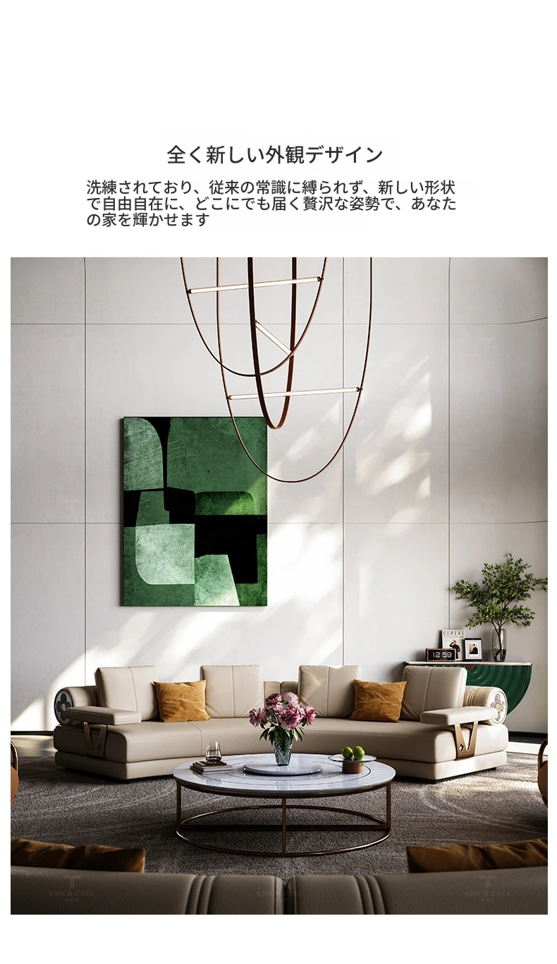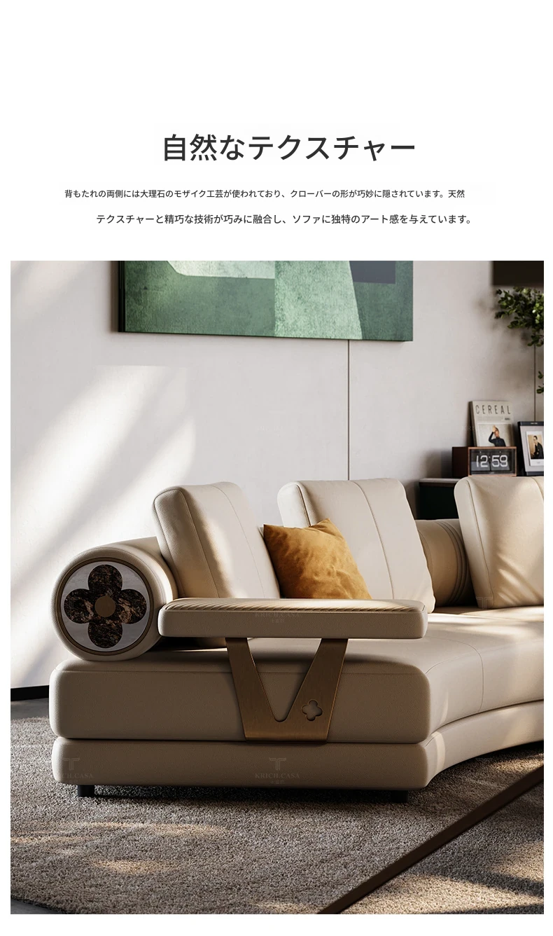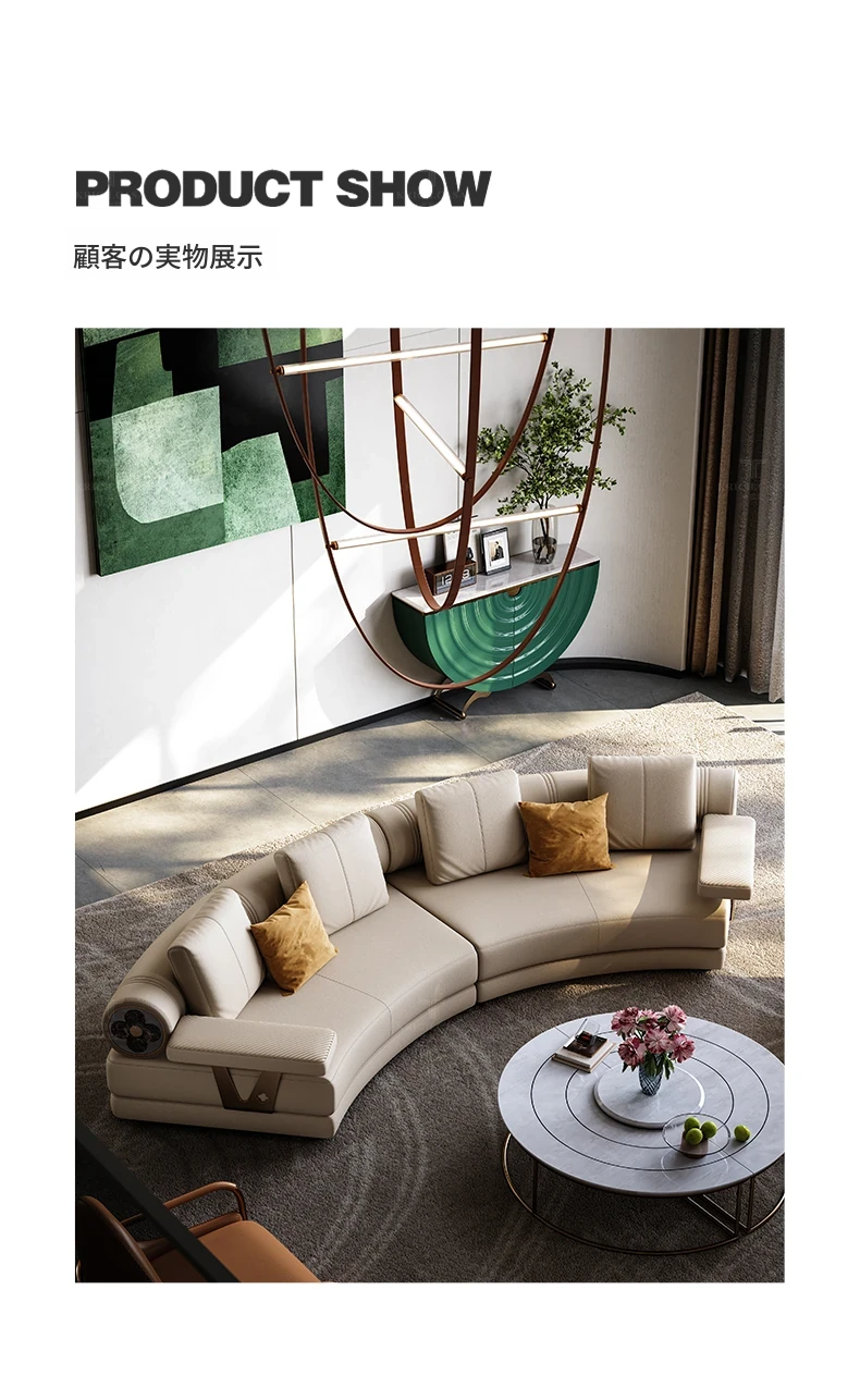 カフニオリジナルデザイン高級フレンチレザーソファ|ラグジュアリーなリビングに最適な豪邸・ヴィラ・広々とした空間にぴったりの曲線ソファ!