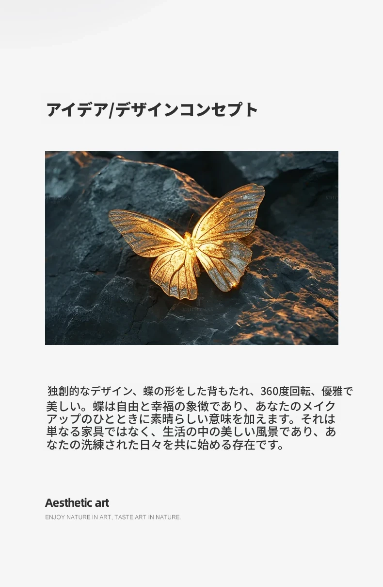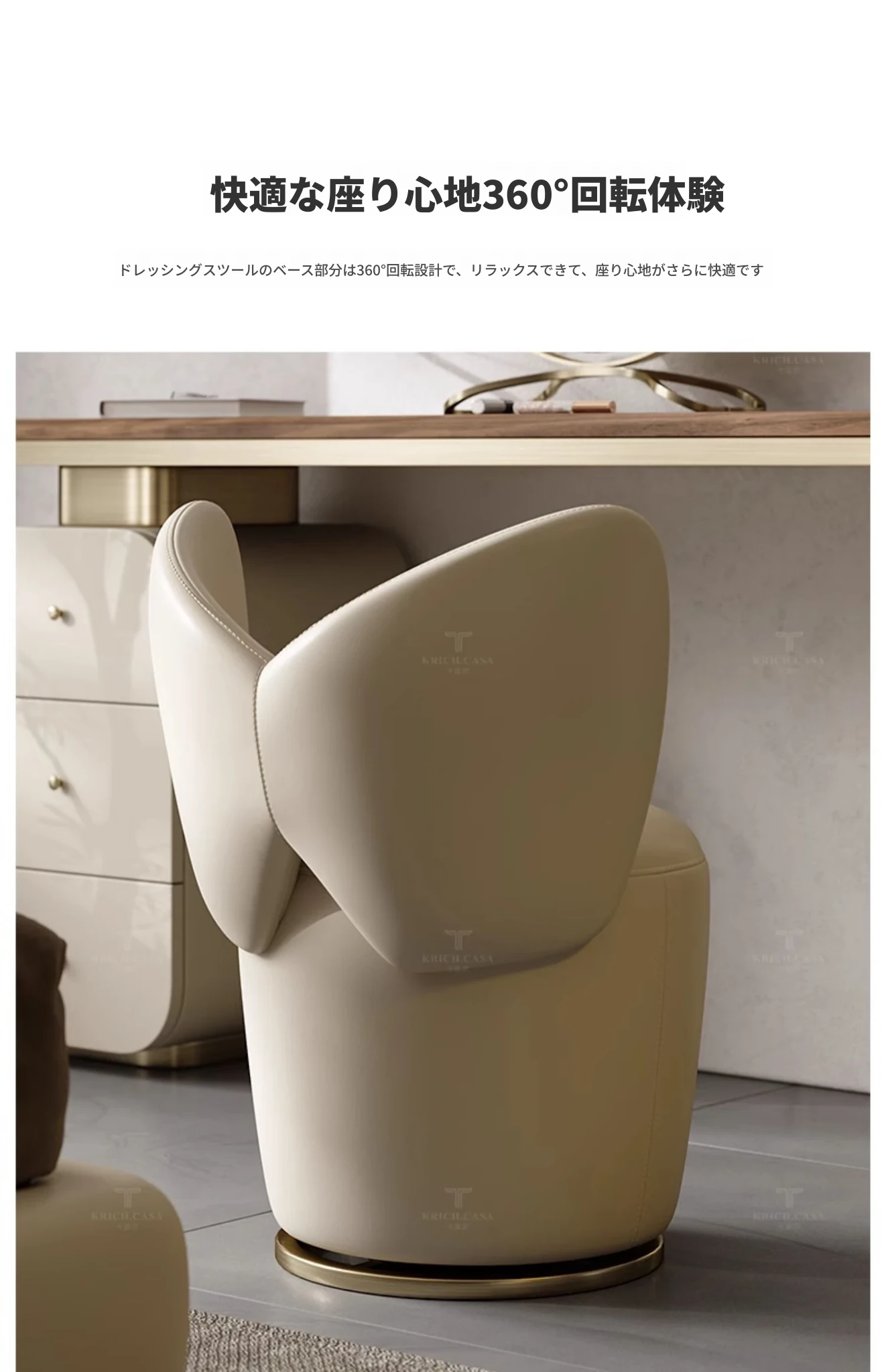 カフニオリジナル フランス風 ラグジュアリー メイクアップスツール 本革製 回転式 バタフライチェア 背もたれ付き 美しい寝室にぴったりのアイテム!