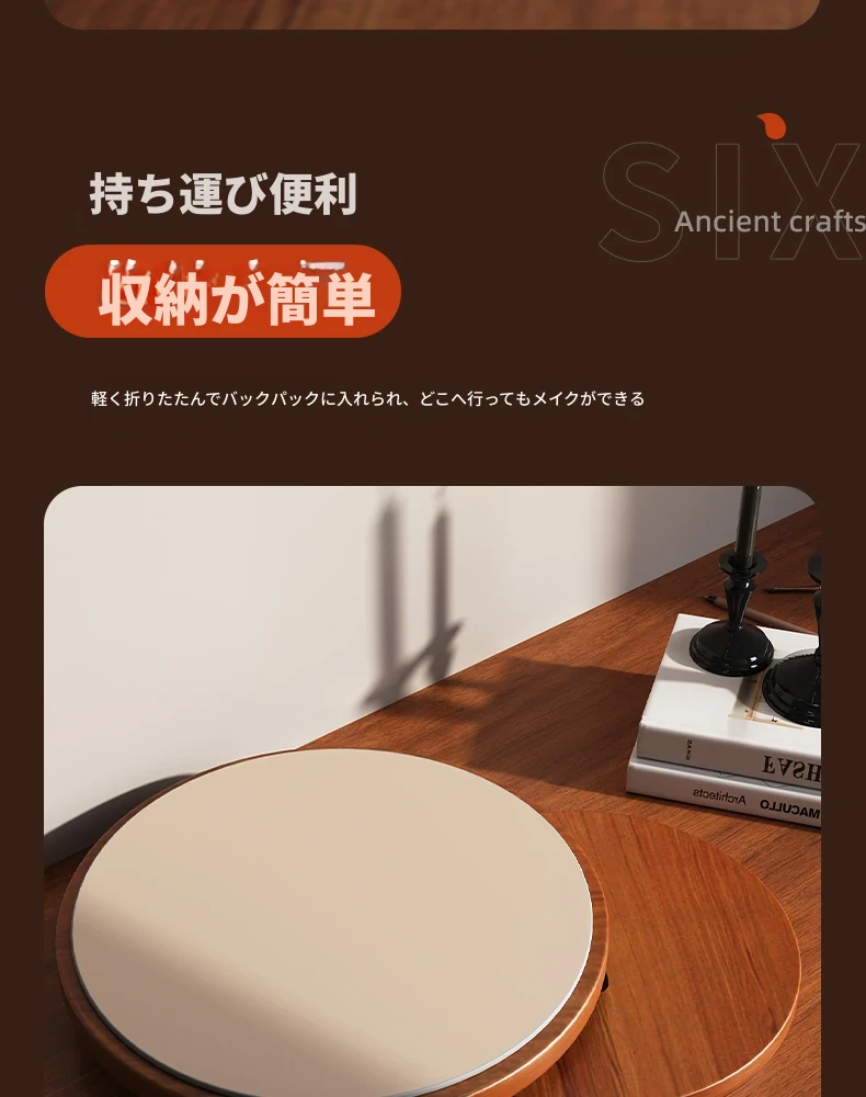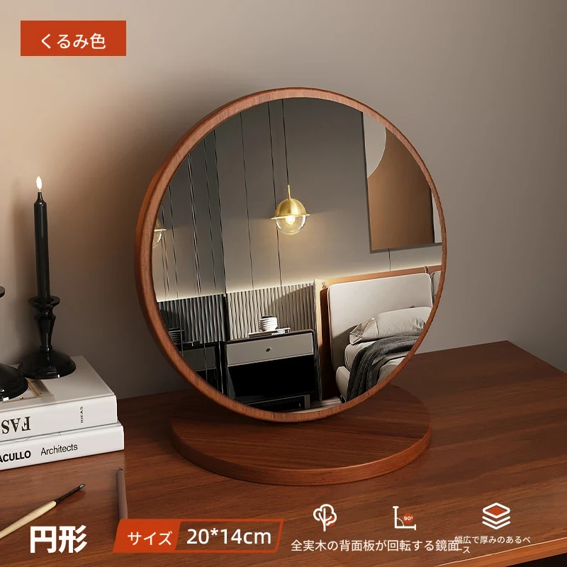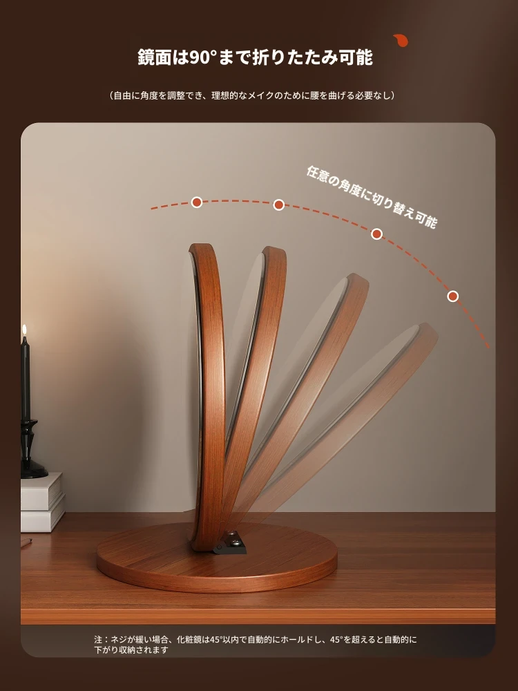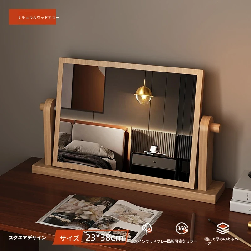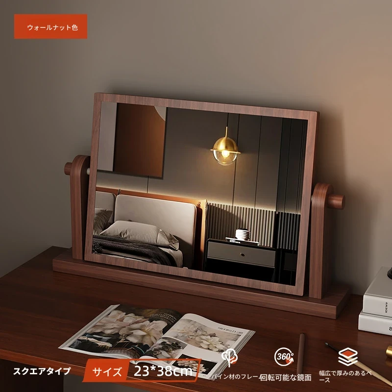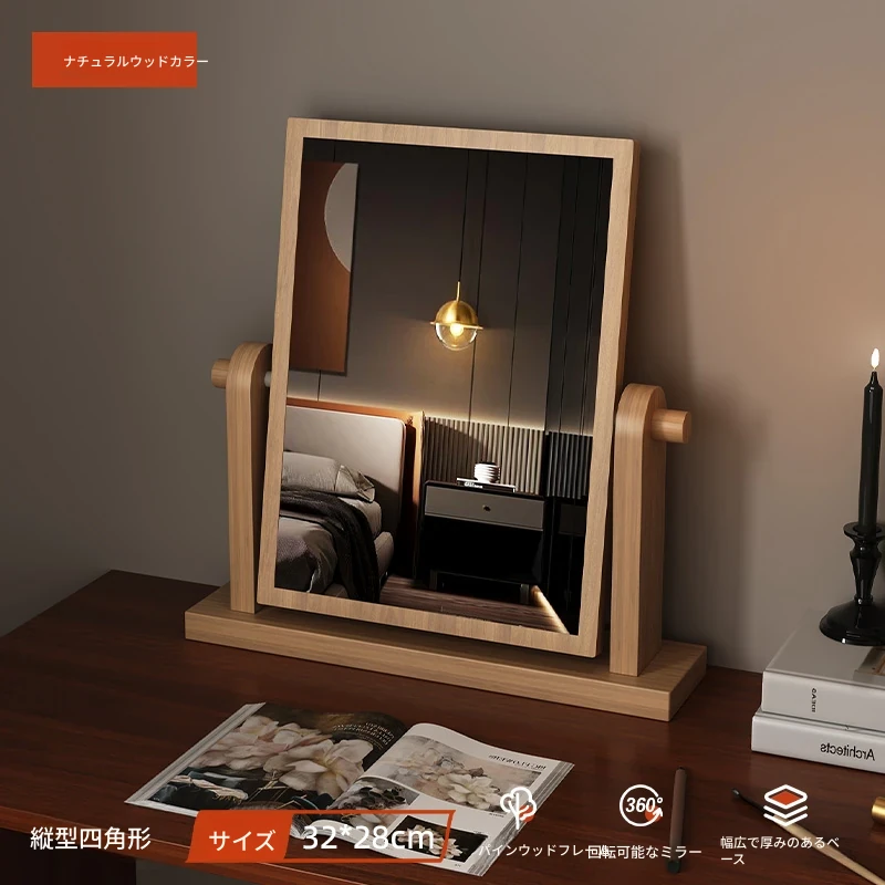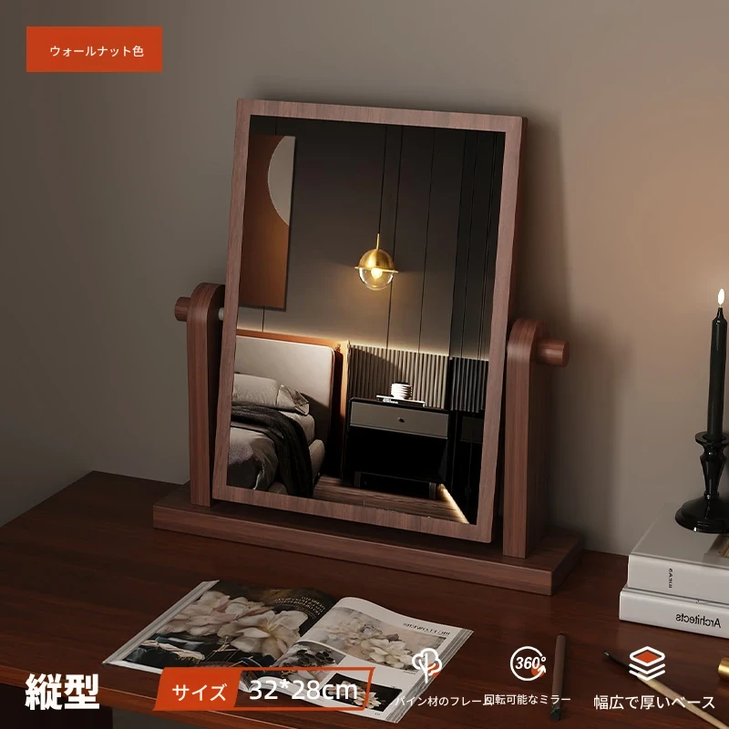 中古折りたたみ式大判化粧鏡 - 高精細実木製、家庭用・寝室用デスクトップドレッシングミラー。おしゃれなインテリアにぴったり!