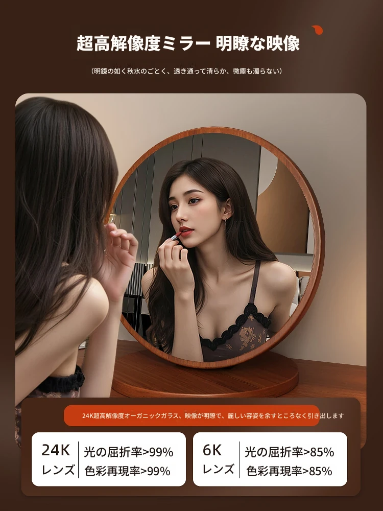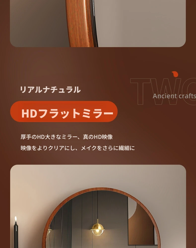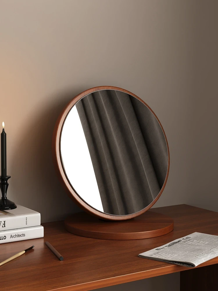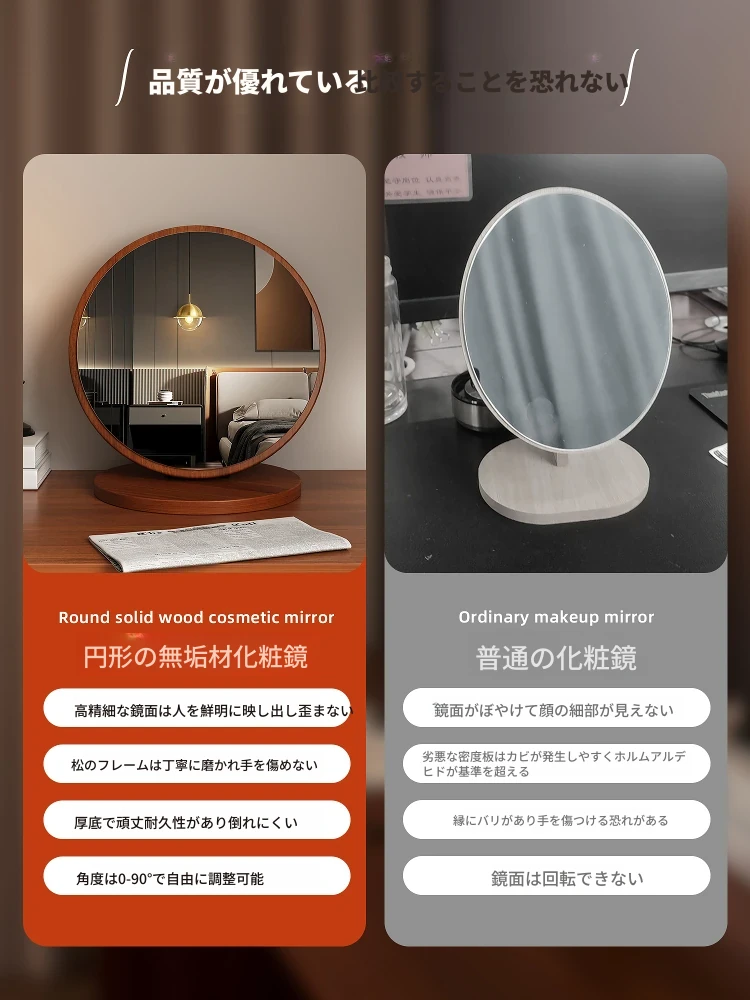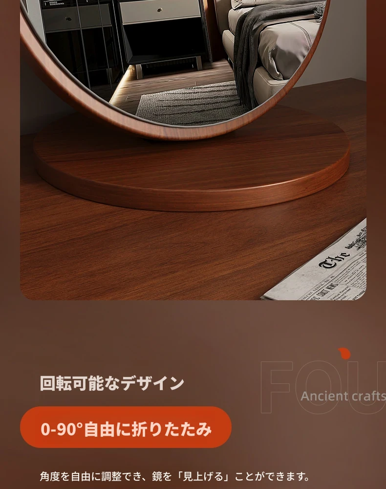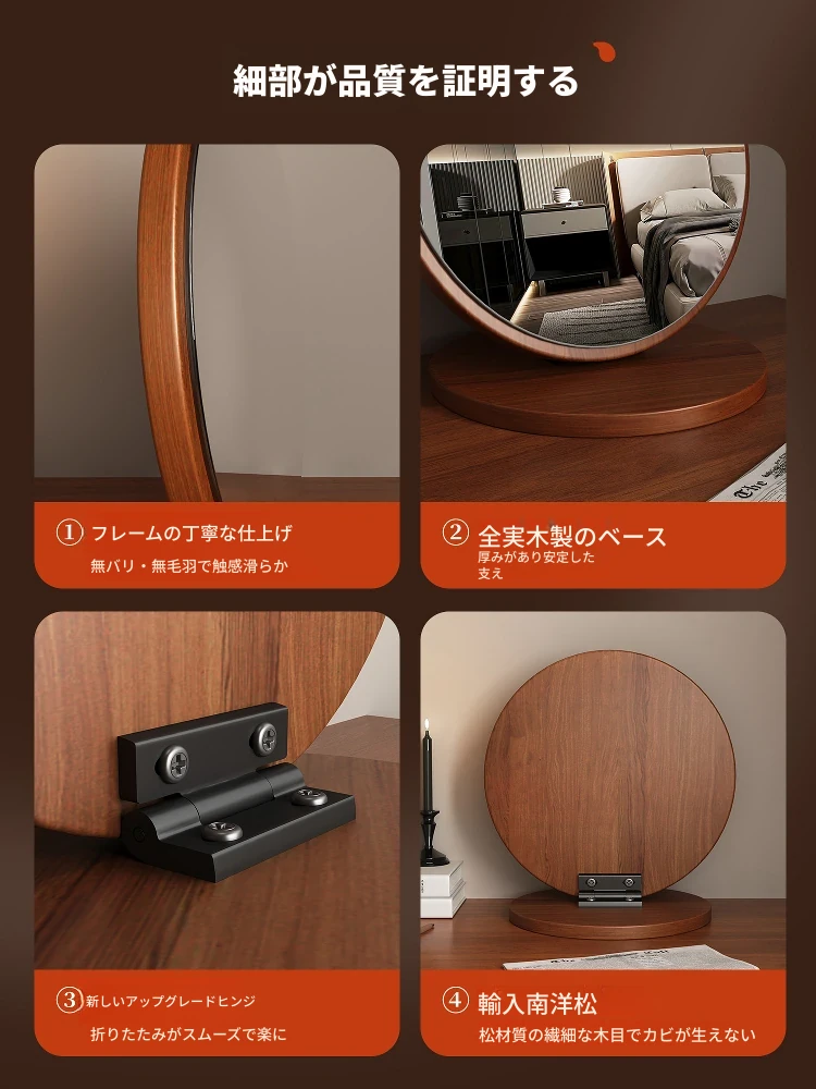 中古折りたたみ式大判化粧鏡 - 高精細実木製、家庭用・寝室用デスクトップドレッシングミラー。おしゃれなインテリアにぴったり!