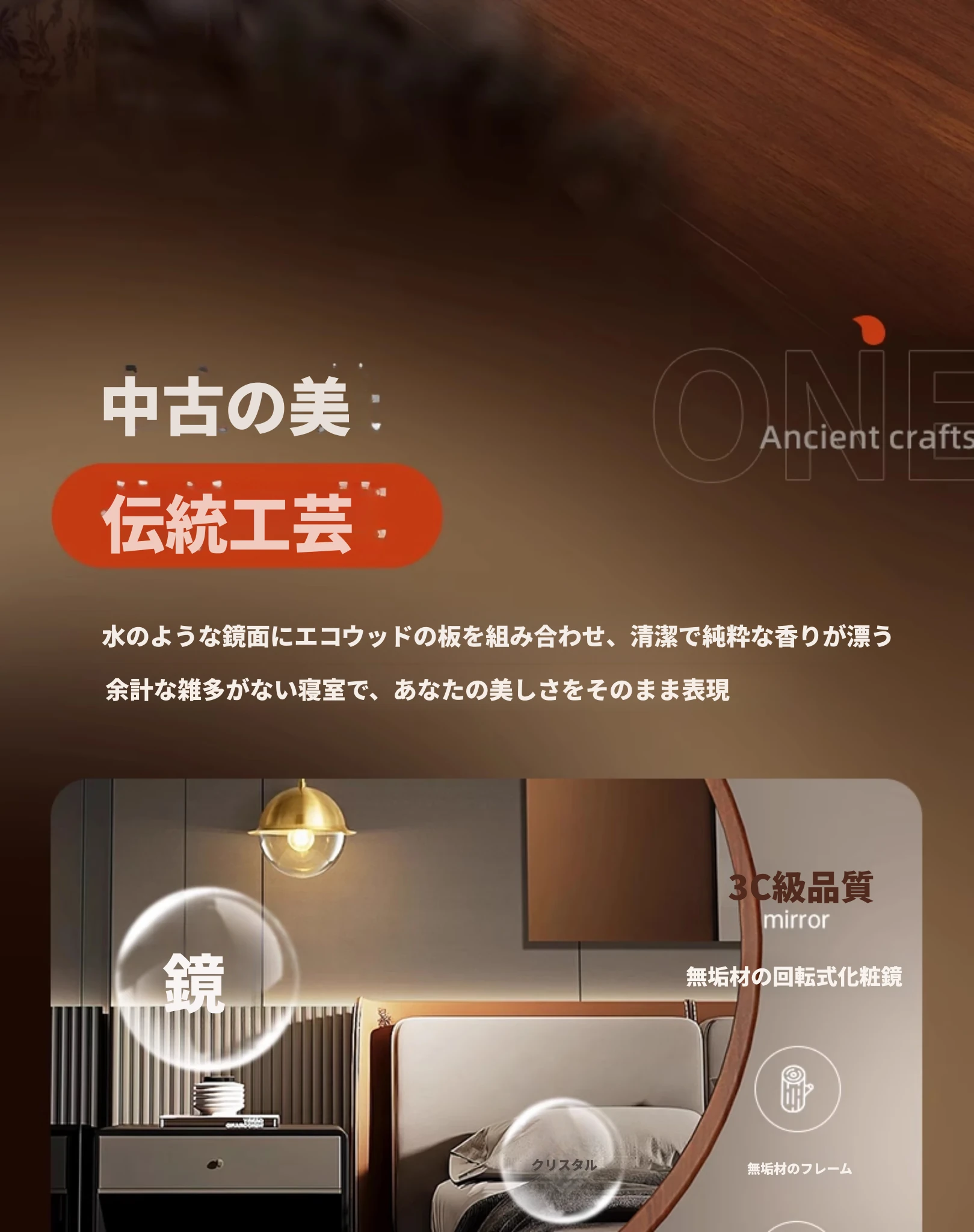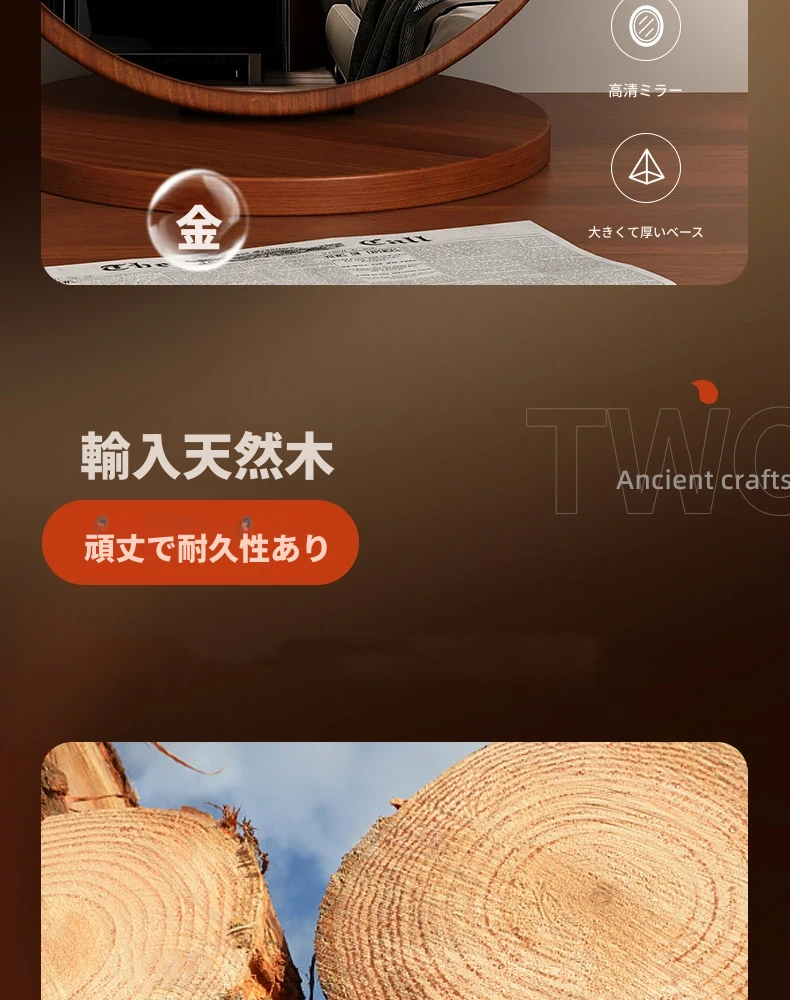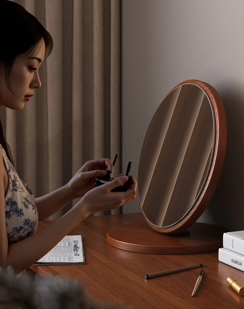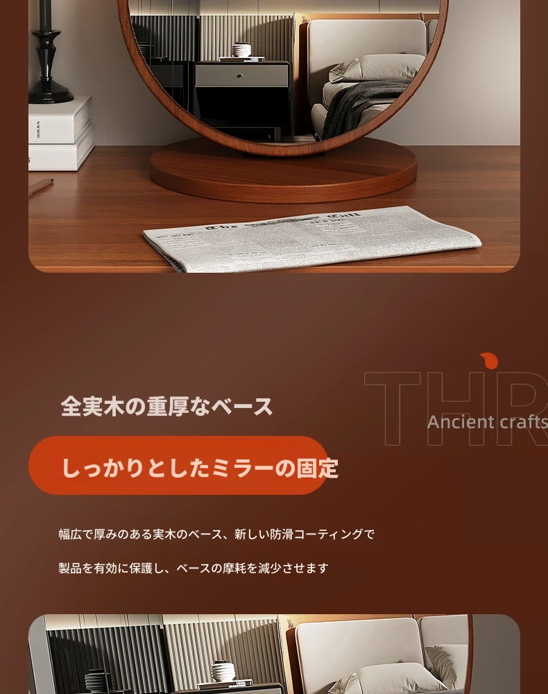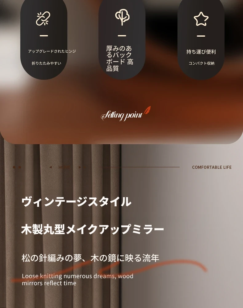 中古折りたたみ式大判化粧鏡 - 高精細実木製、家庭用・寝室用デスクトップドレッシングミラー。おしゃれなインテリアにぴったり!