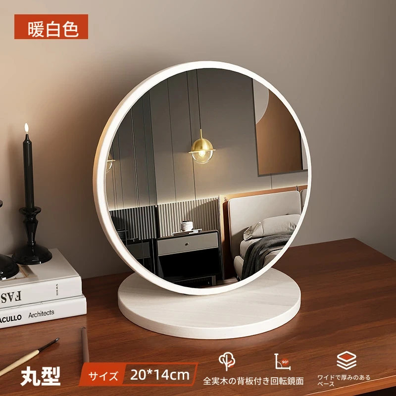 (円形タイプ)20*14cm ホワイト【アップグレードラバーウッド 埋め込みミラー】