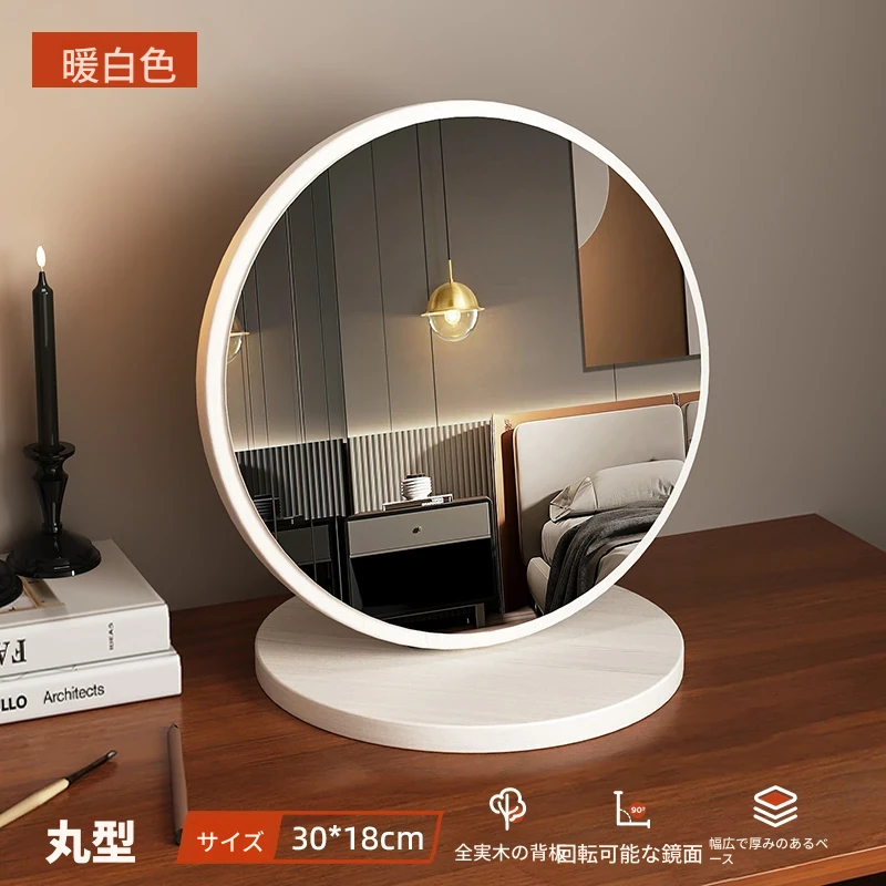 (円形タイプ)30*18cm ホワイト【アップグレードラバーウッド 埋め込みミラー】
