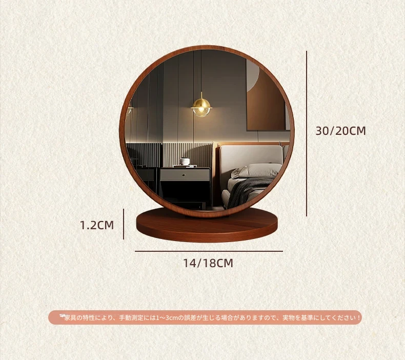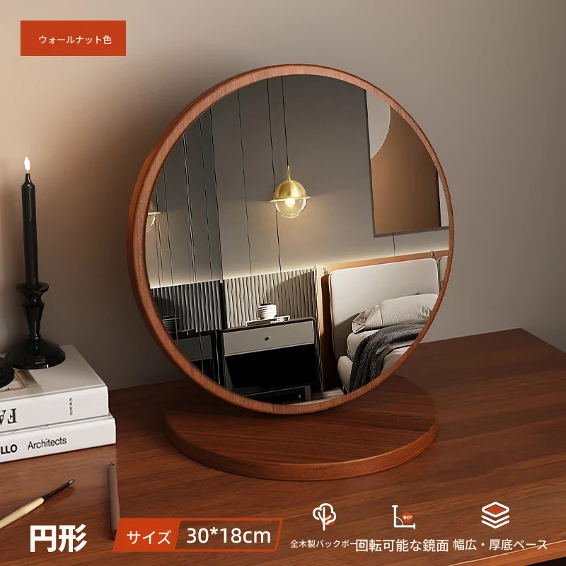 (円形タイプ)30*18cm ウォールナット色【アップグレードラバーウッド 埋め込みミラー】